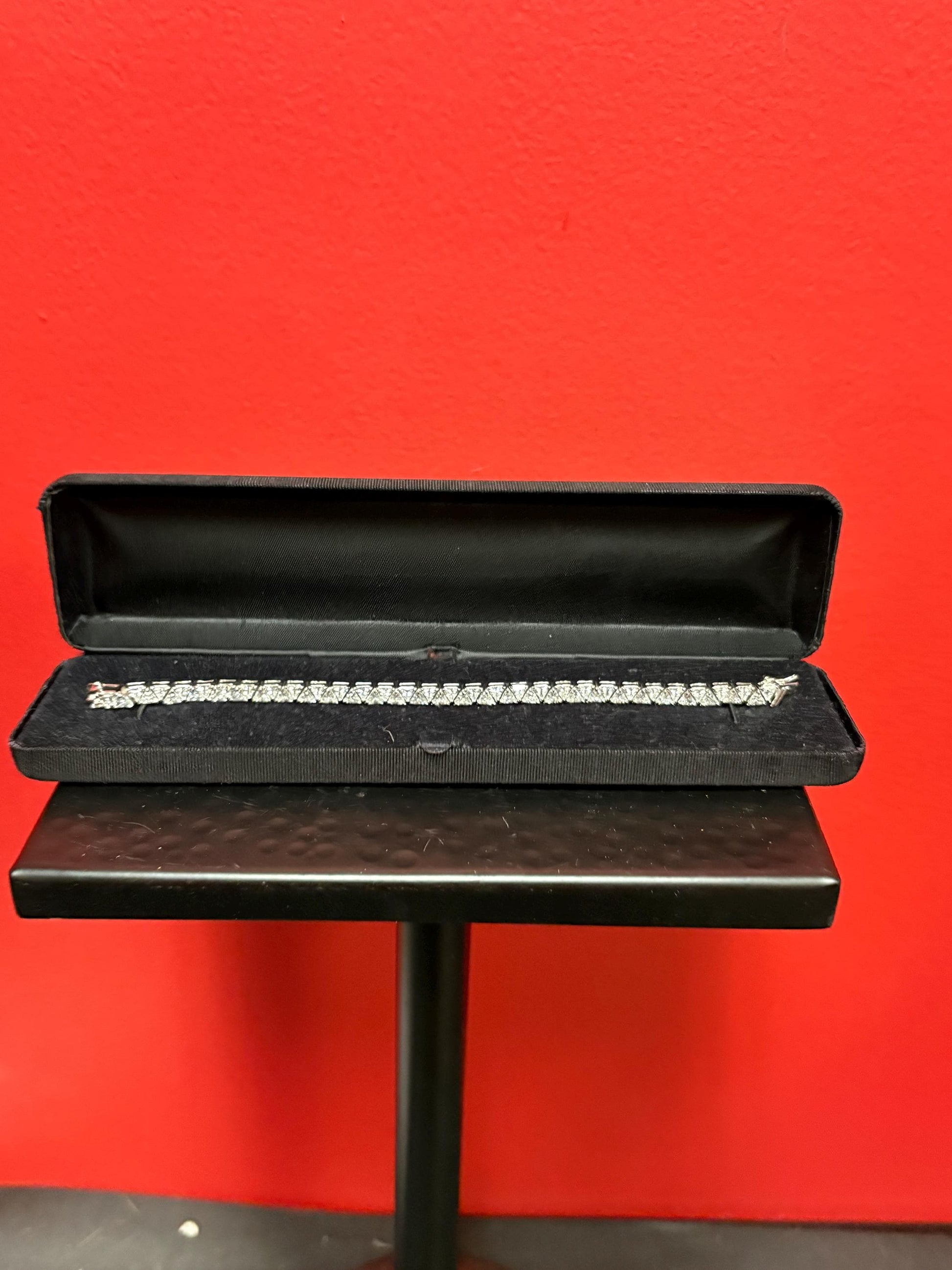 Beautiful 8 inch long faux diamond and sterling silver bracelet B