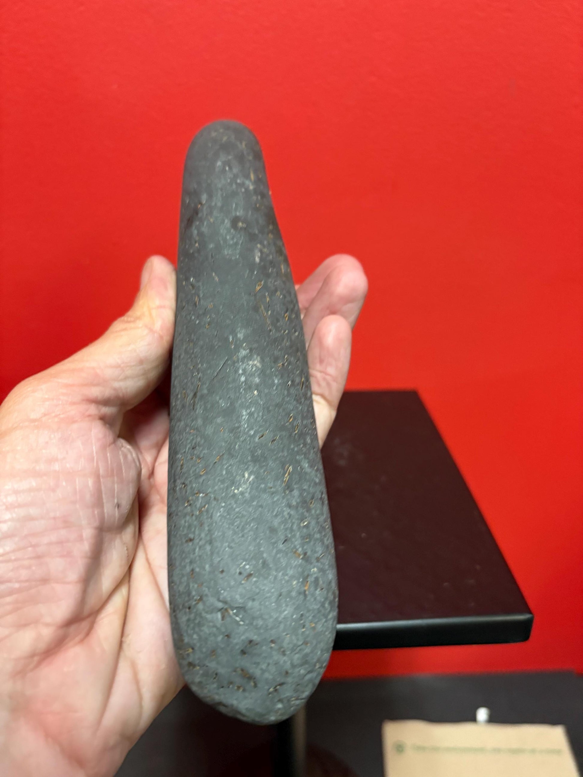 Beautiful 8 inch tall indigenous first nations, British Columbian old old old plummet stone tool wonderful patina shape of duck head