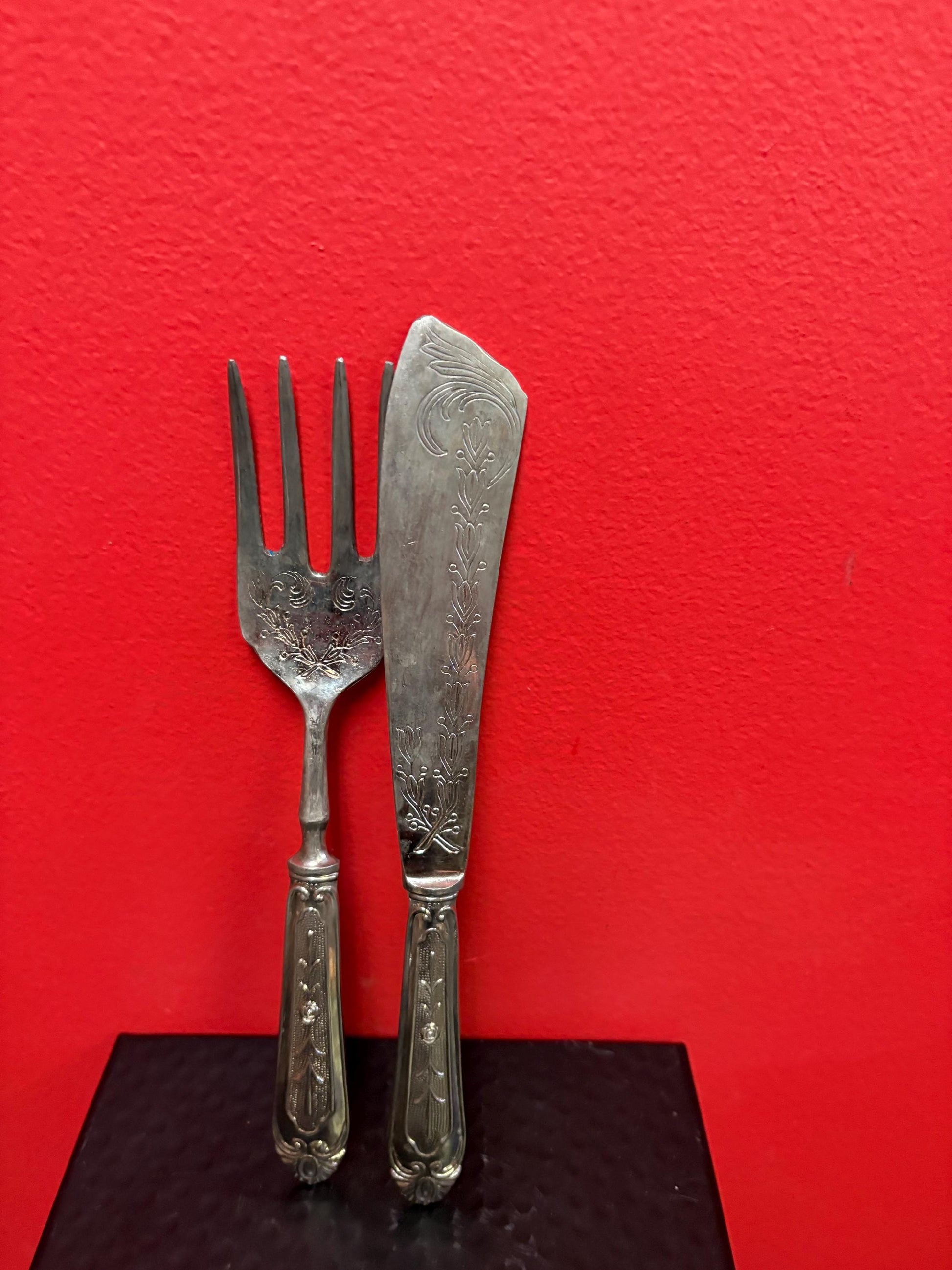 Beautiful . 800 silver handled Italian fish servers. good condition approx 10 inches