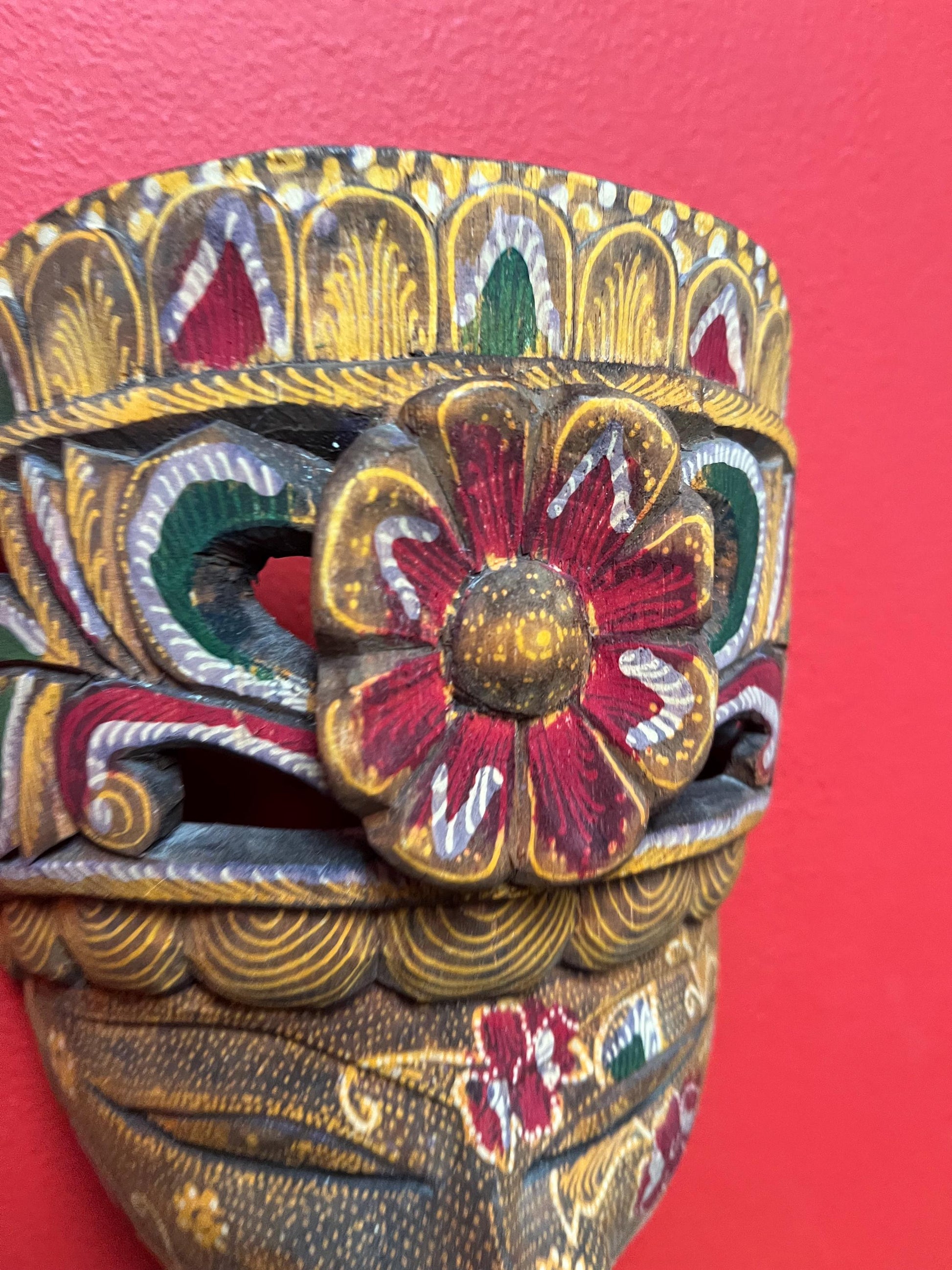 Beautiful 9 x 7“ inch wide heavily decorated Asian mask ready to hang ready to gift