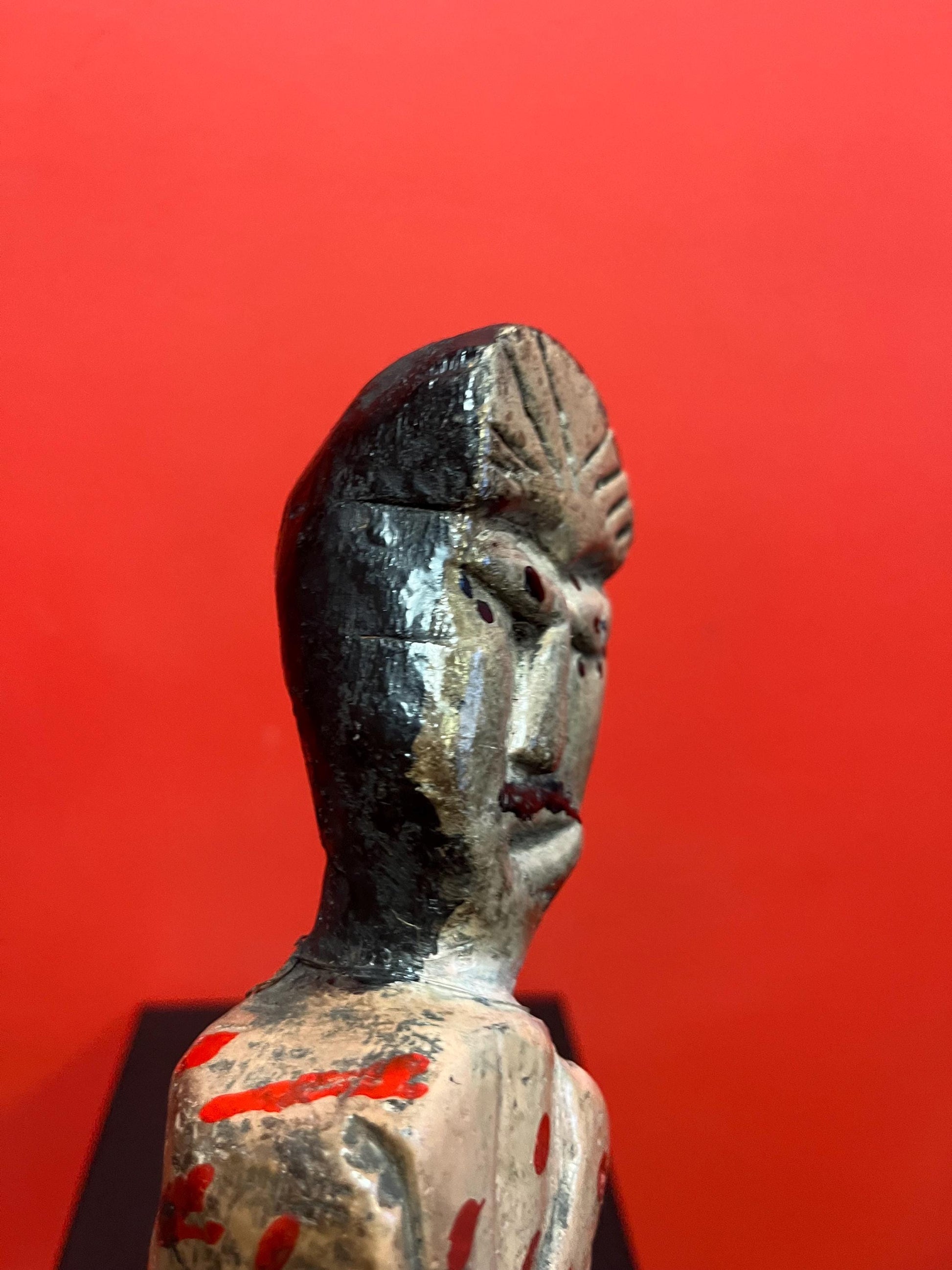 Beautiful antique 10 inch tall American folk art wooden statue very cool needs assistance to stand