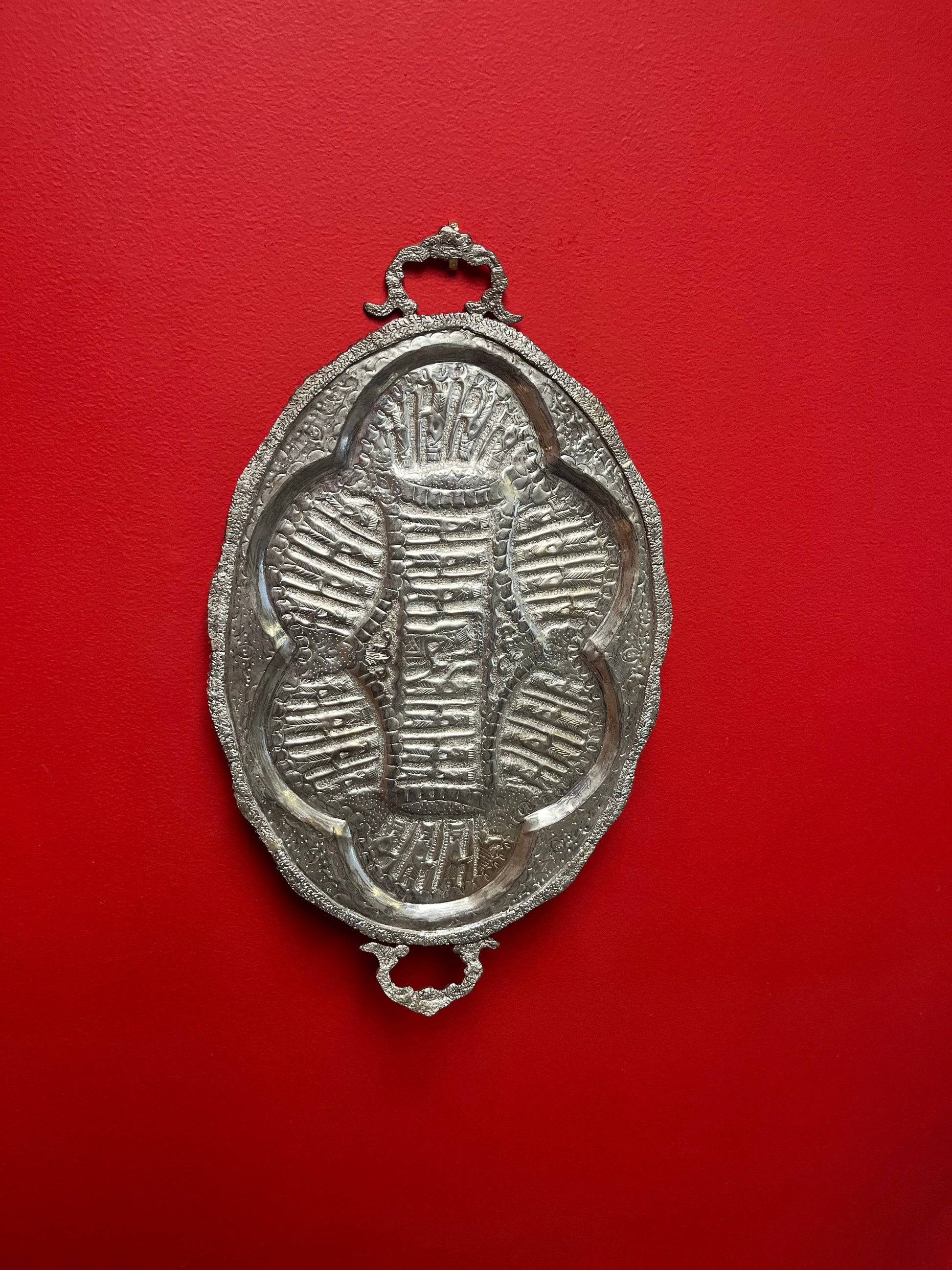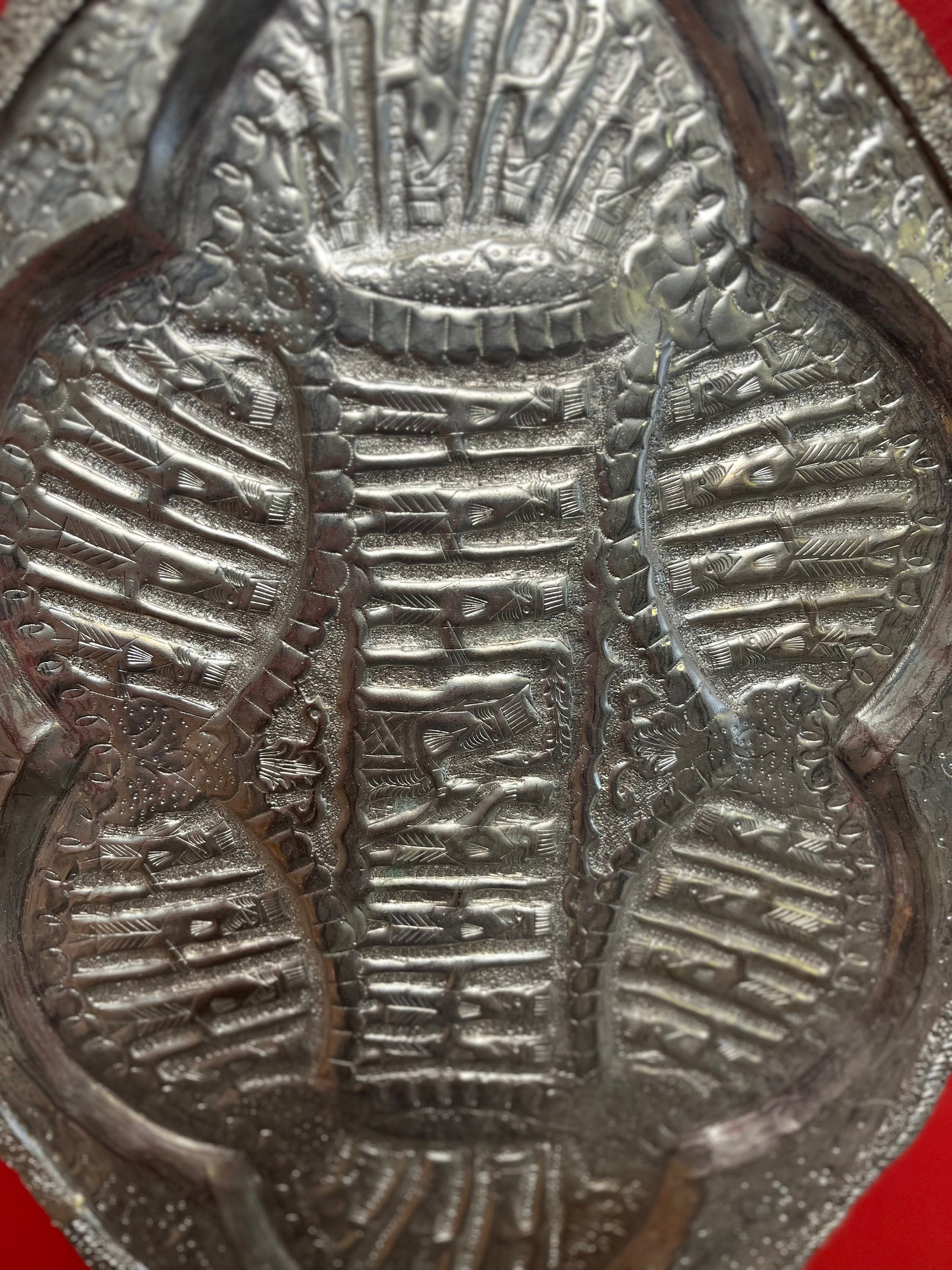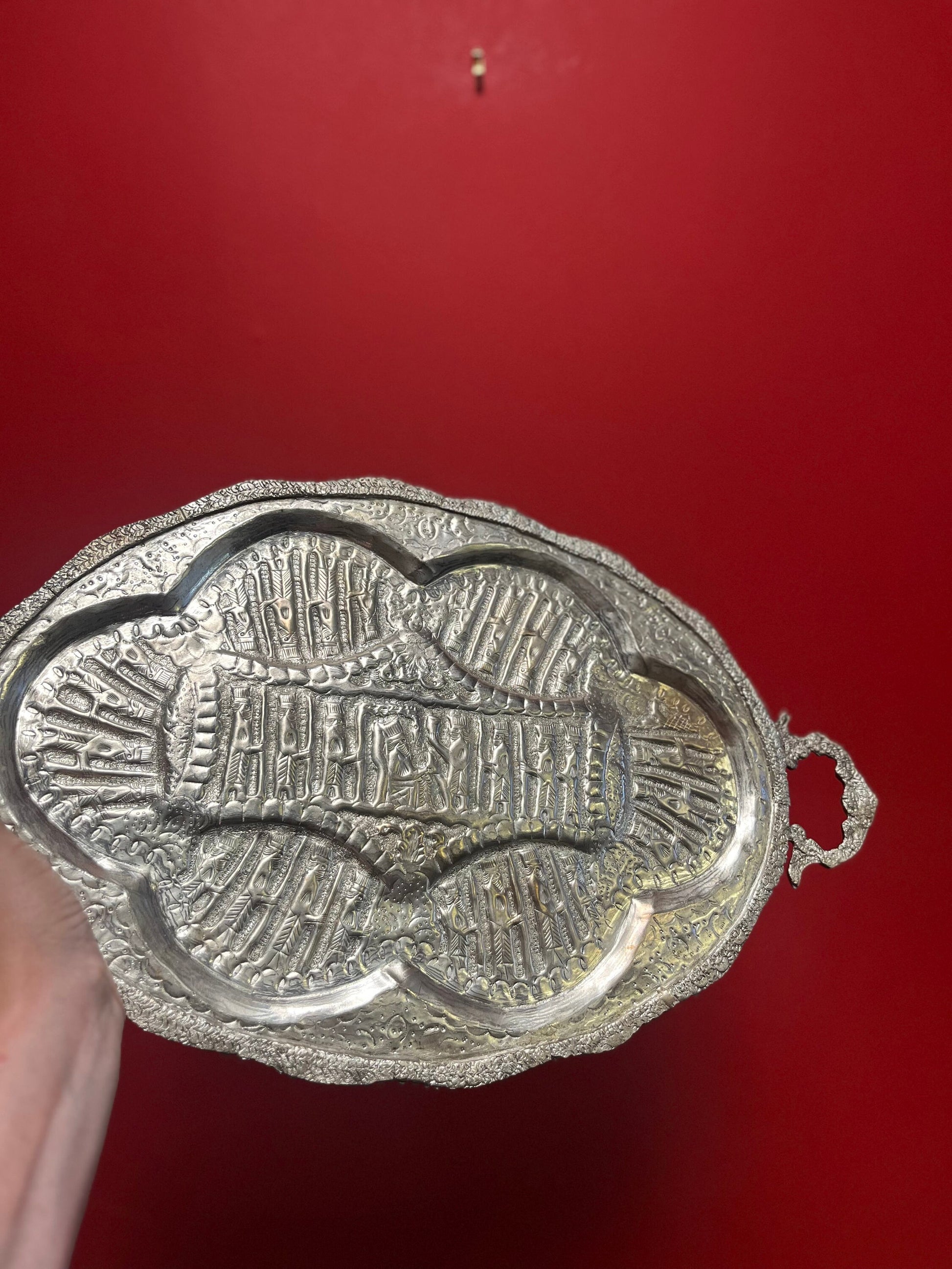 Beautiful antique 19 x 11 untested, silver Persian heavily decorated serving tray wonderful gift and great price