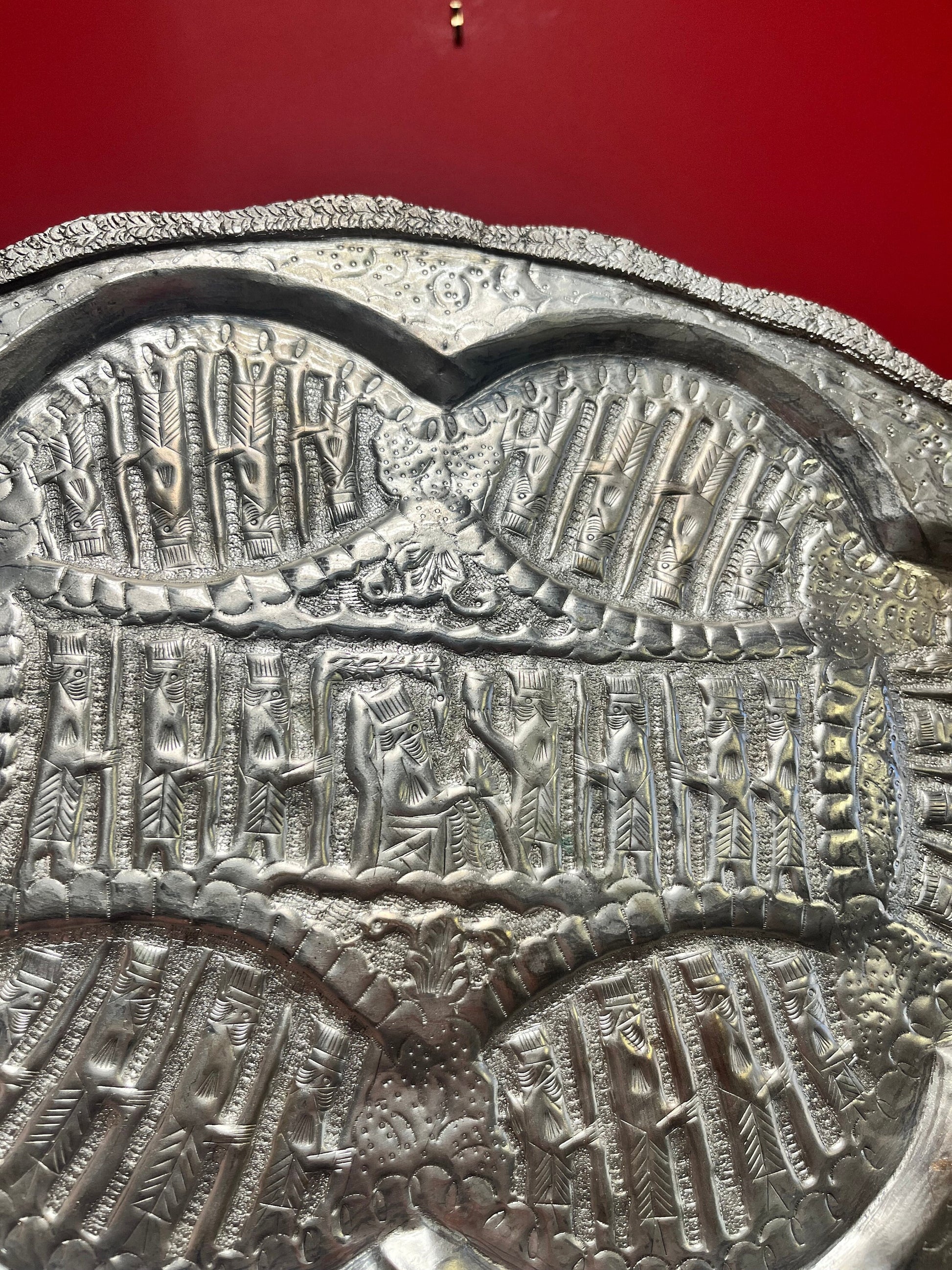 Beautiful antique 19 x 11 untested, silver Persian heavily decorated serving tray  wonderful gift and great price