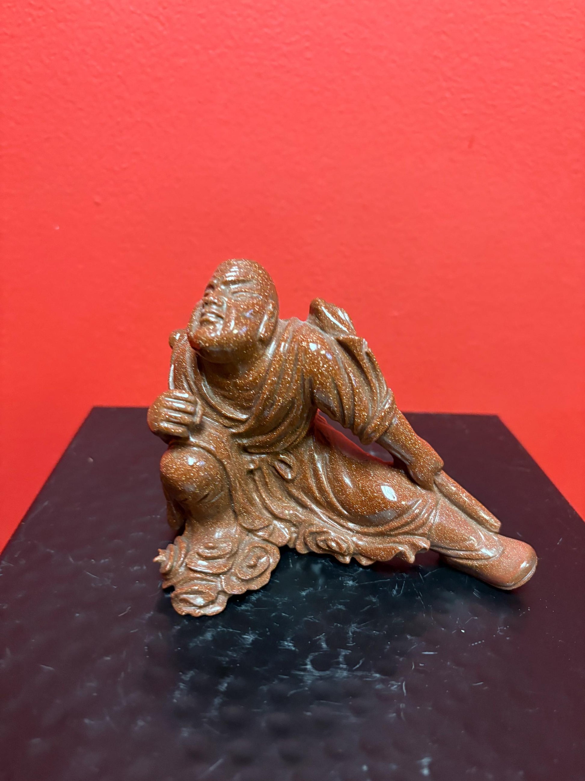 Beautiful antique 4 inch Chinese gold stone figure of a warrior great condition and very unusual estate piece