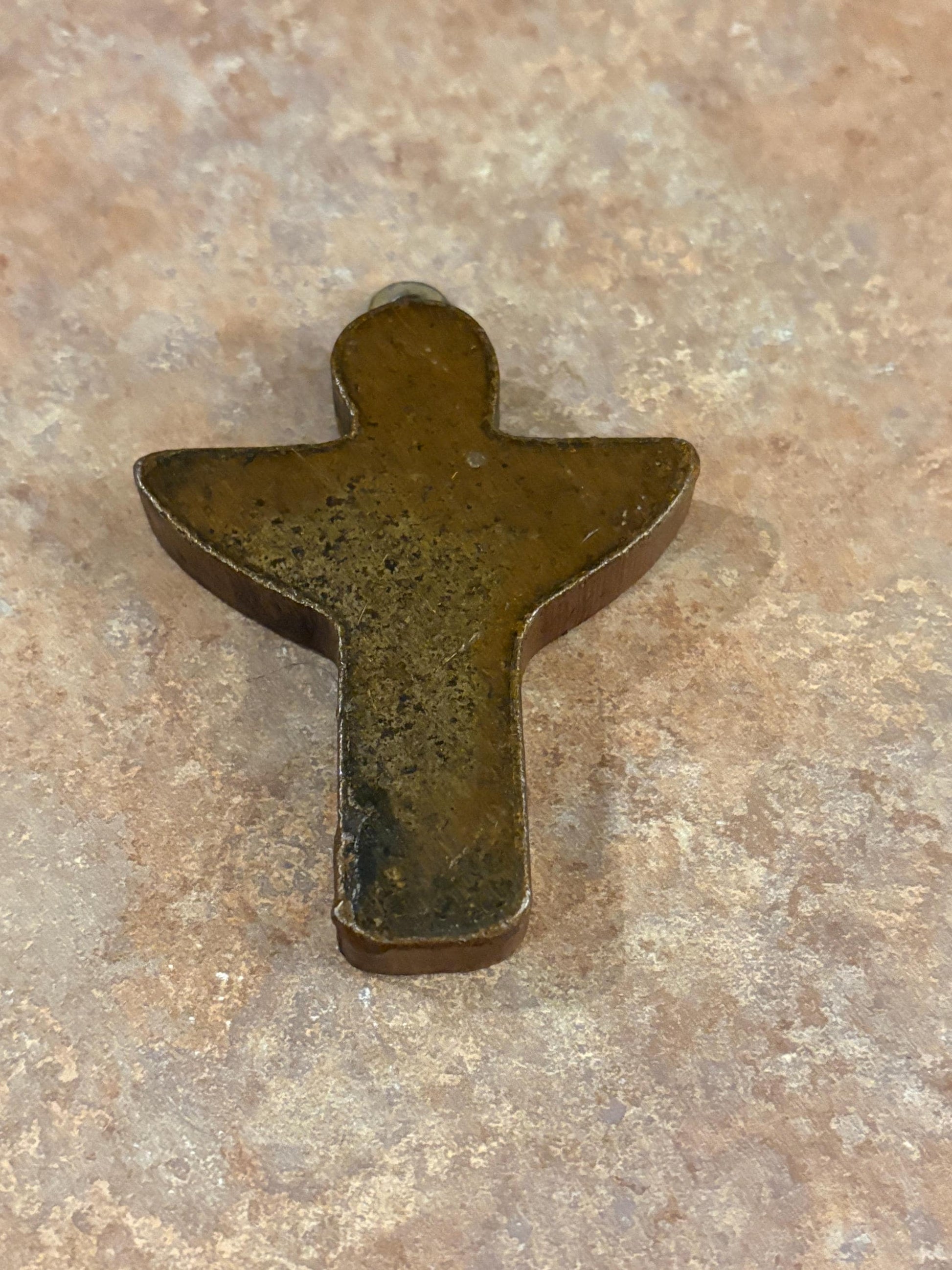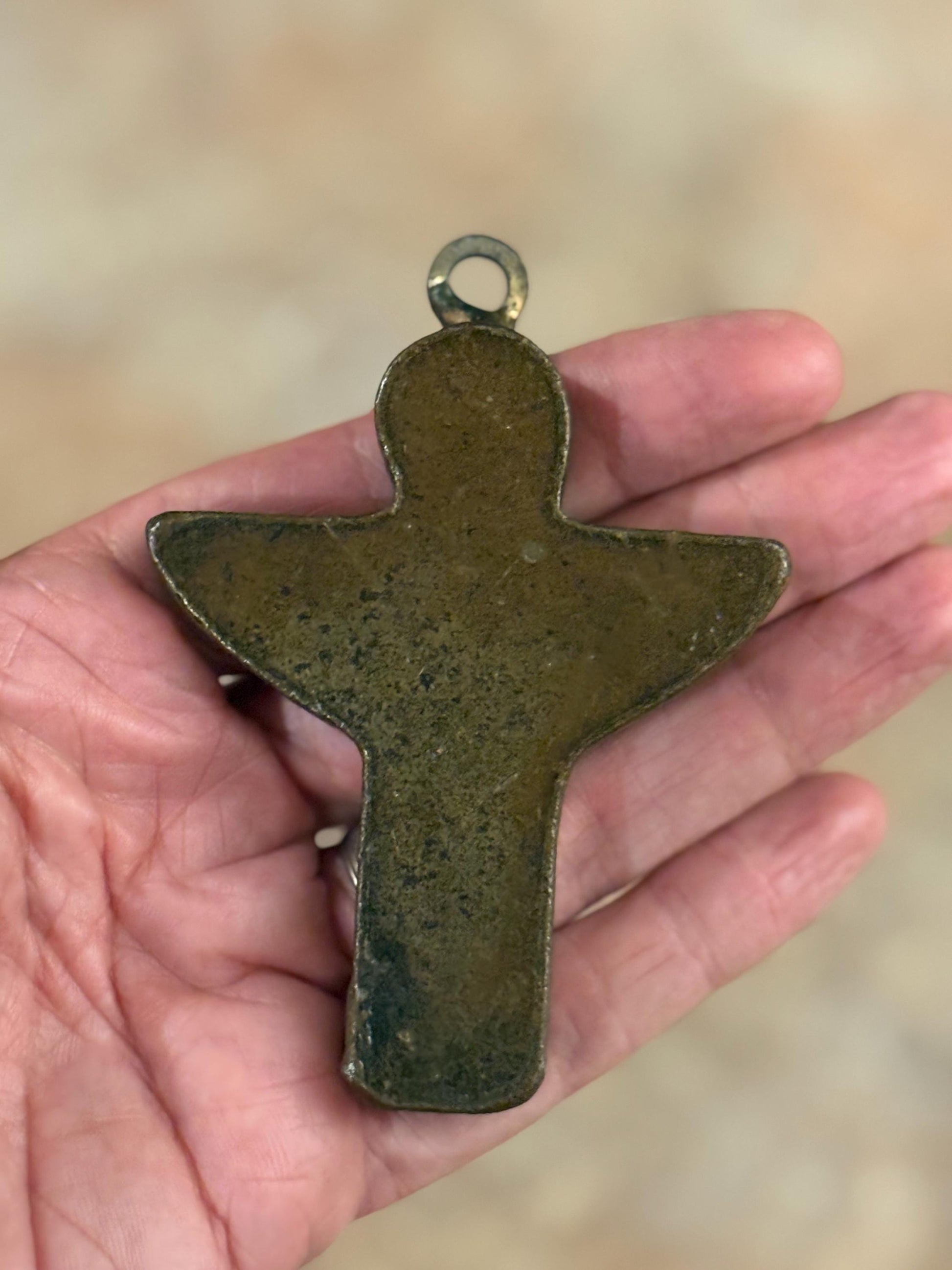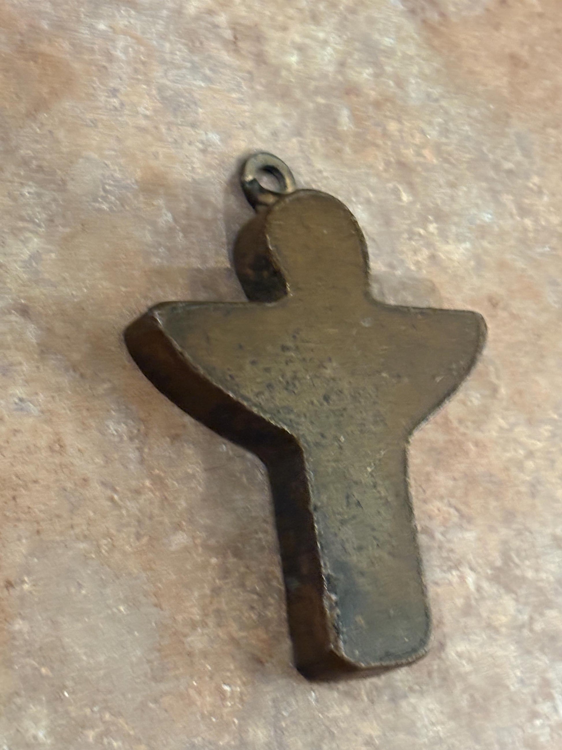 Beautiful antique 4 x 3” very heavy, bronze angel statue ready to hang — wonderful patina — wonderful Christmas gift