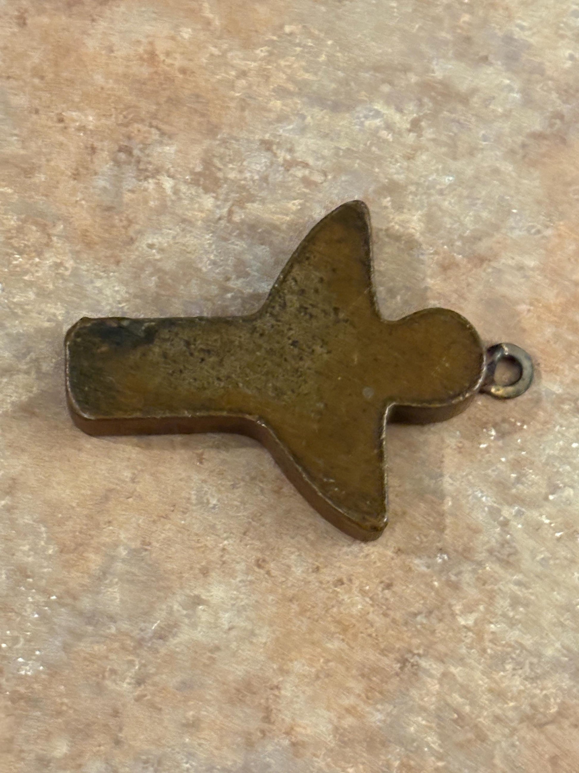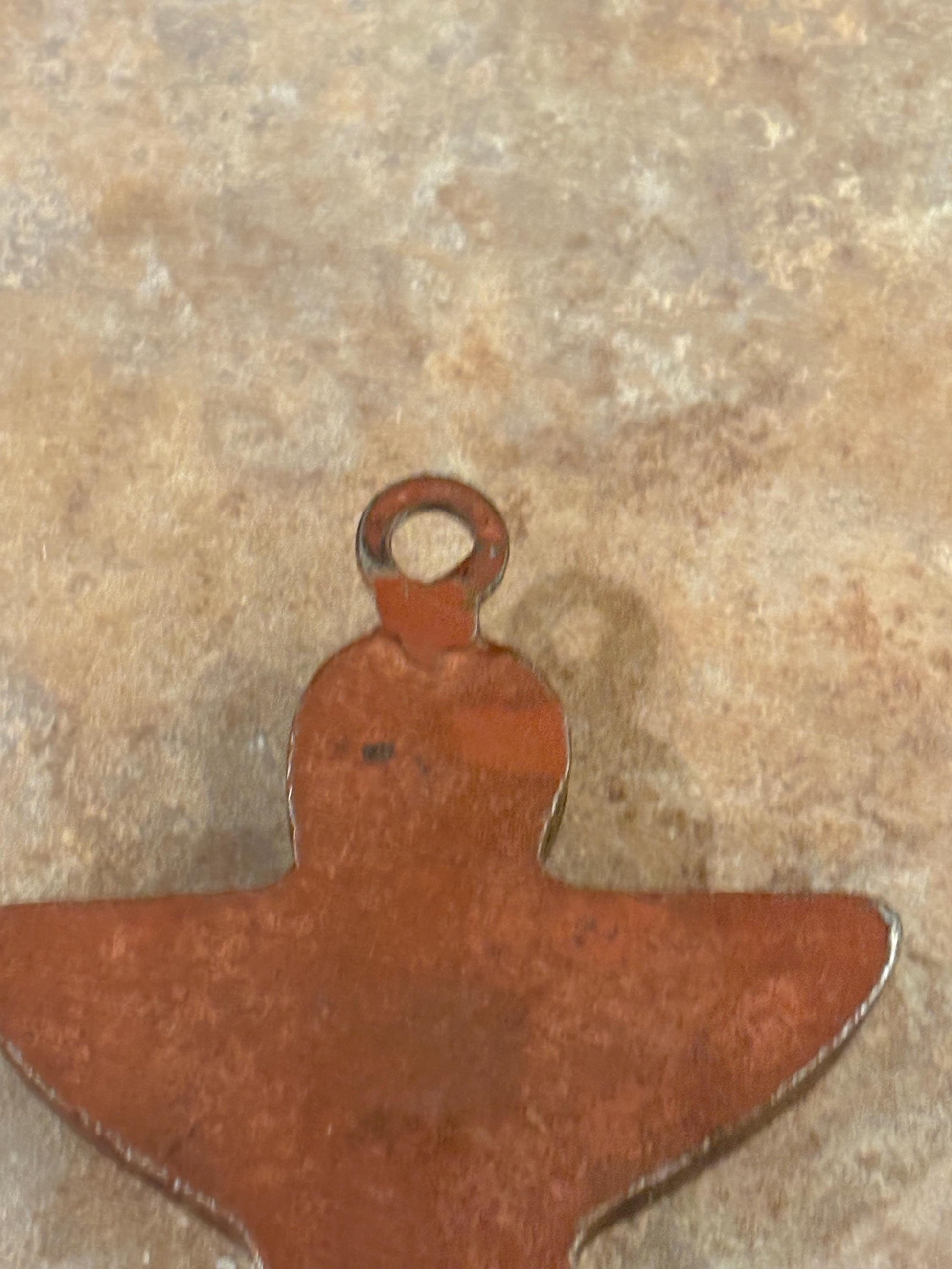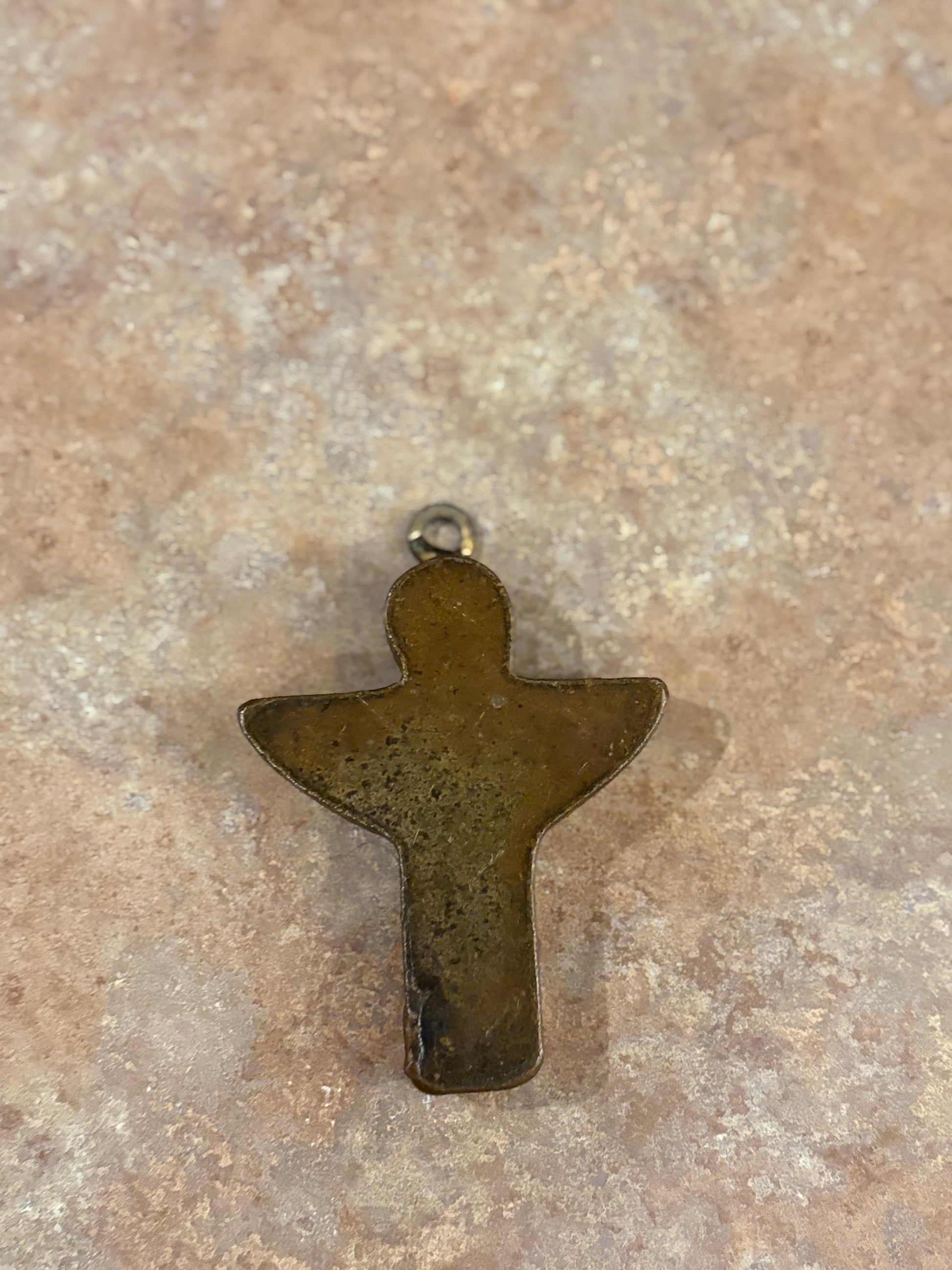 Beautiful antique 4 x 3” very heavy, bronze angel statue ready to hang — wonderful patina — wonderful Christmas gift