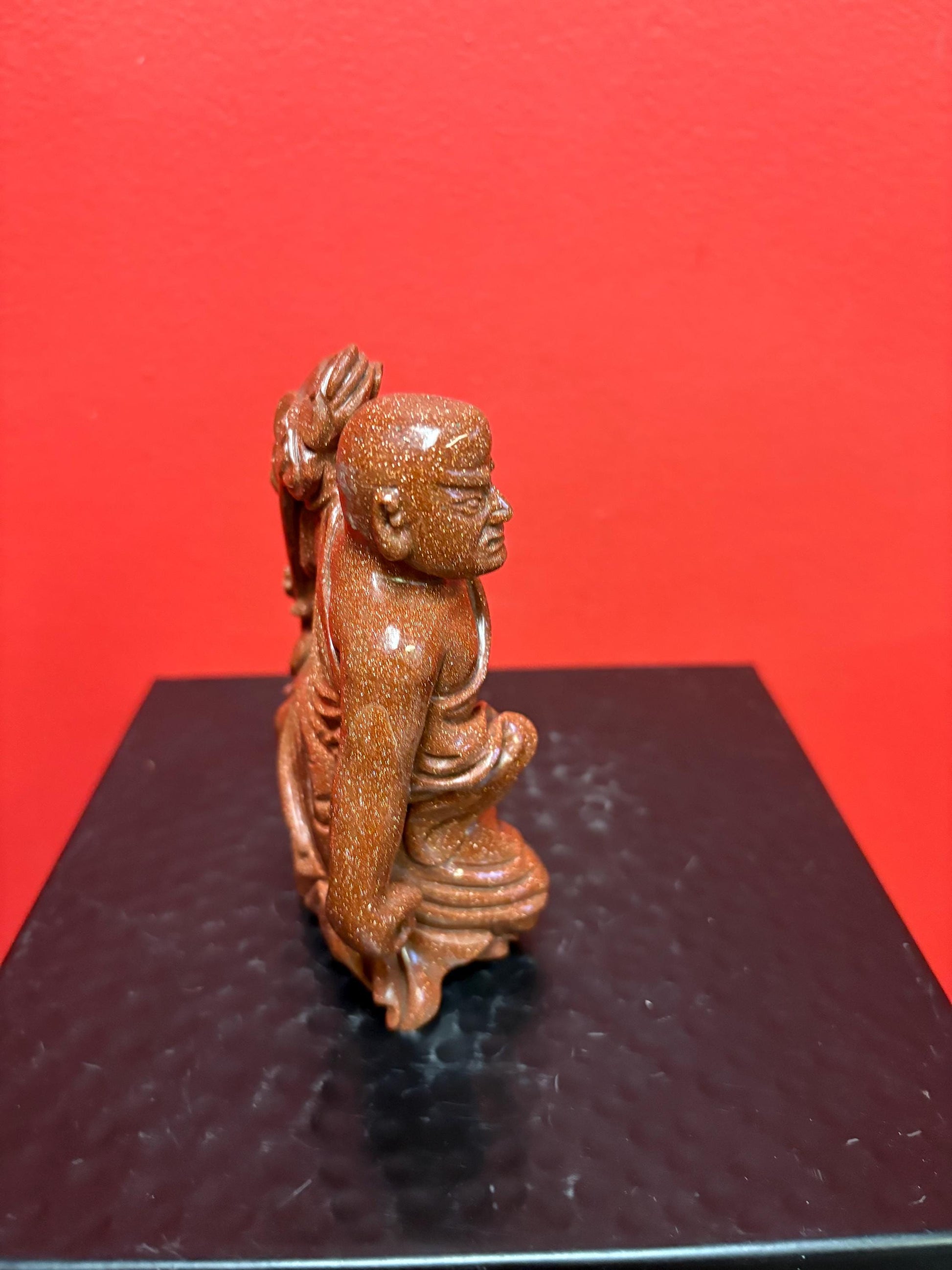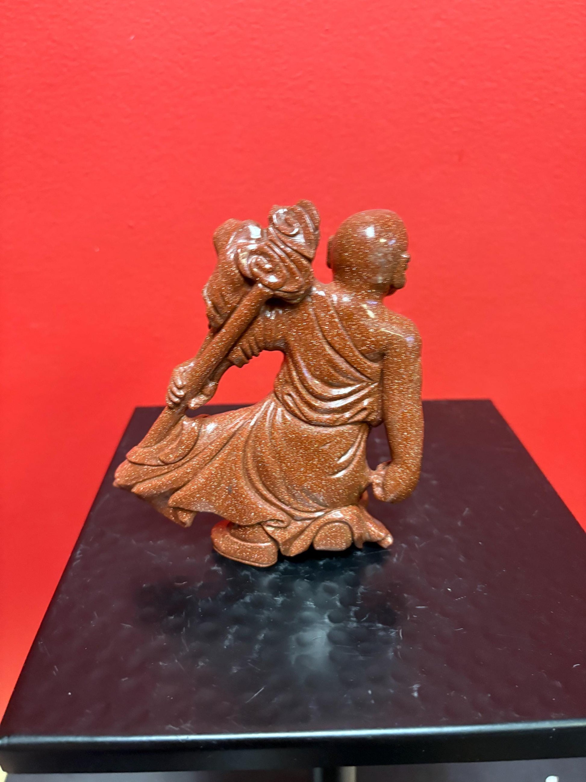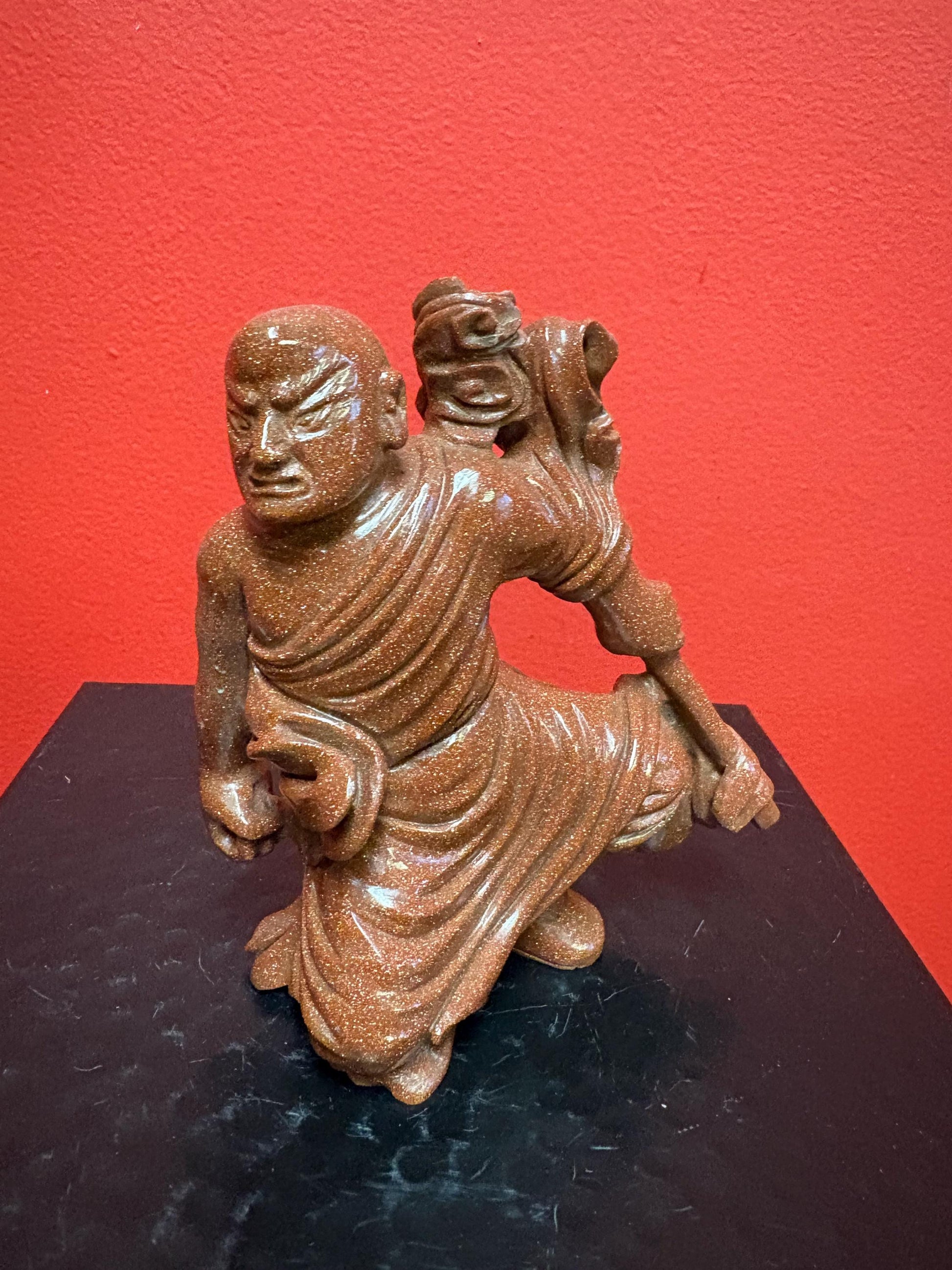 Beautiful antique 5 inch Chinese gold stone figure of a warrior — great condition and very unusual