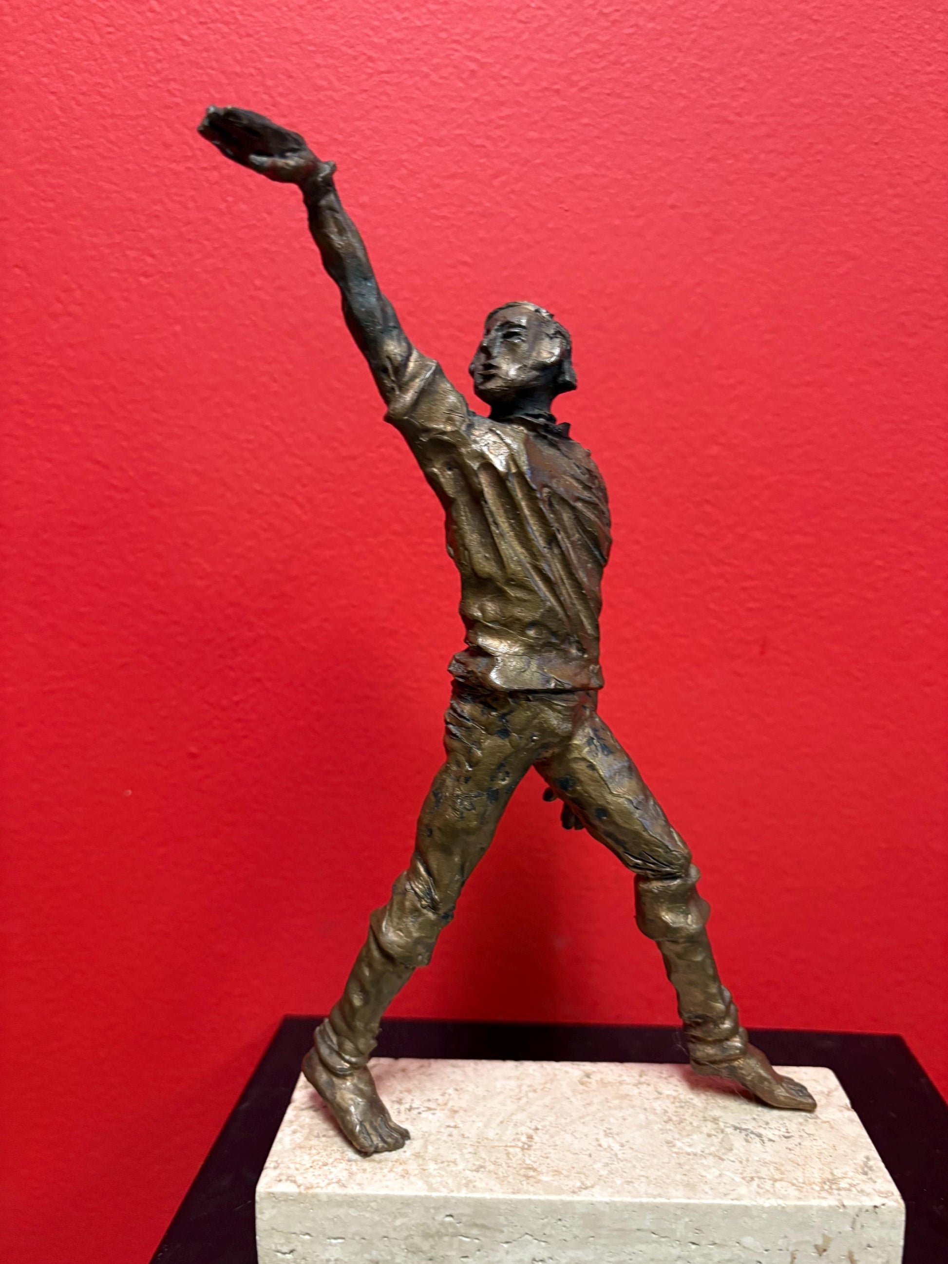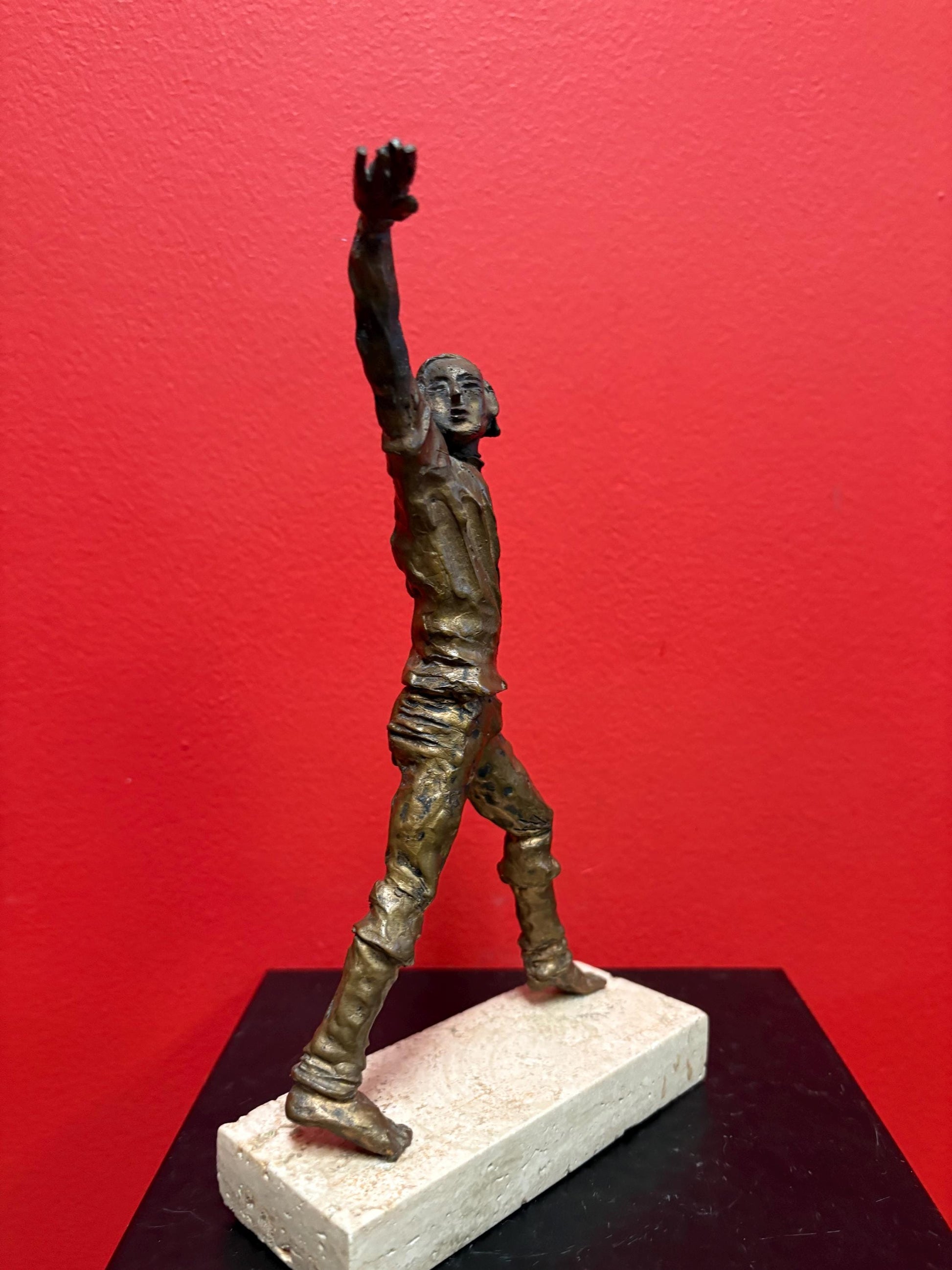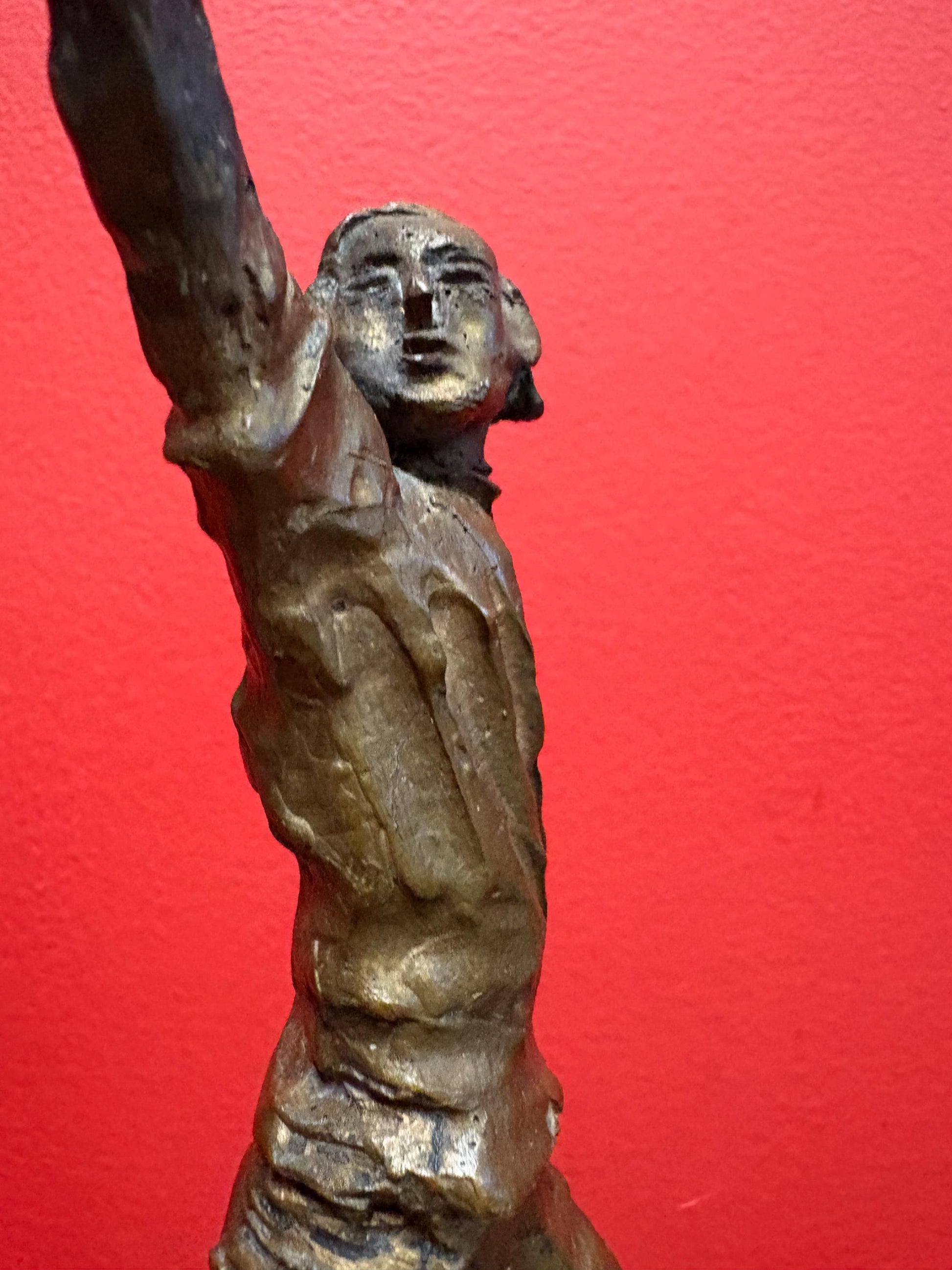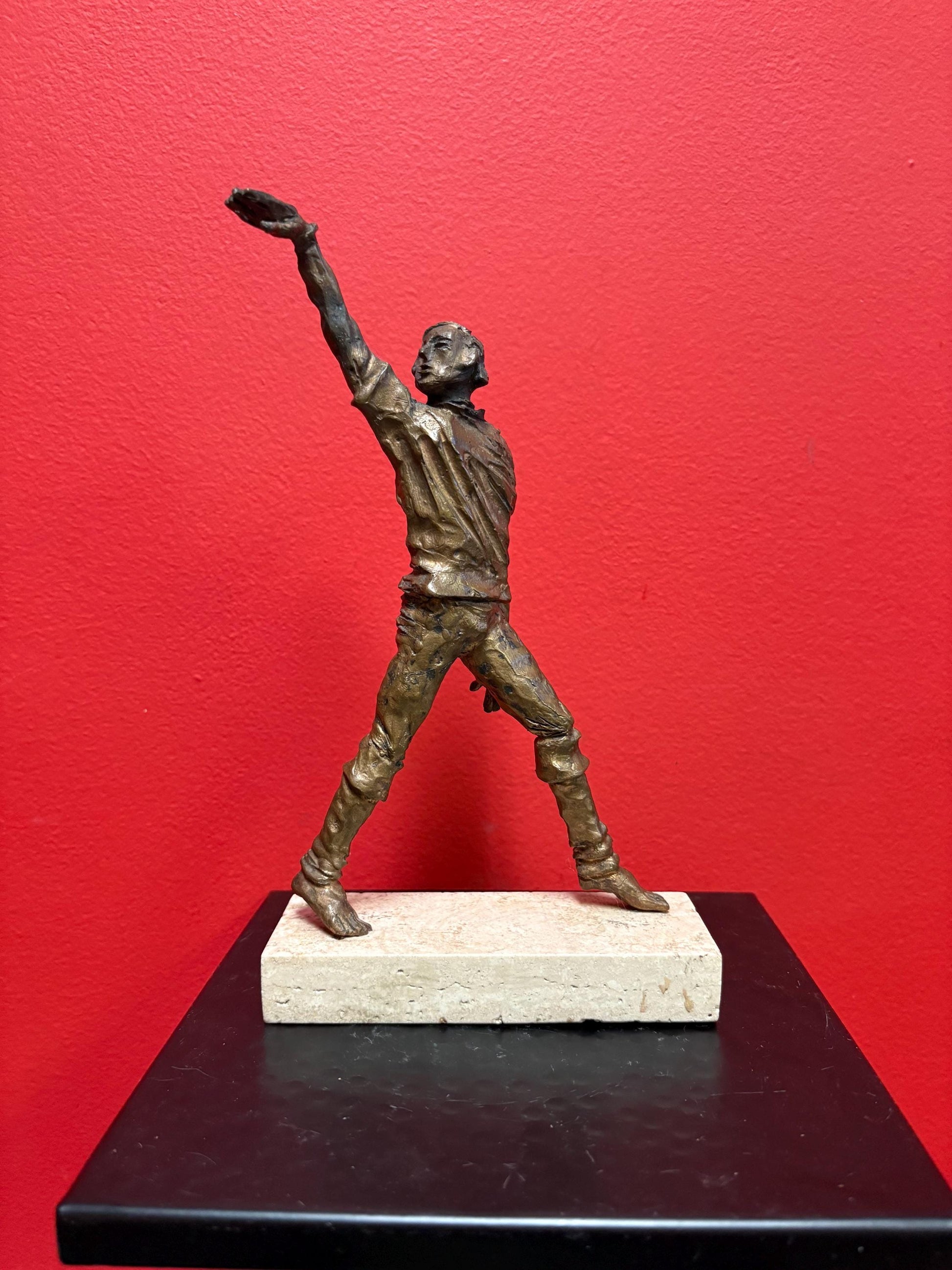 Beautiful antique 9 x 6 bronze statue of a man on Marble stand great patina good value