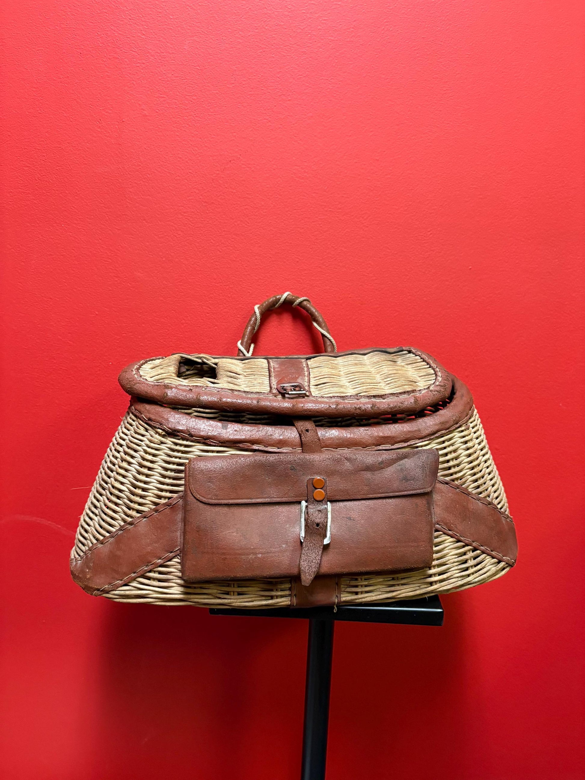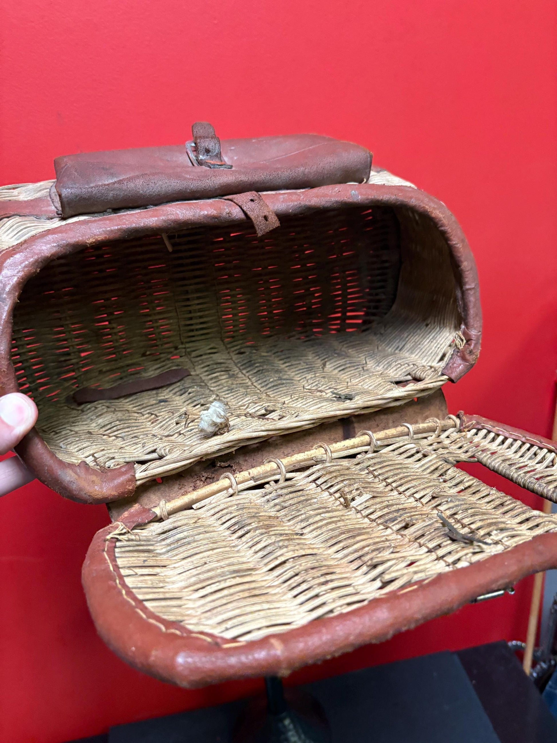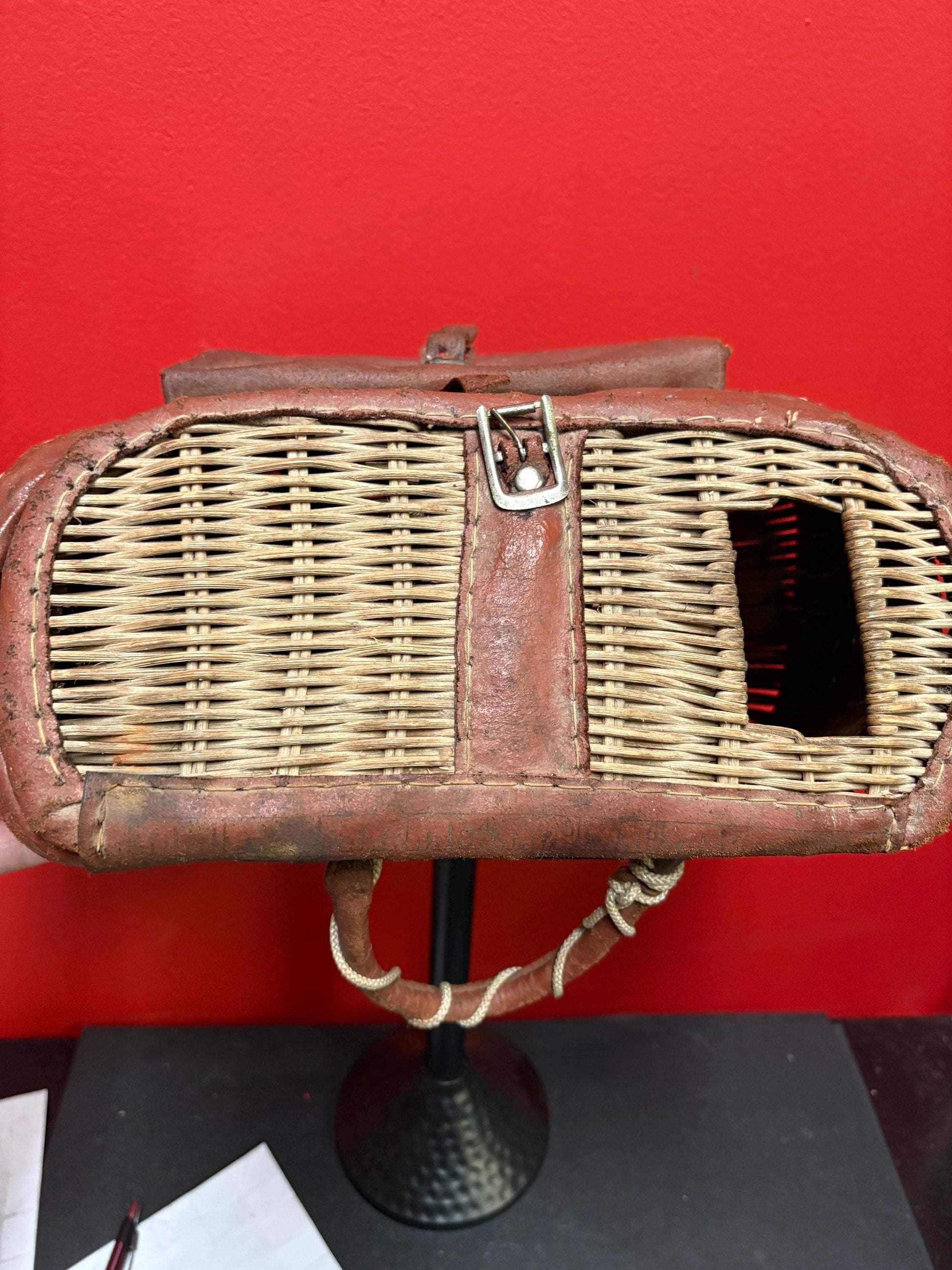 Beautiful antique Canadian fishing creel basket 15 x 6 x 8 high excellent condition except broken buckle antique beauty gone fishin