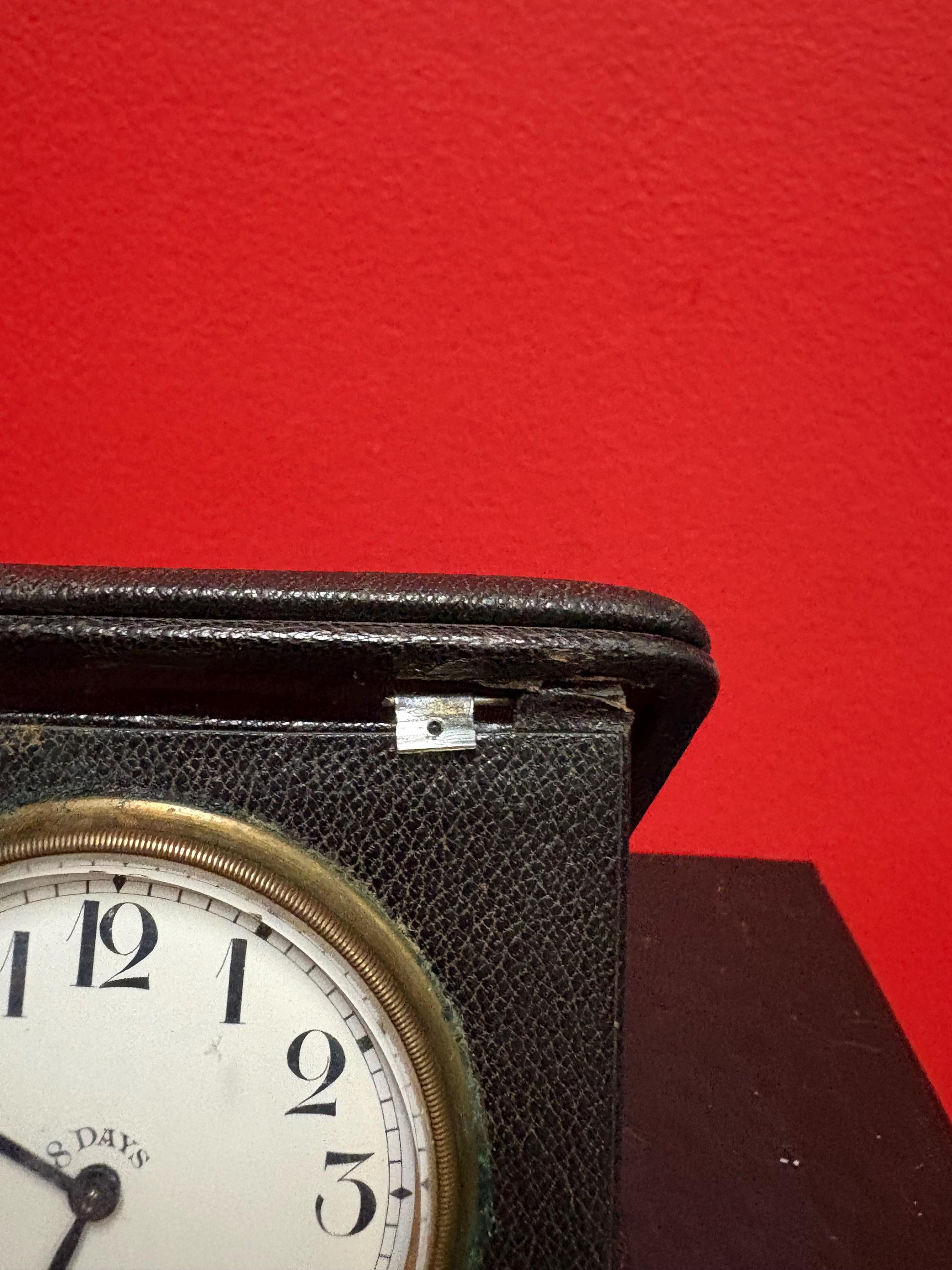 Beautiful antique English eight day watch in leather case — case as is — watch seems to work — final sale