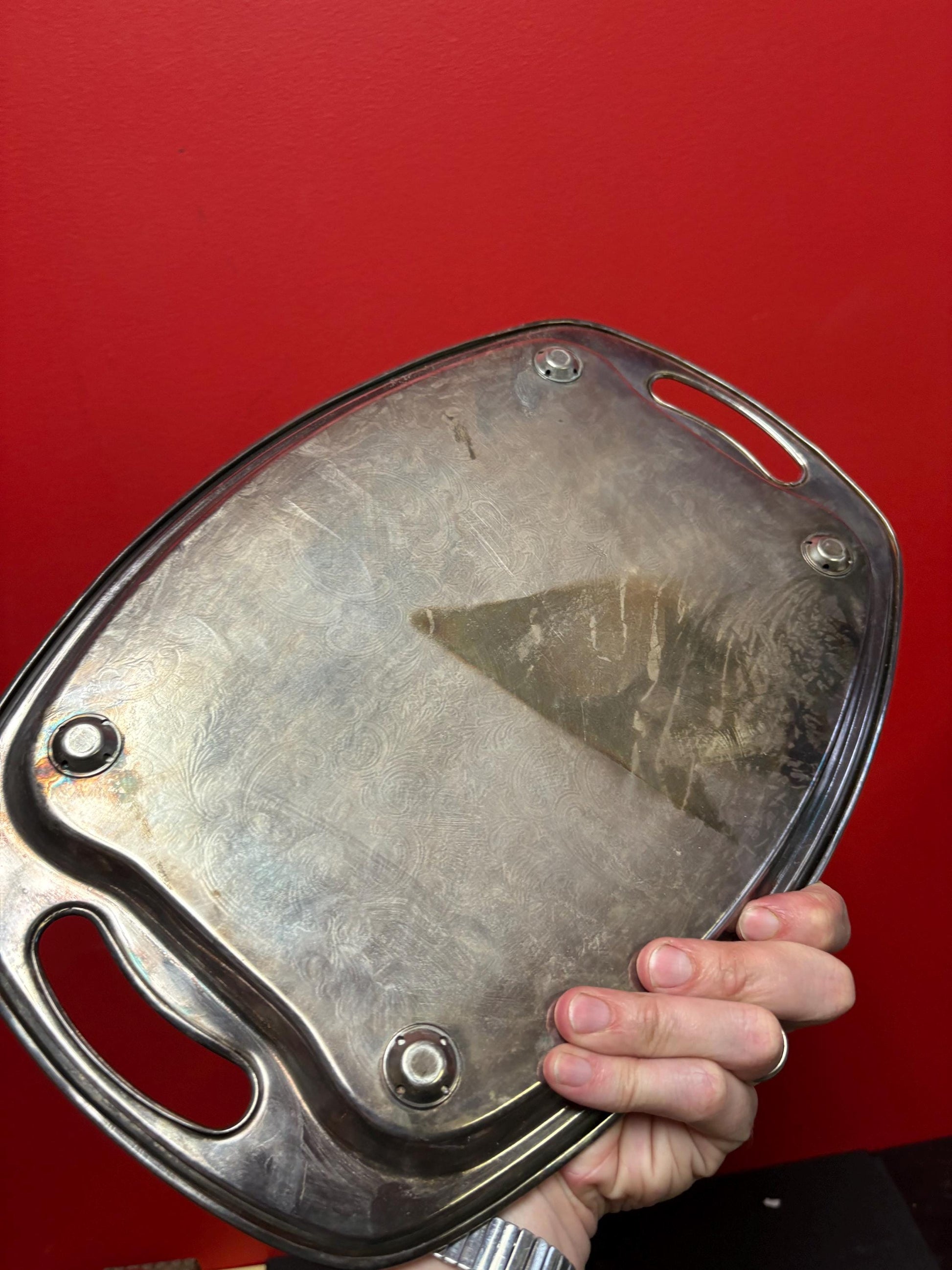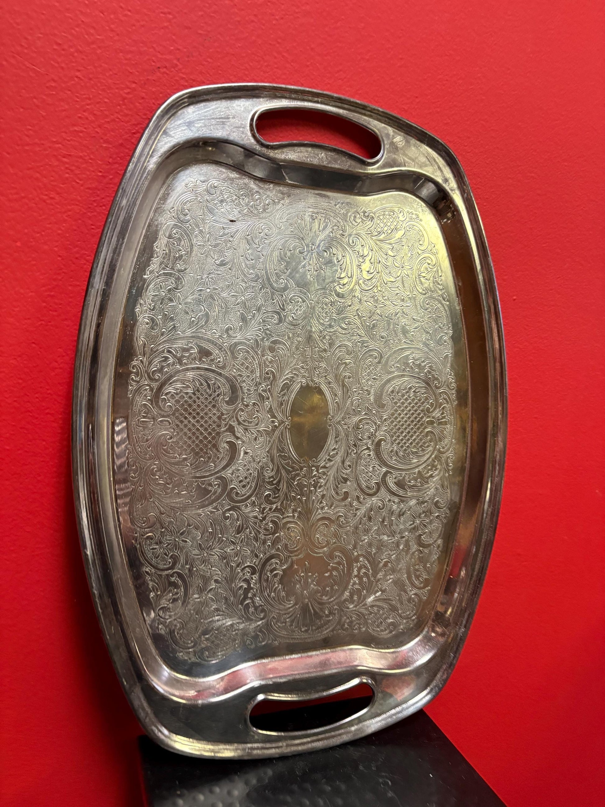 Beautiful antique English silver plated two handle tray - 16 x 11” wide— lovely small size — great gift and great value