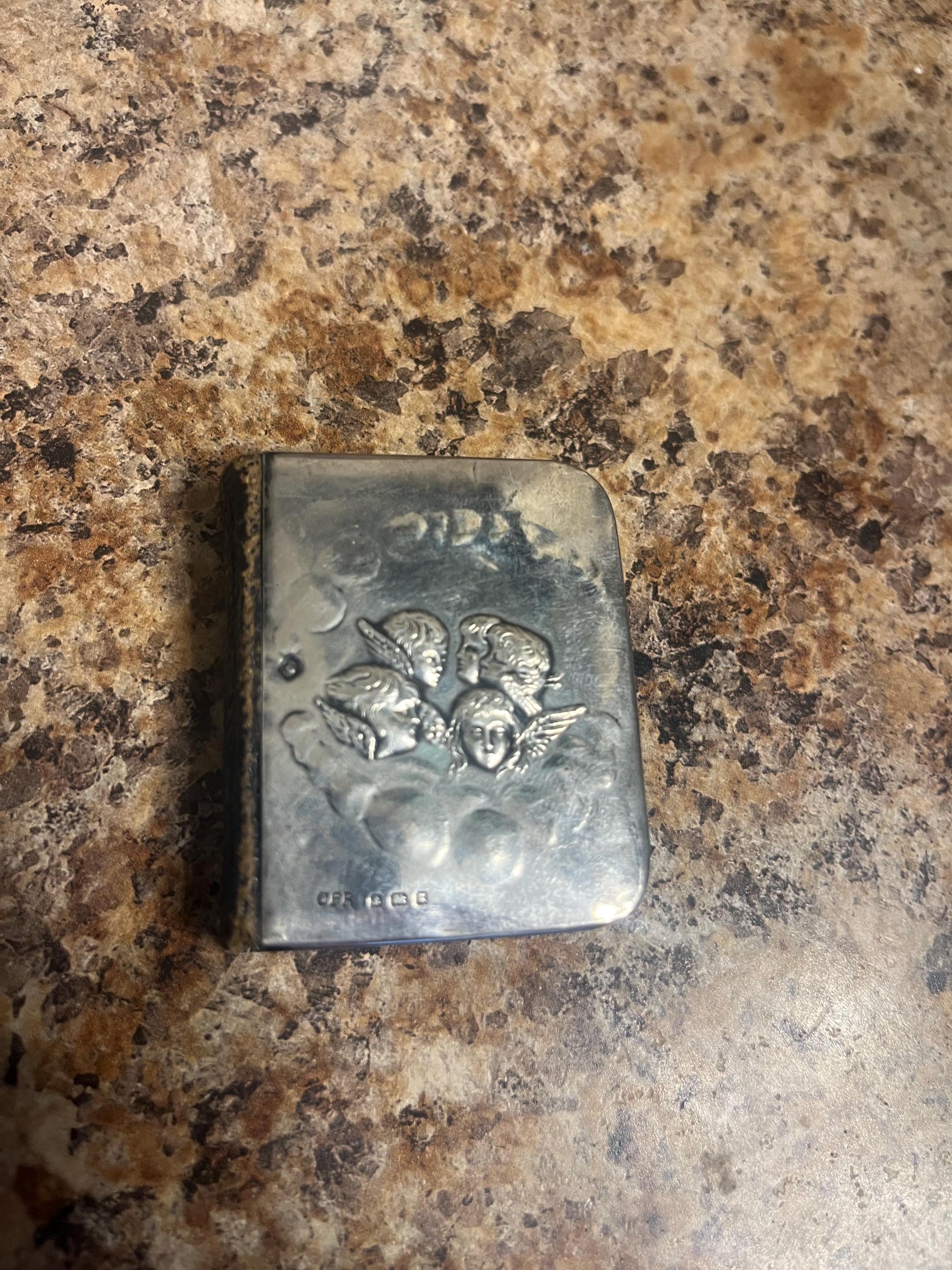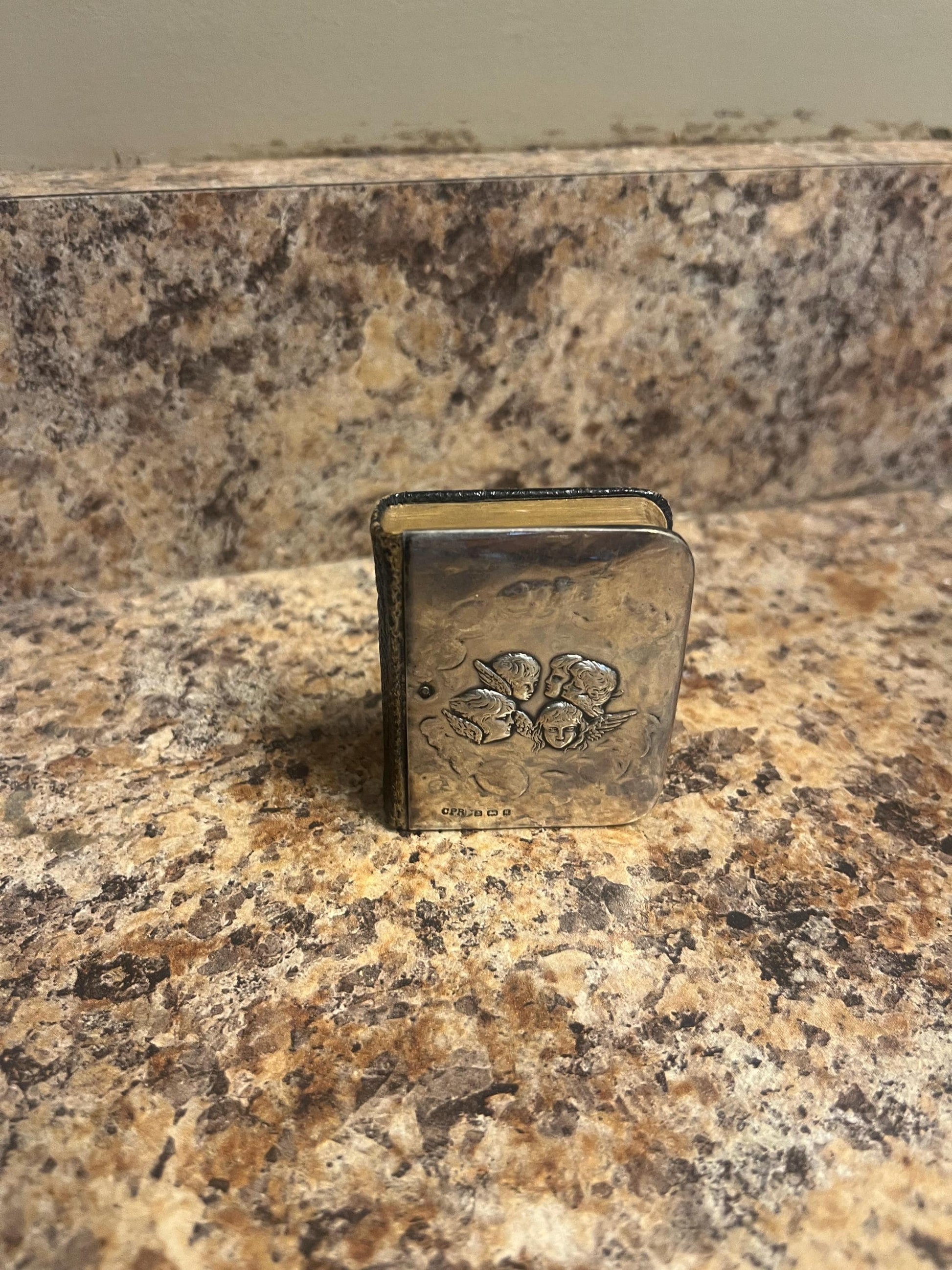 Beautiful antique hallmarked sterling silver cherub common prayer Bible 2 inches great condition