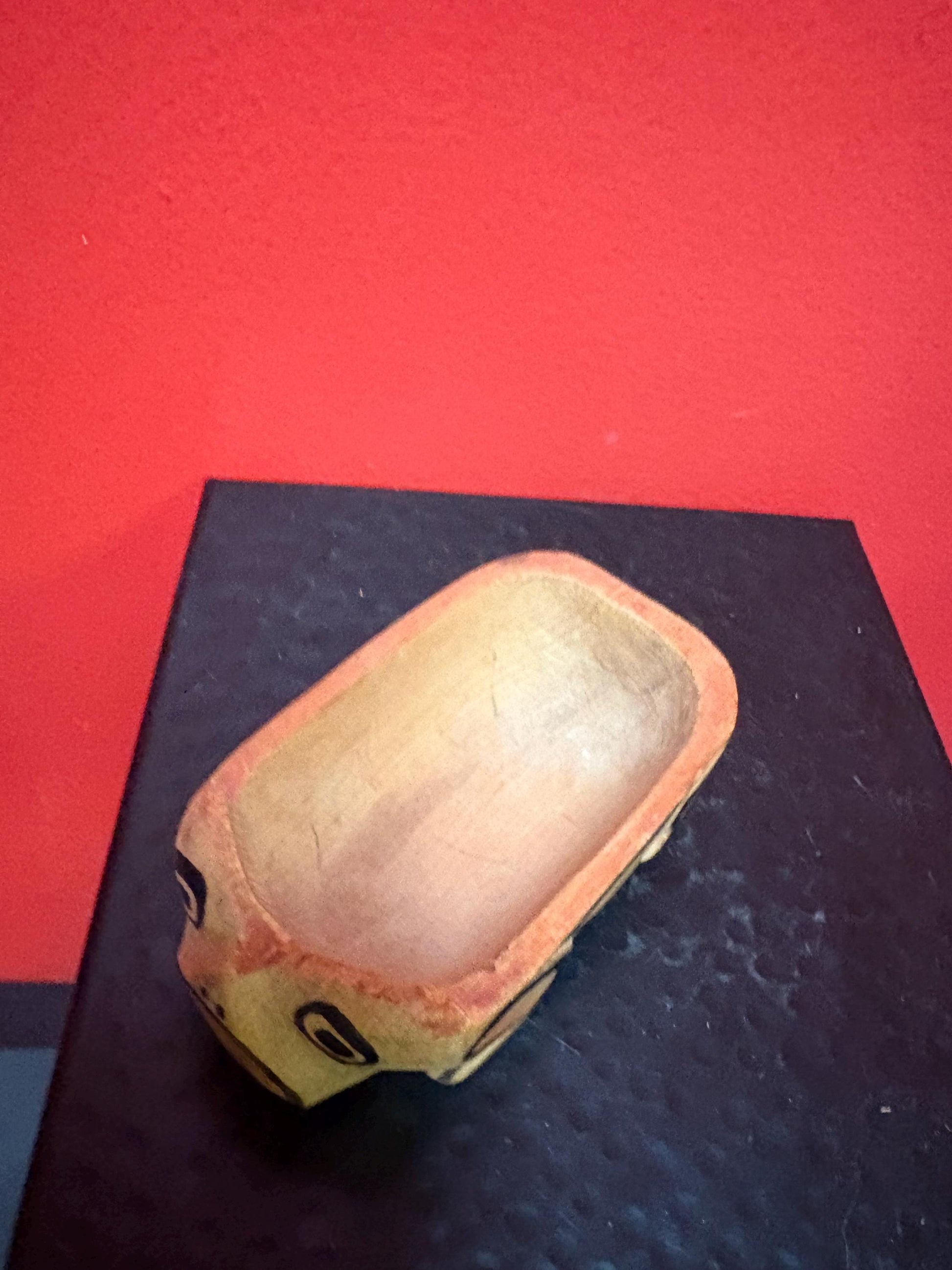 Beautiful antique indigenous first nation specific West Coast KAW - WAH painted cedar tiny feast bowl — 5 x 2 1/2” wide— hedgehog?