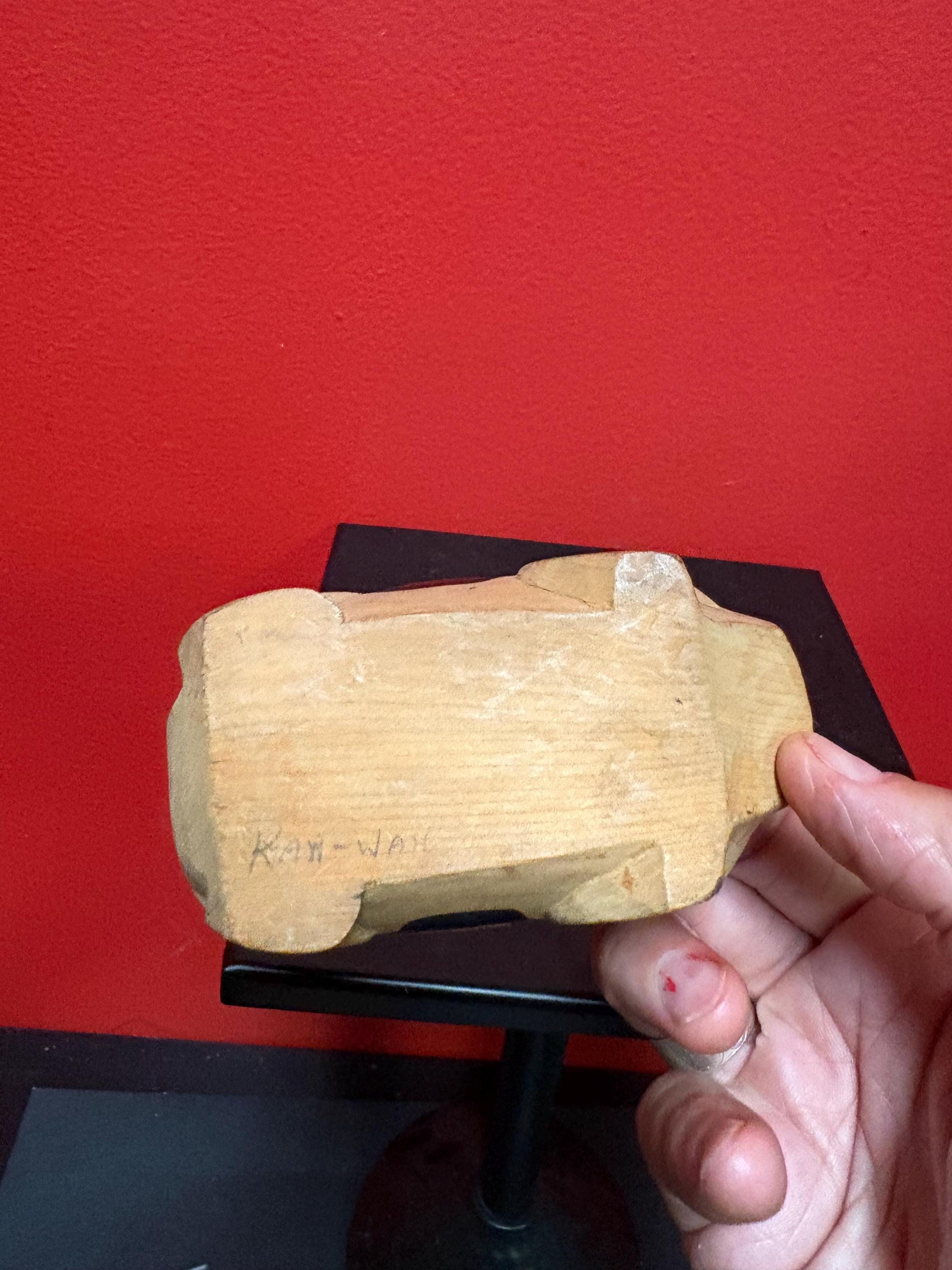 Beautiful antique indigenous first nation specific West Coast KAW - WAH painted cedar tiny feast bowl 5 x 2 1/2 wide hedgehog?