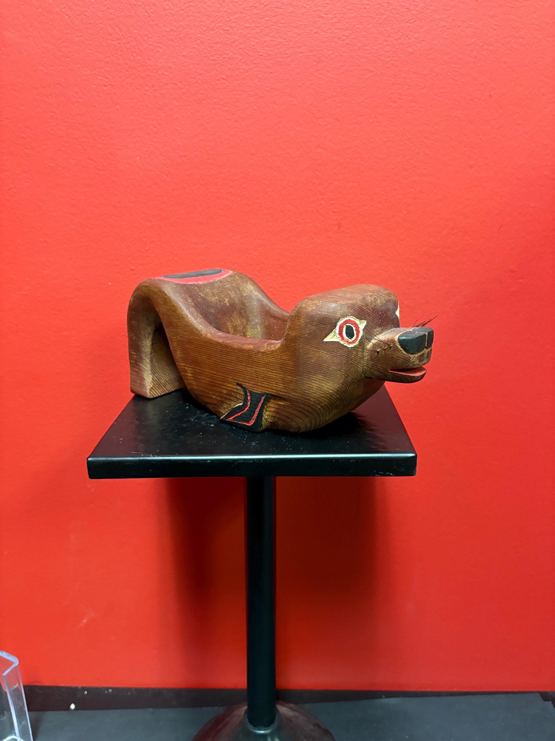 Beautiful antique indigenous First Nations Pacific Northwest Coast signed otter bowl — wonderful detail — 9 x 3 1/2” high — TED MORAN — wow