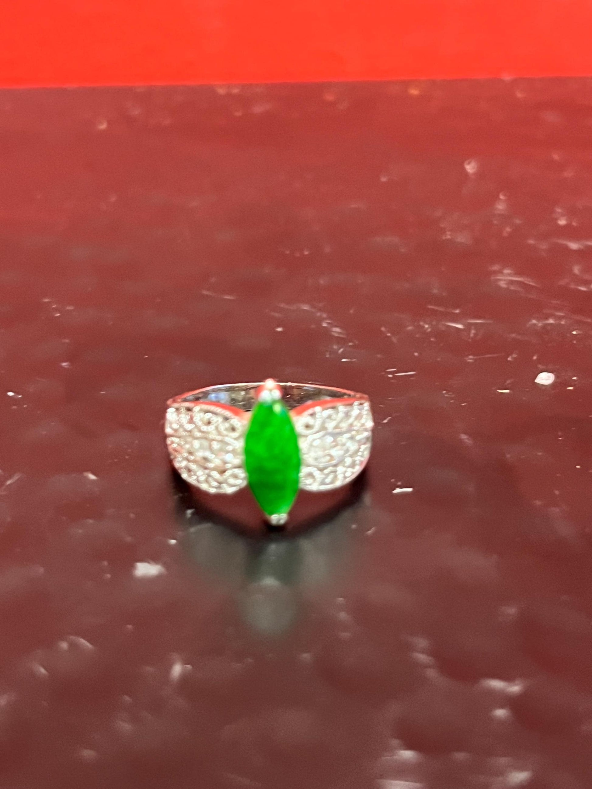 Beautiful antique stamped 10k, white gold ring with emerald - estate piece size 5.5 and great value shiny gold Ring