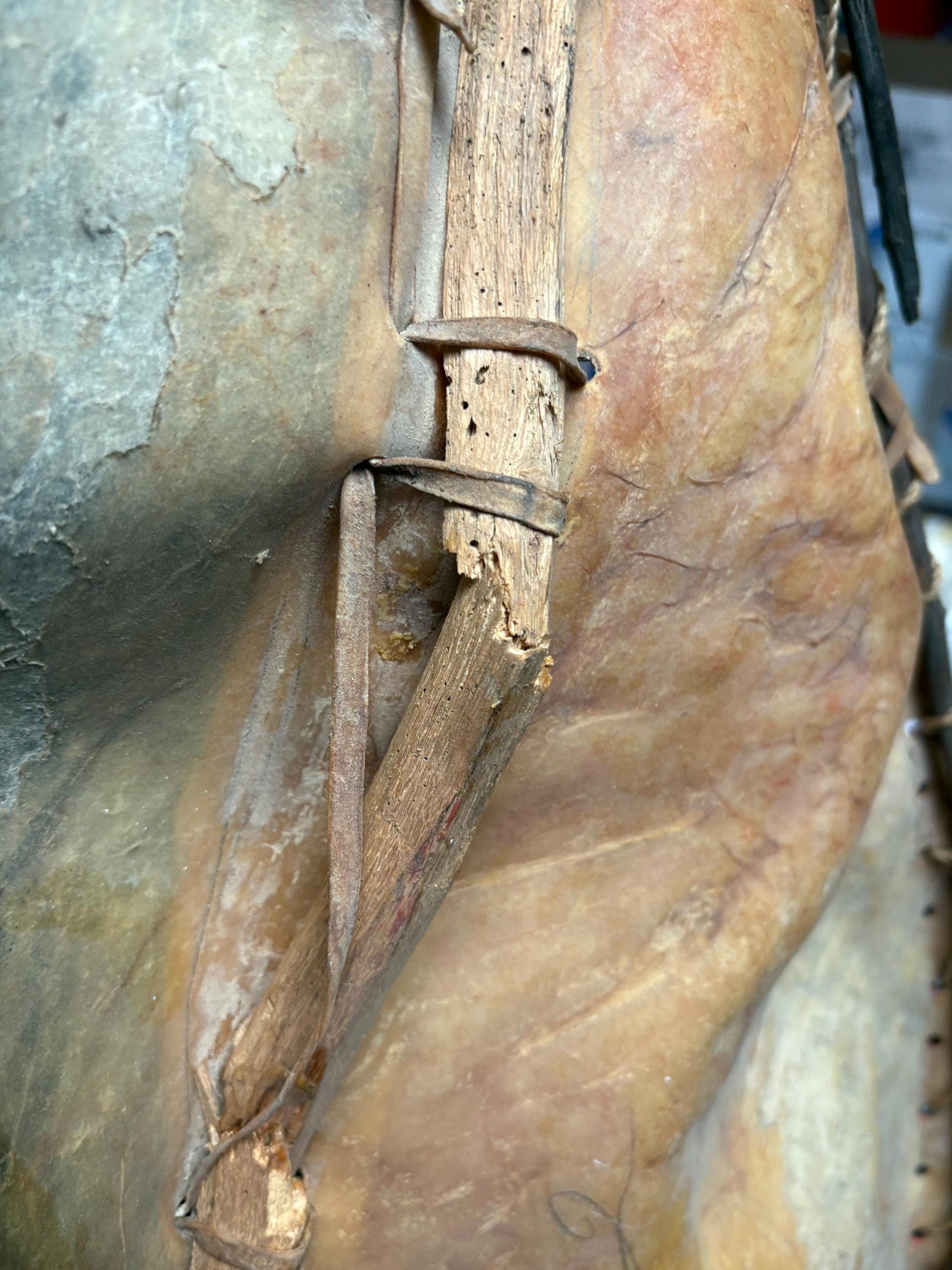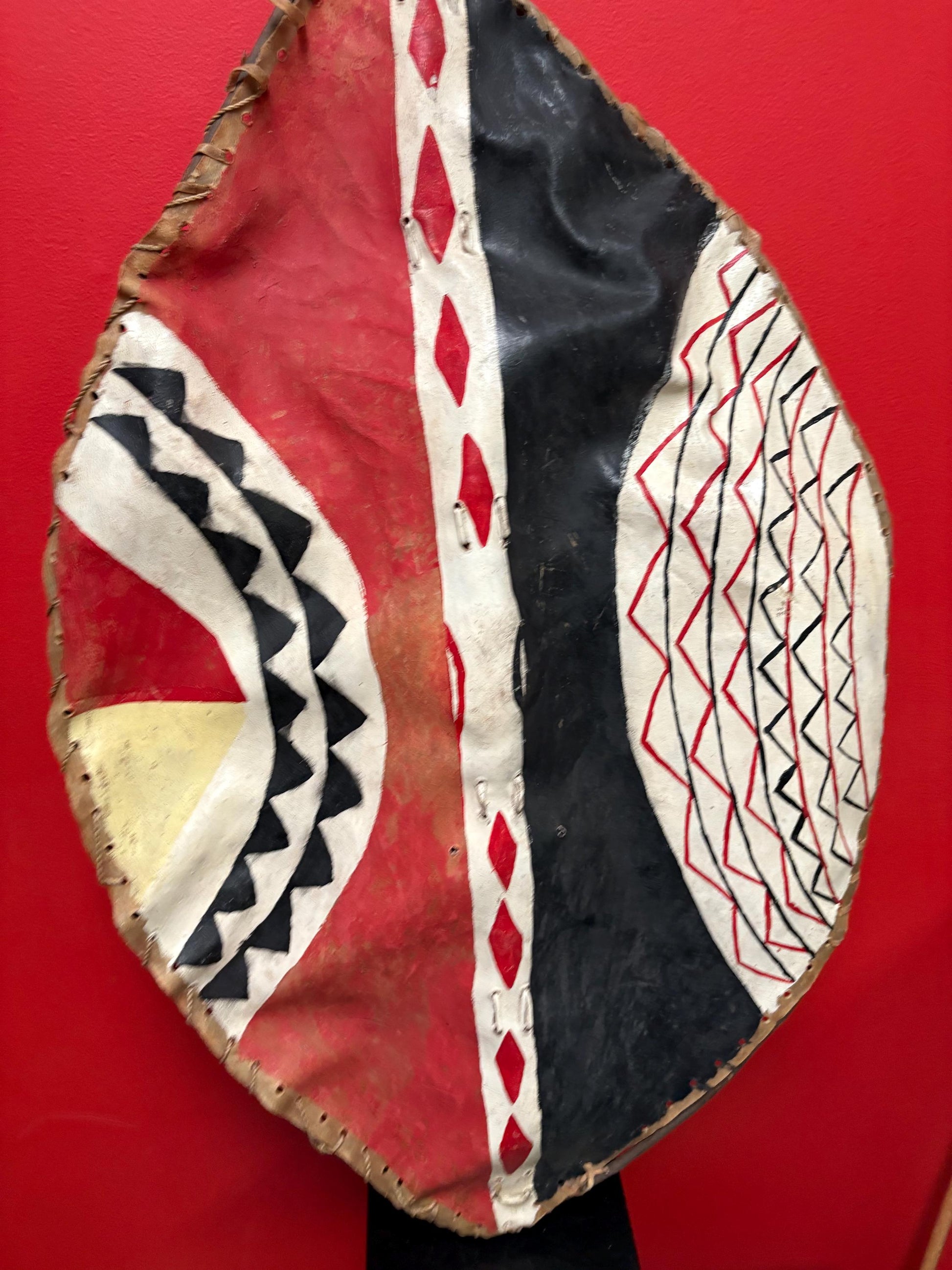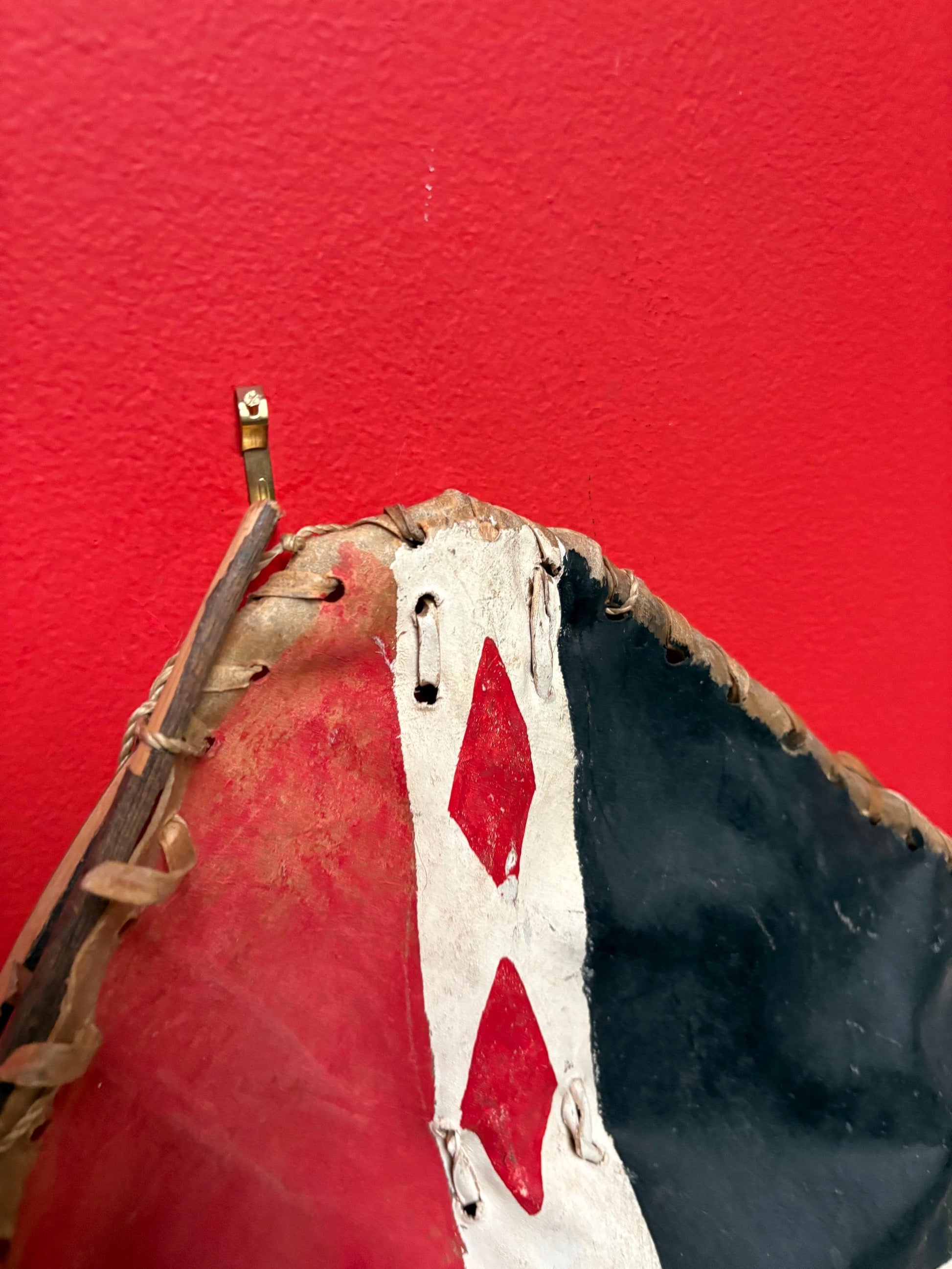 Beautiful authentic antique 32 x 19“ wide African painted warrior shield great decoration and not perfect condition. See photos.