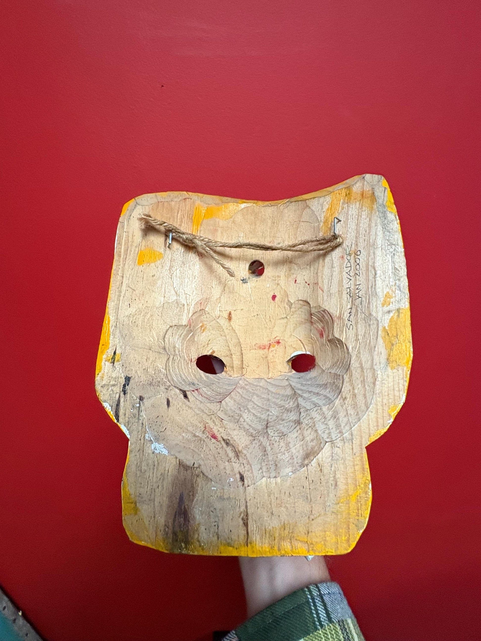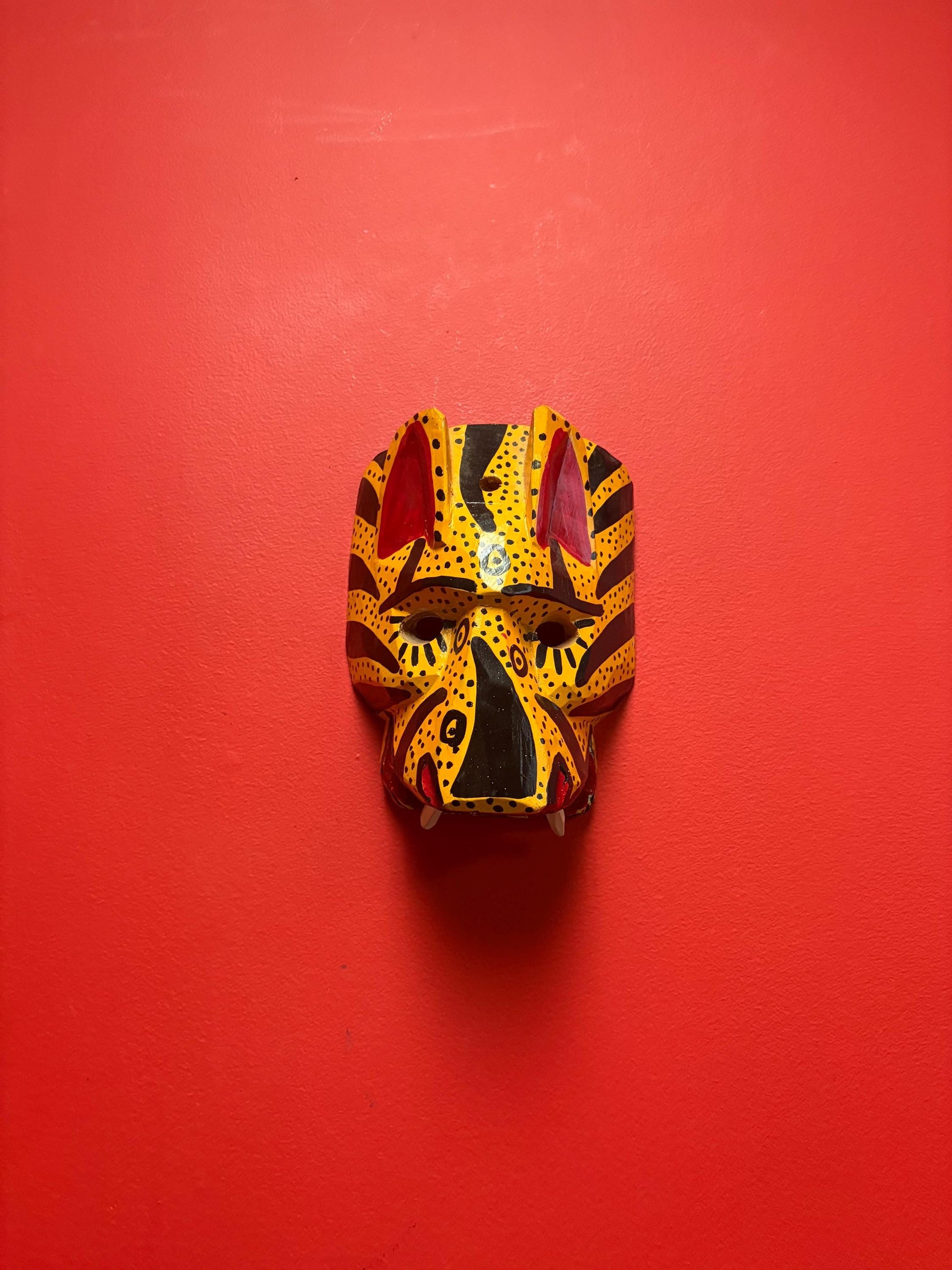 Beautiful central American painted vintage mask - 9 x 7“ wide cheetah style imagery looks great on wall