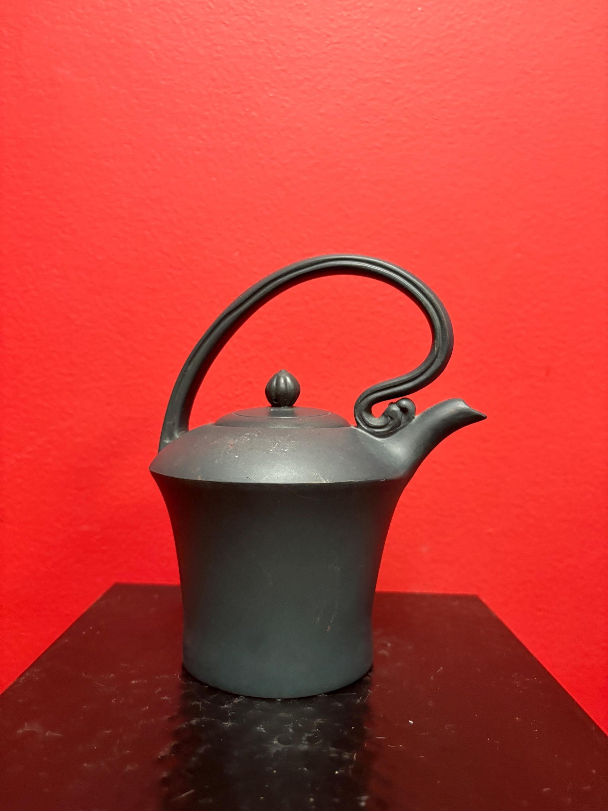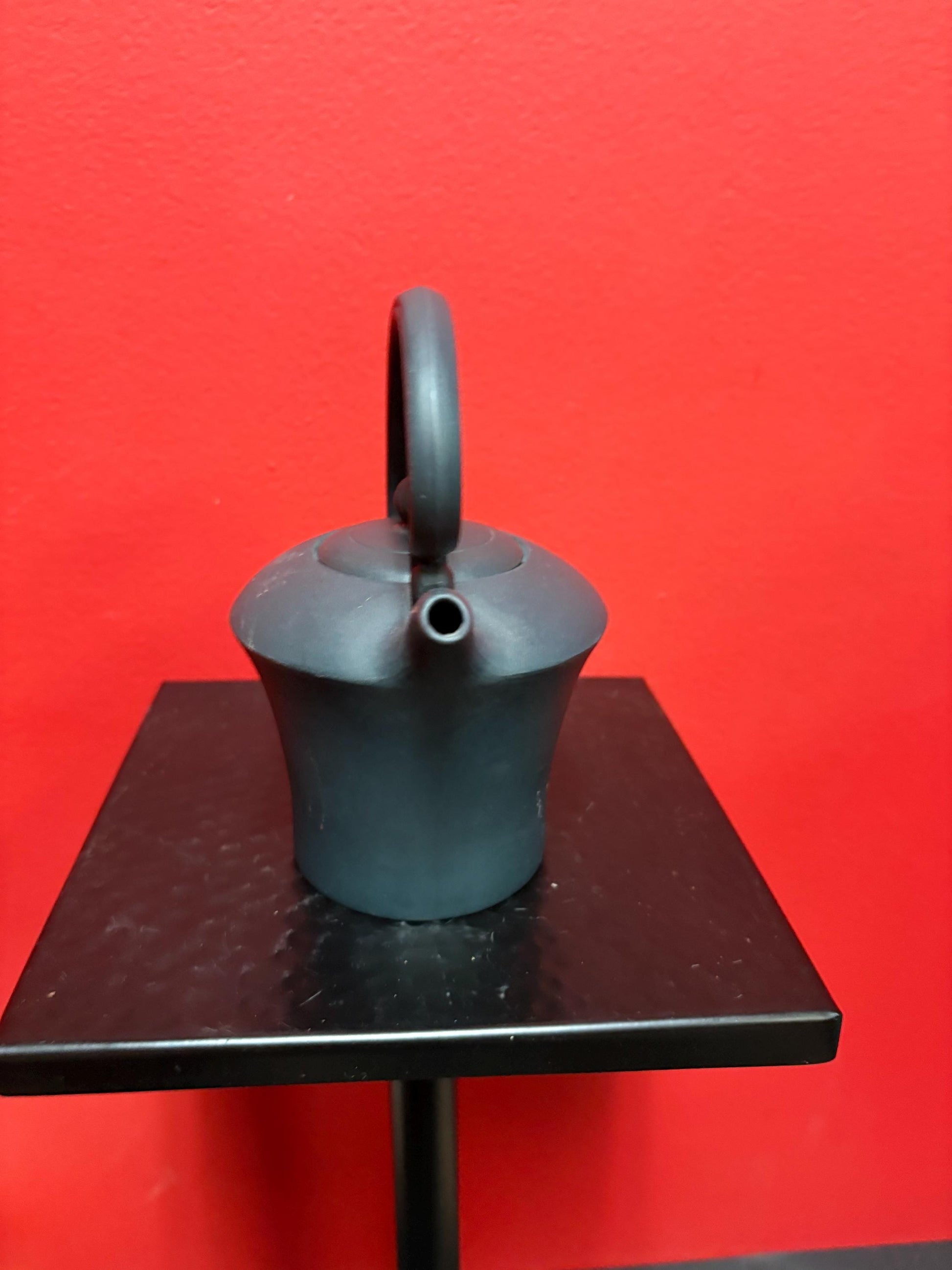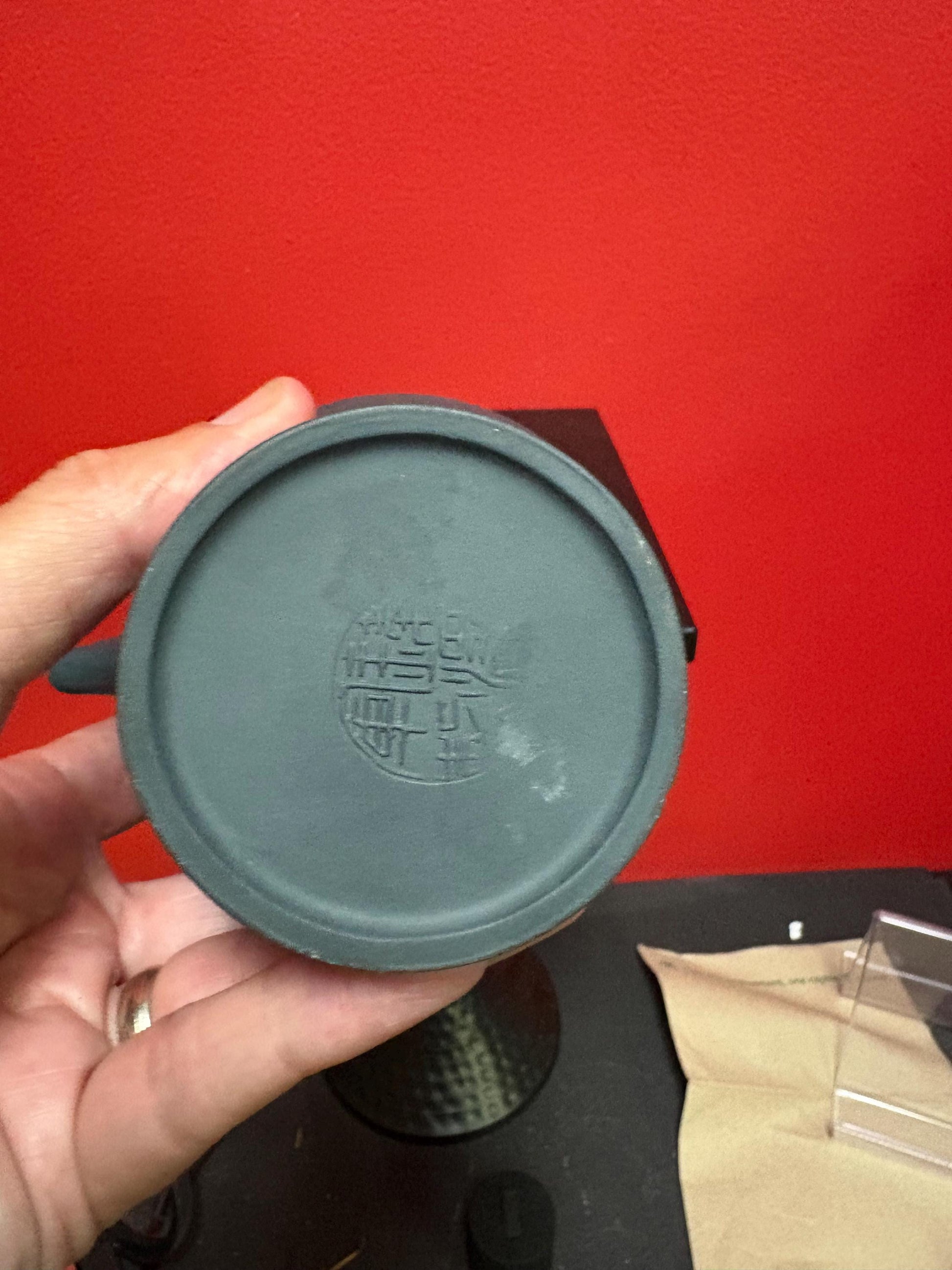 Beautiful Chinese 6 inch high green yixing clay teapot in the shape of a watering can good condition - tiny chip - and great value