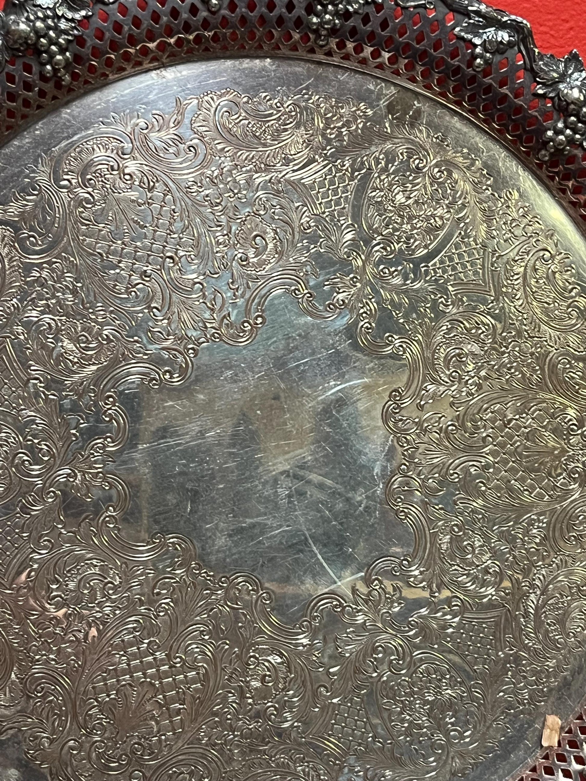 Beautiful English 14 inch heavily decorated tray with grape motif very elegant and well priced could use a light polish