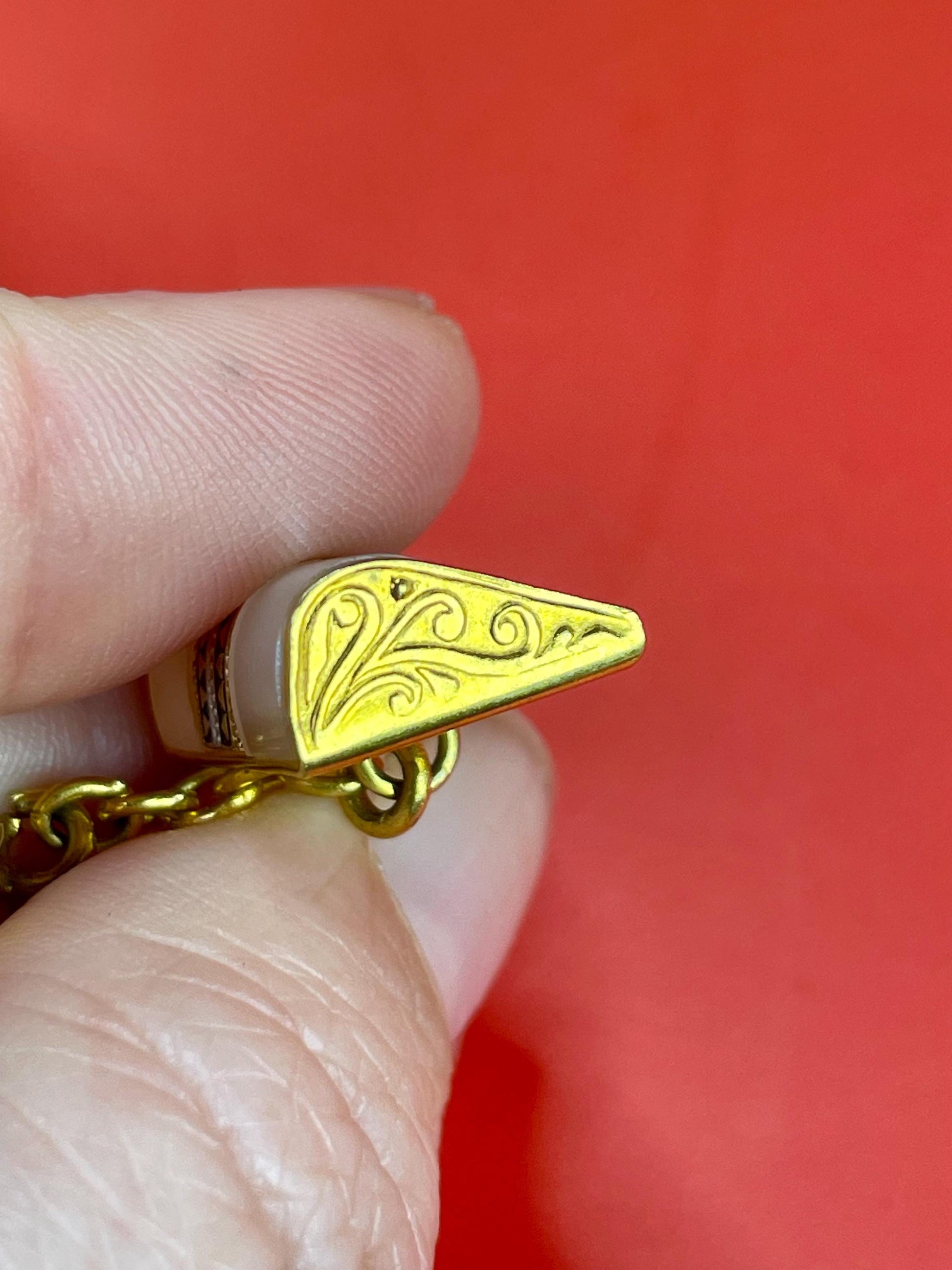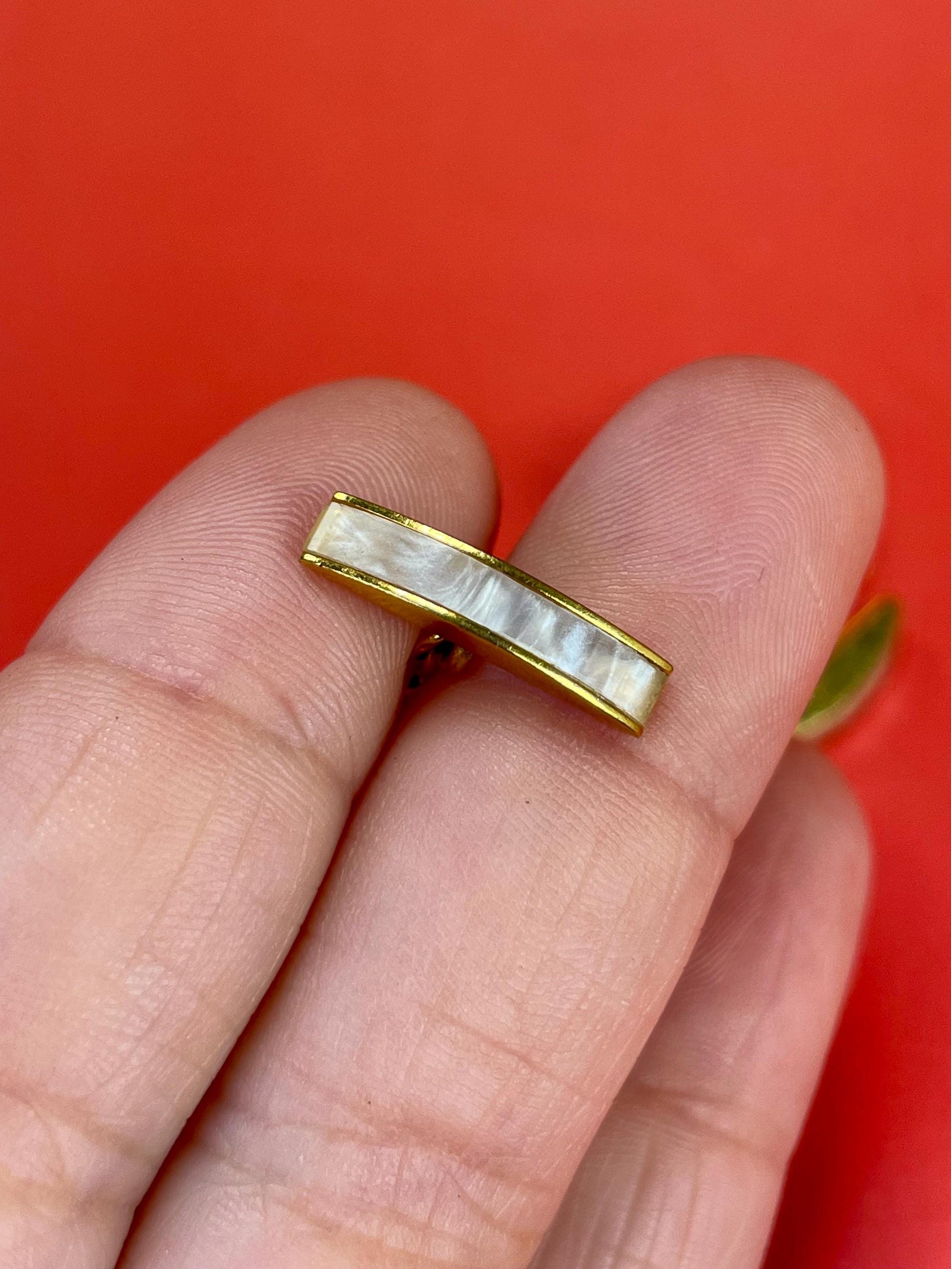 Beautiful goldtone and pearlescent cufflinks great detailing on the sides. .75 inch wide