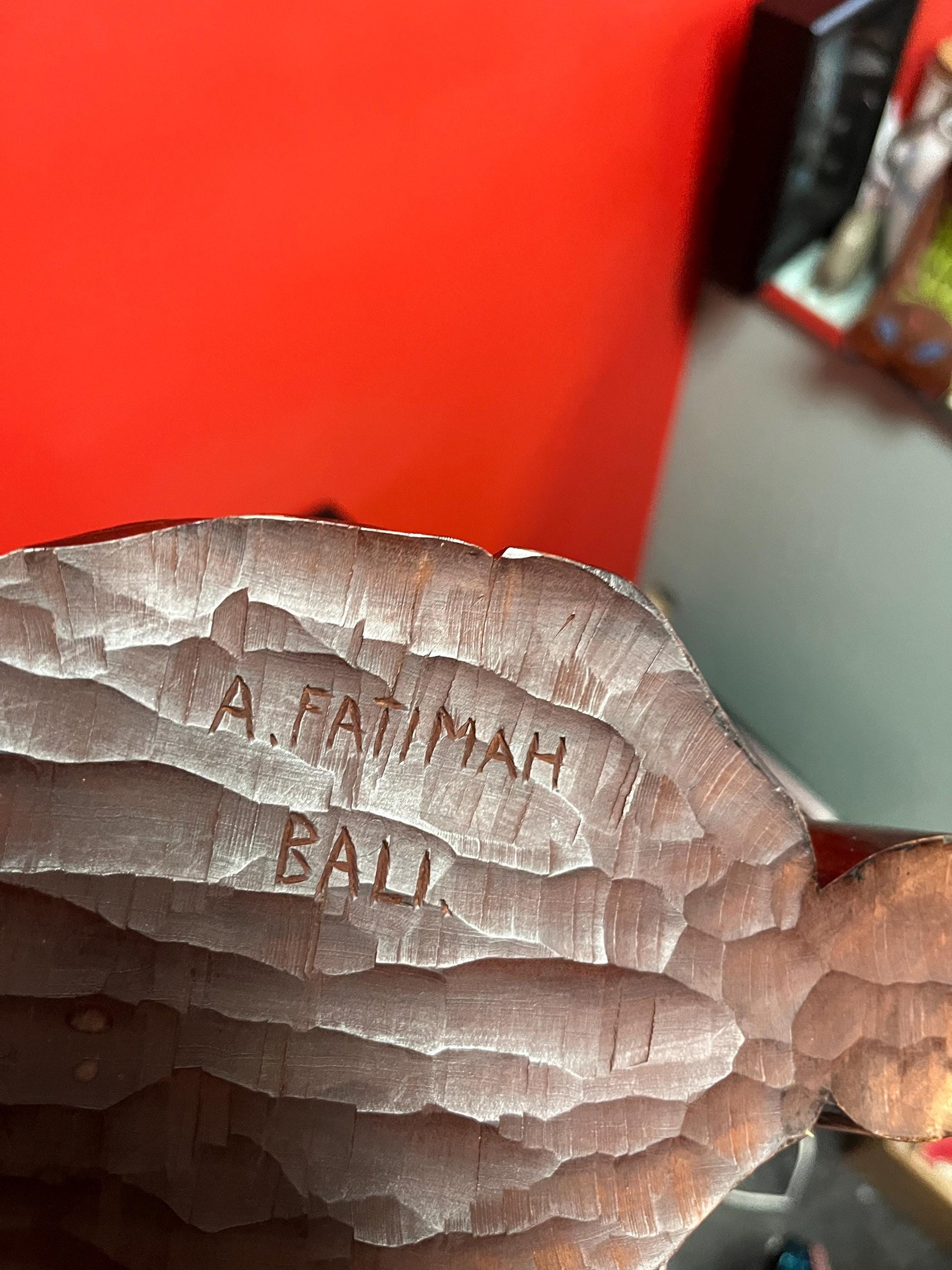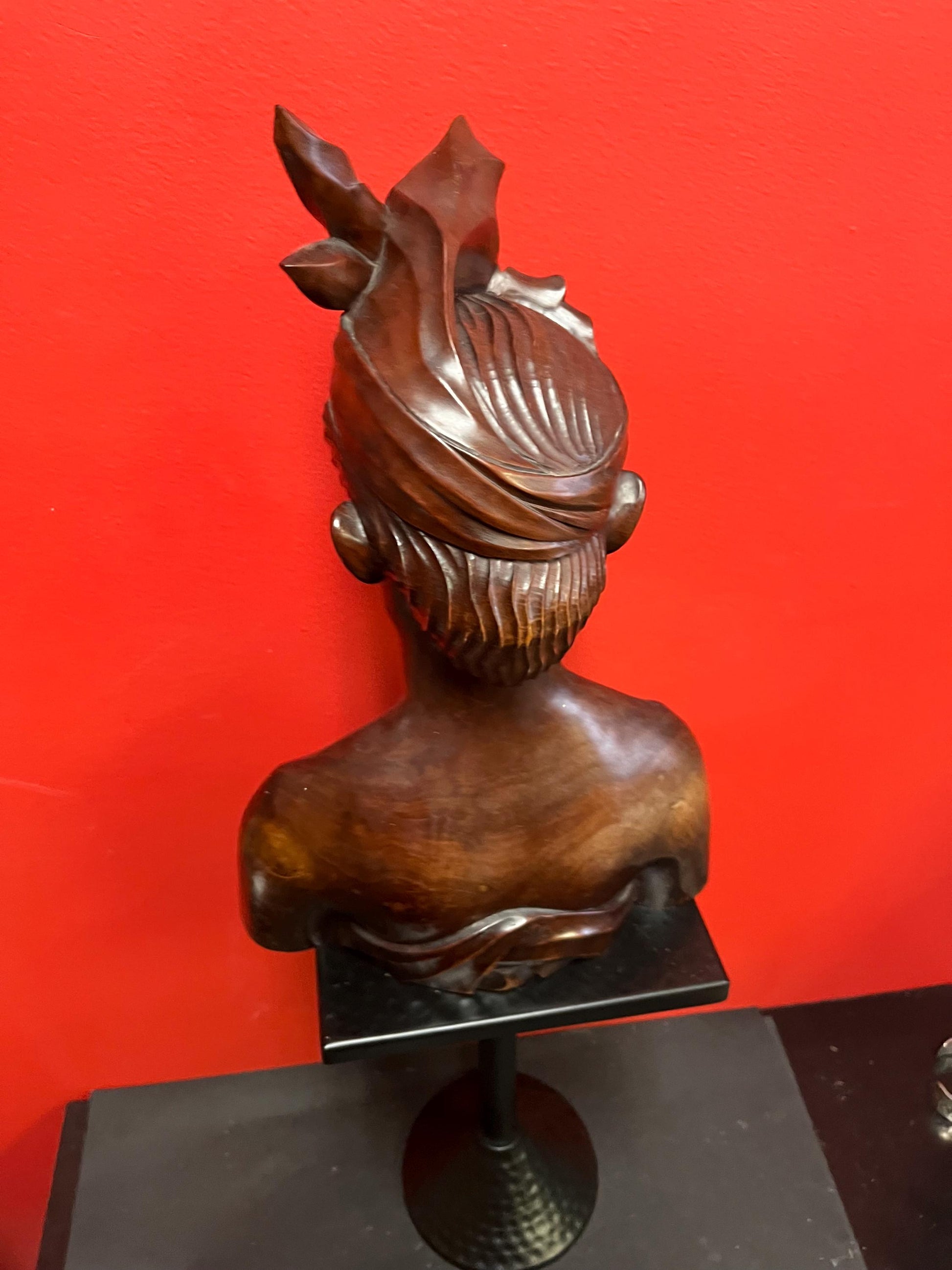 Beautiful heavy 17 inch tall signed wooden statue of a male warrior Indonesian old perfect condition and detail