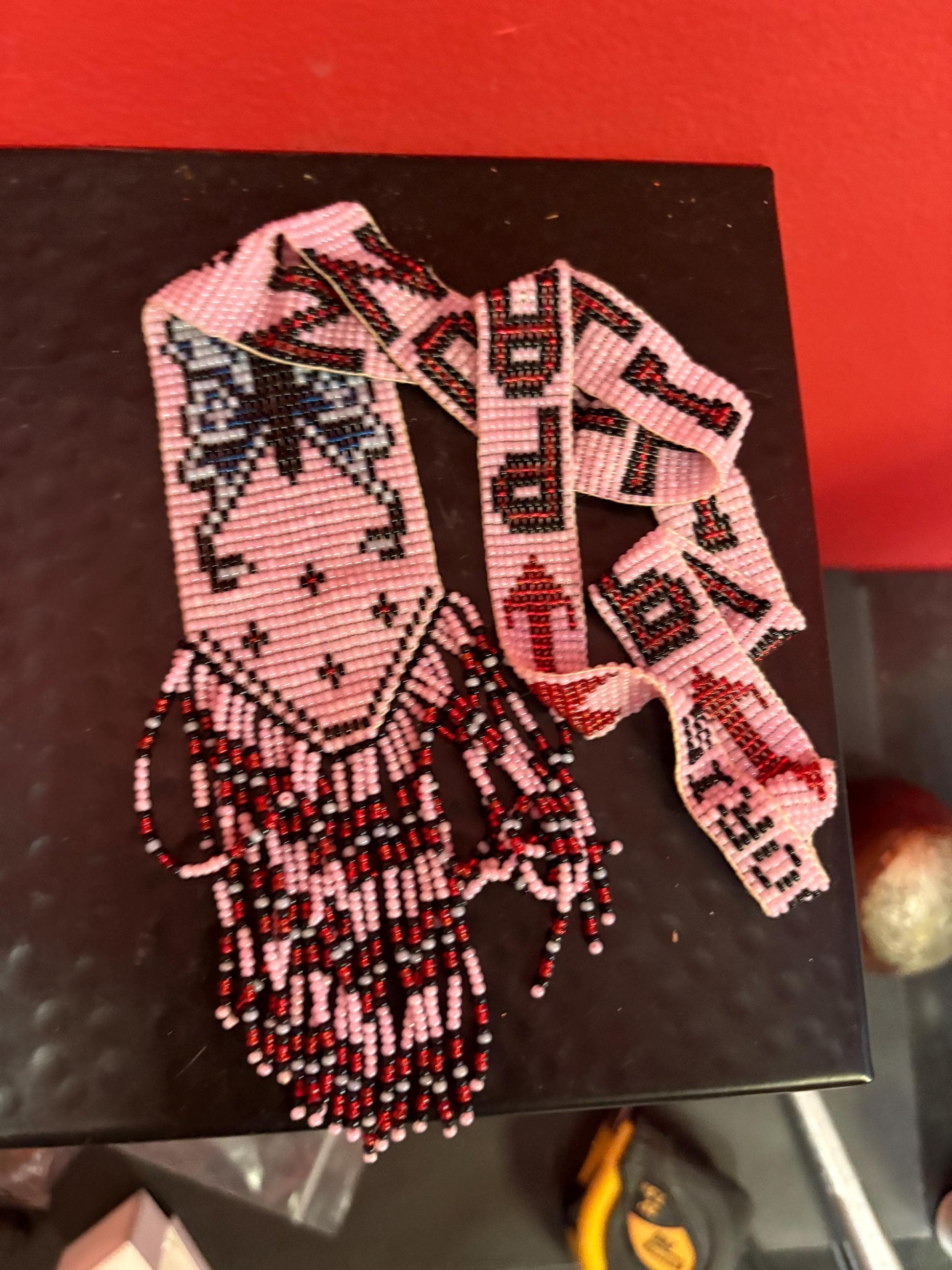 Beautiful indigenous First Nations beaded necklace representing PAPILLON great condition