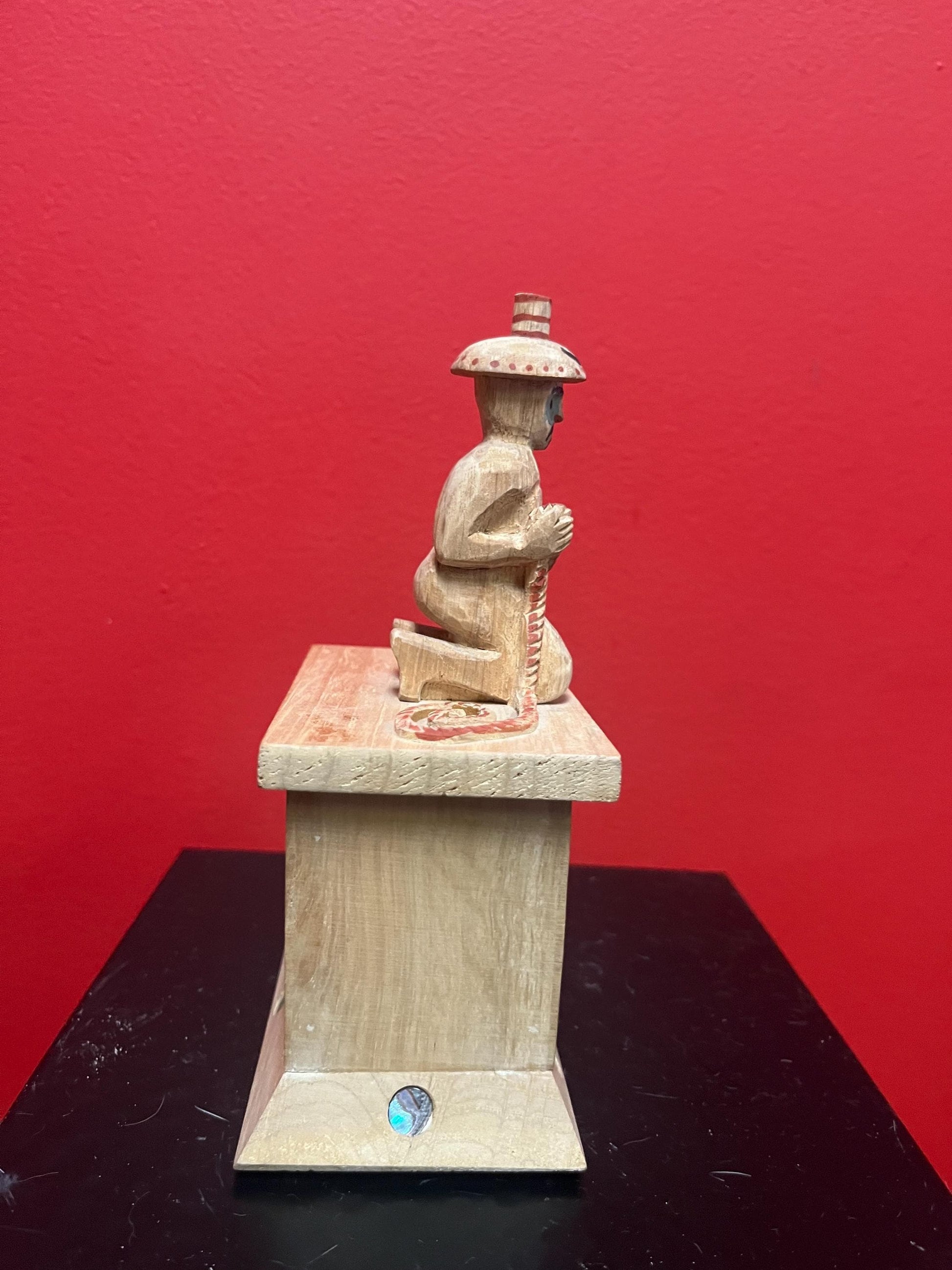 Beautiful indigenous first nations Haida wooden carved and painted box great detail and abalone features 7 x 4 wide