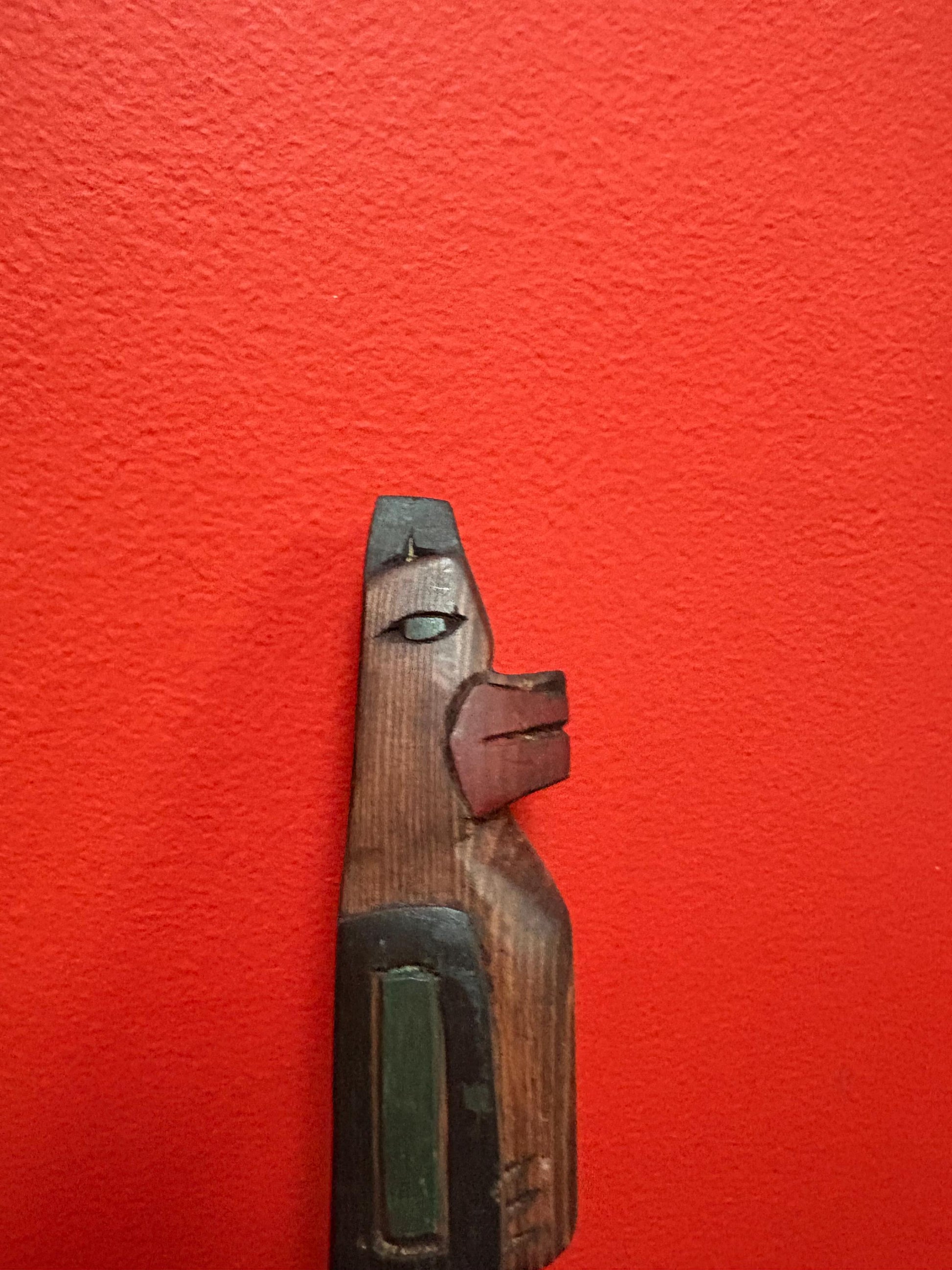 Beautiful indigenous first Pacific Northwest Coast 14 inch talking stick by Frank and Dora Frenchie Vancouver Island bear symbolism