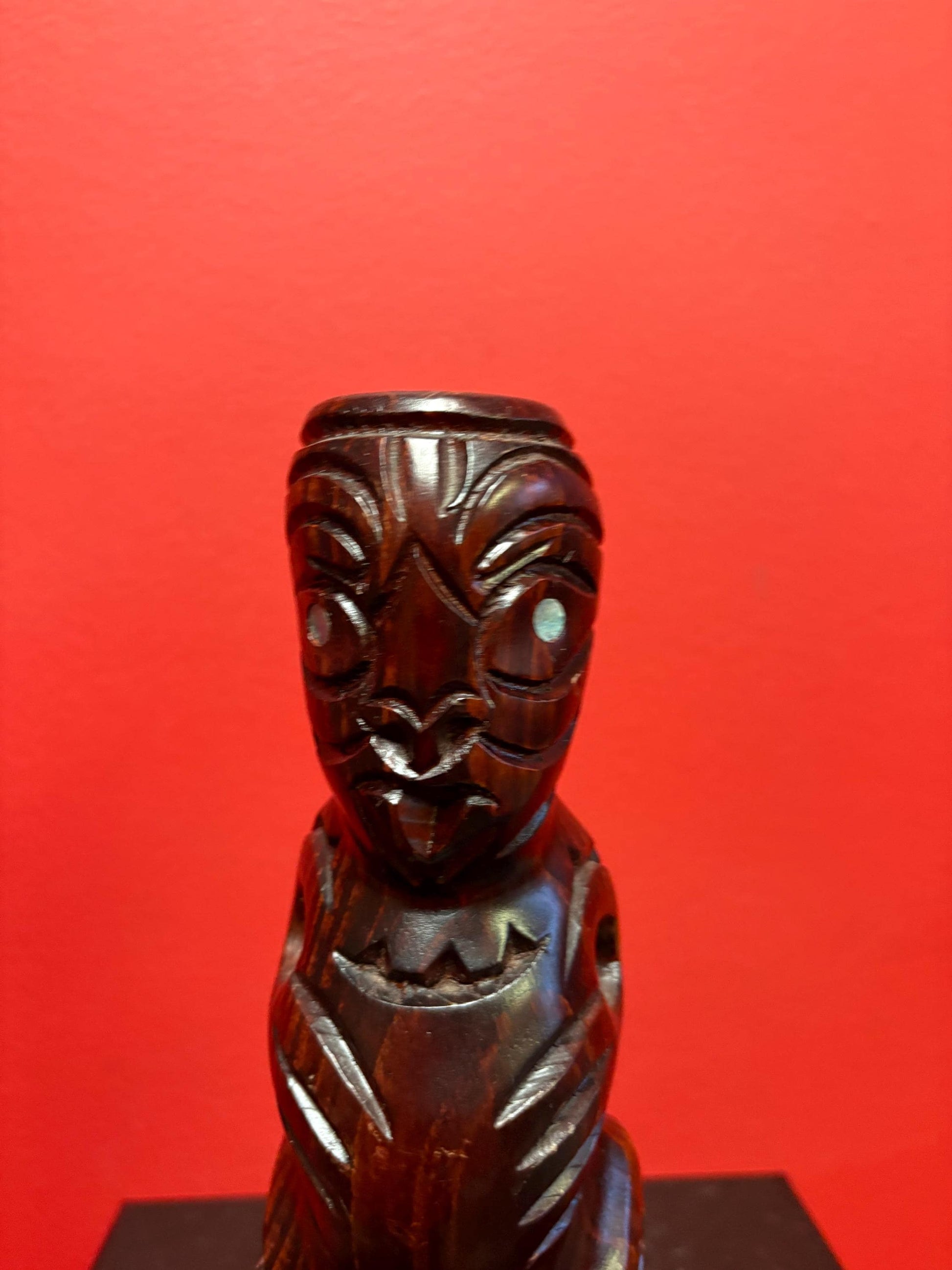 Beautiful indigenous New Zealand aboriginal Maori statue with Abalone eyes 8 inches tall lovely piece