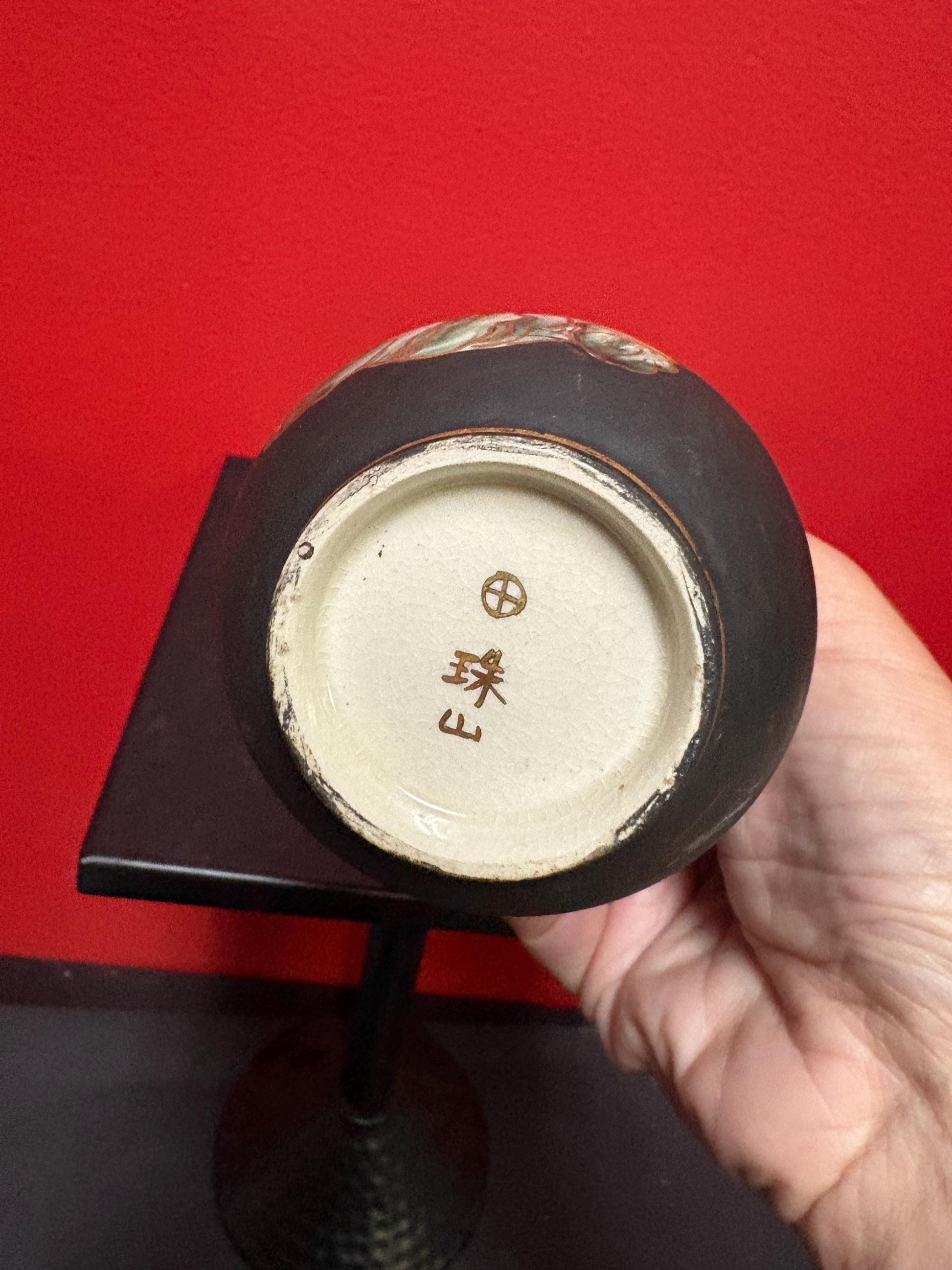 Beautiful Japanese 5 inch tall handpainted signed vase with unusual imagery - great value