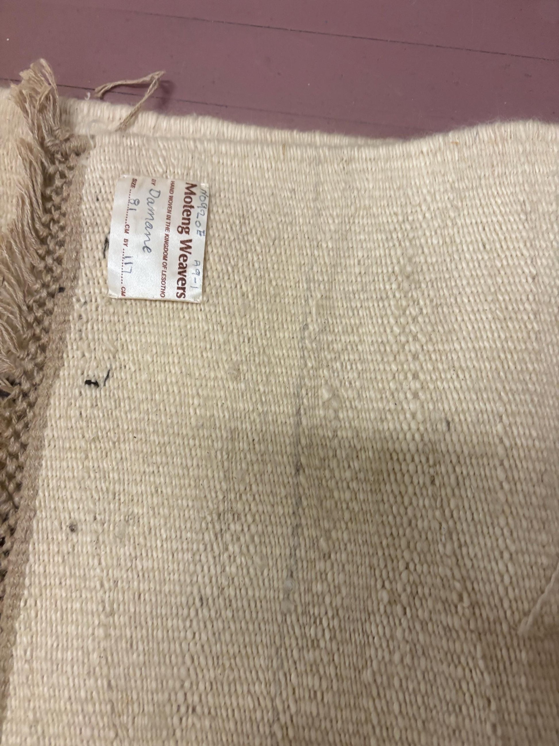 Beautiful monteng weavers signed 81 x 117 cm woven South African LESOTHO wall hanging depicting a gentleman - needs hanger