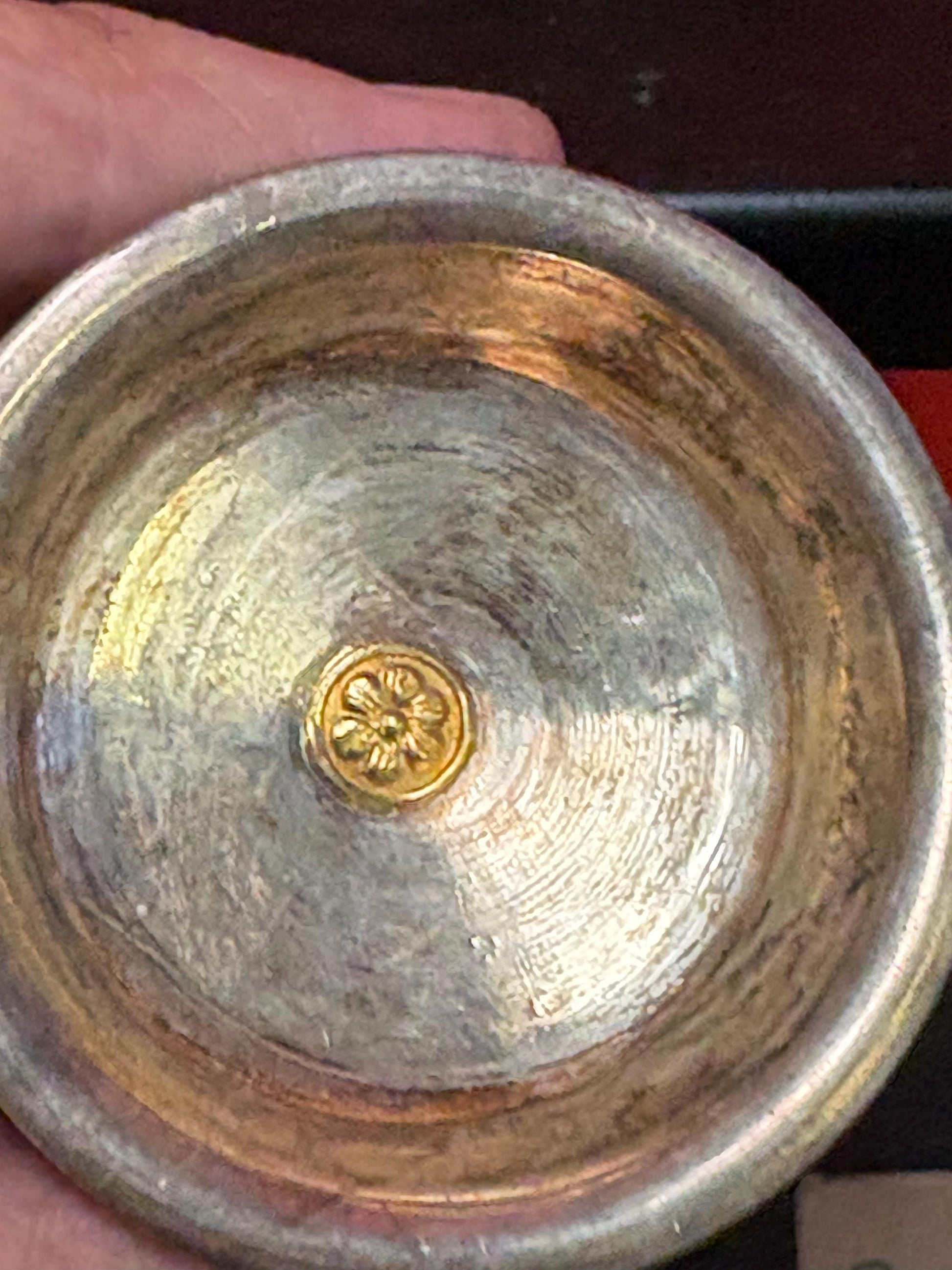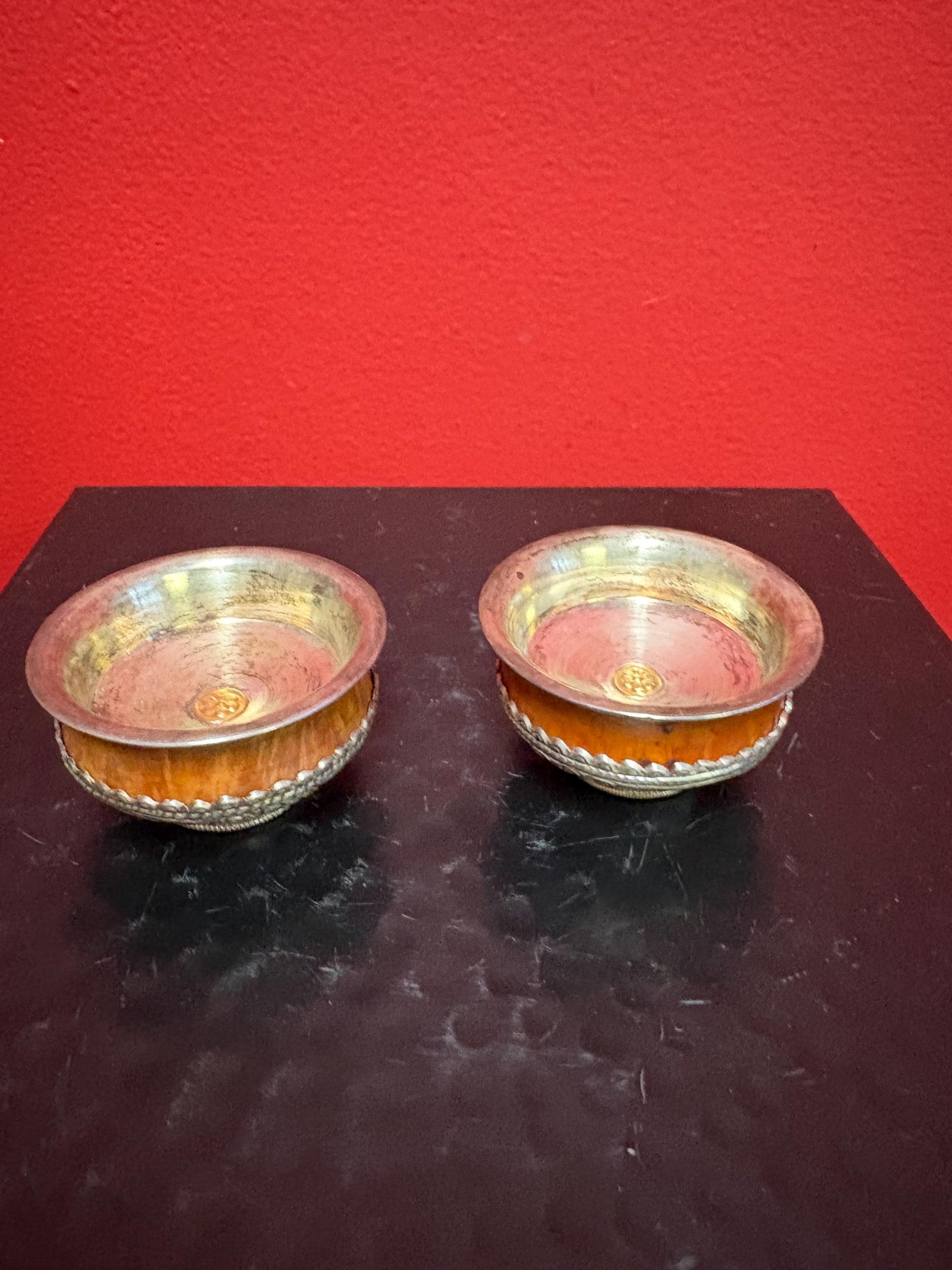 Beautiful Nepalese 2 x 1 high silver and wood ceremonial cups very lovely detail