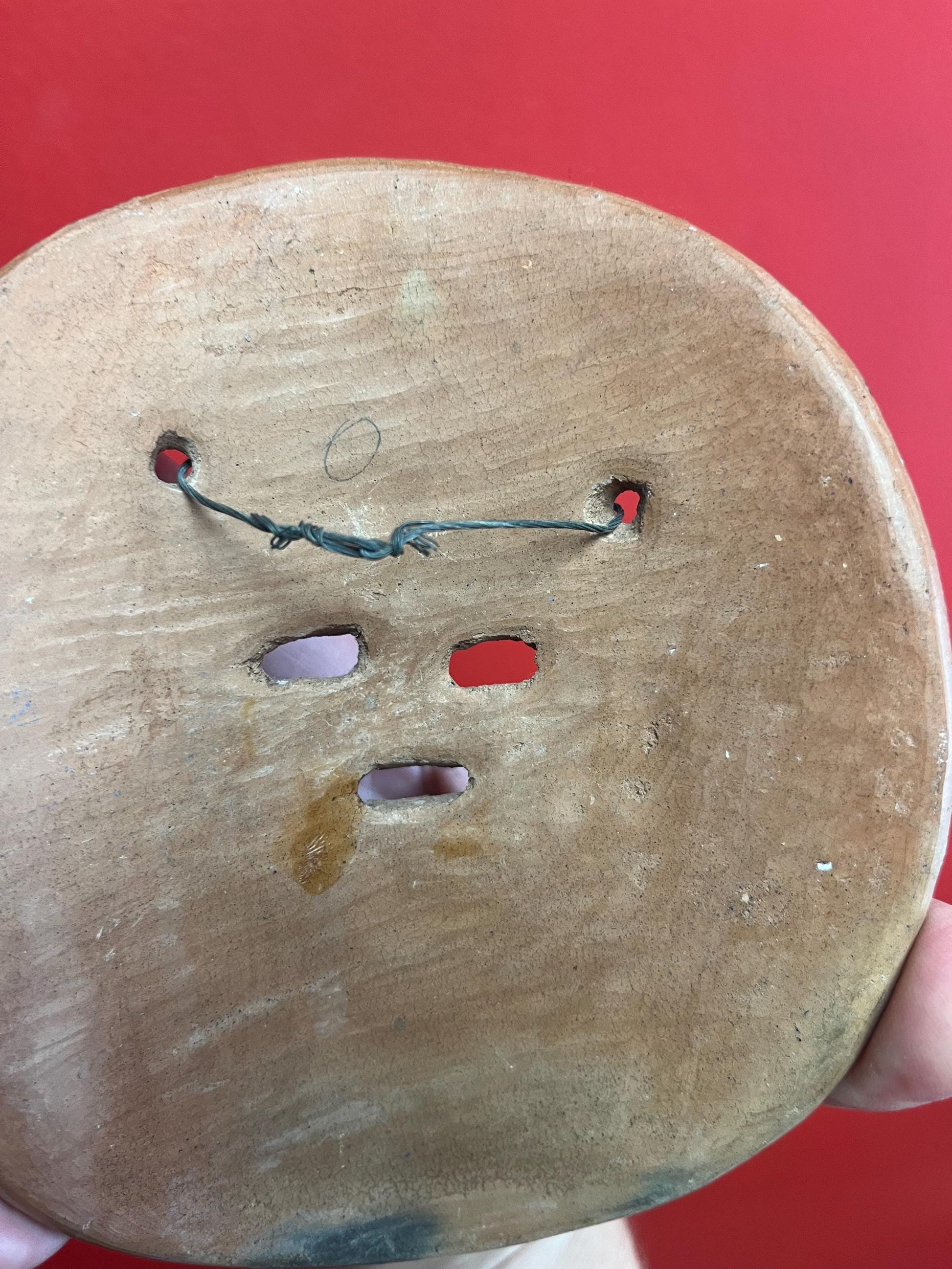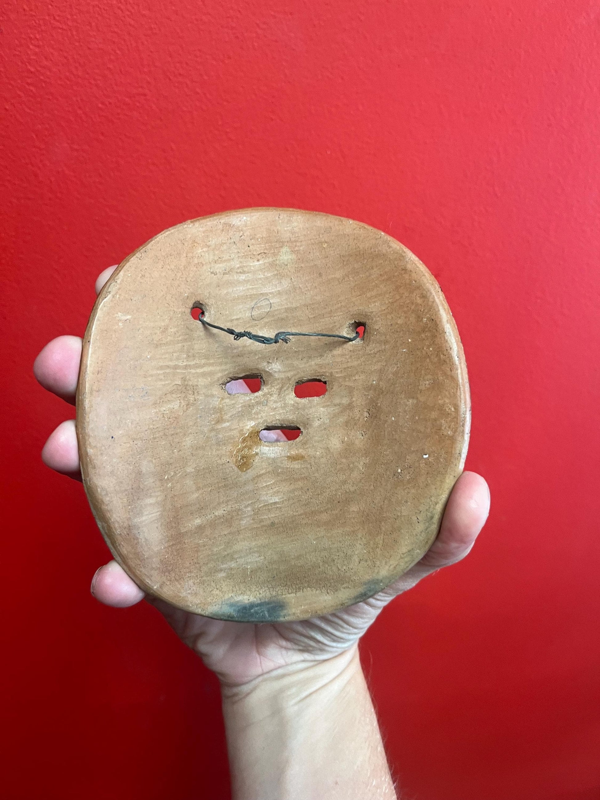 Beautiful old 6 inch tall Clay sun mask Mexican well painted ready to hang folk art beauty wow
