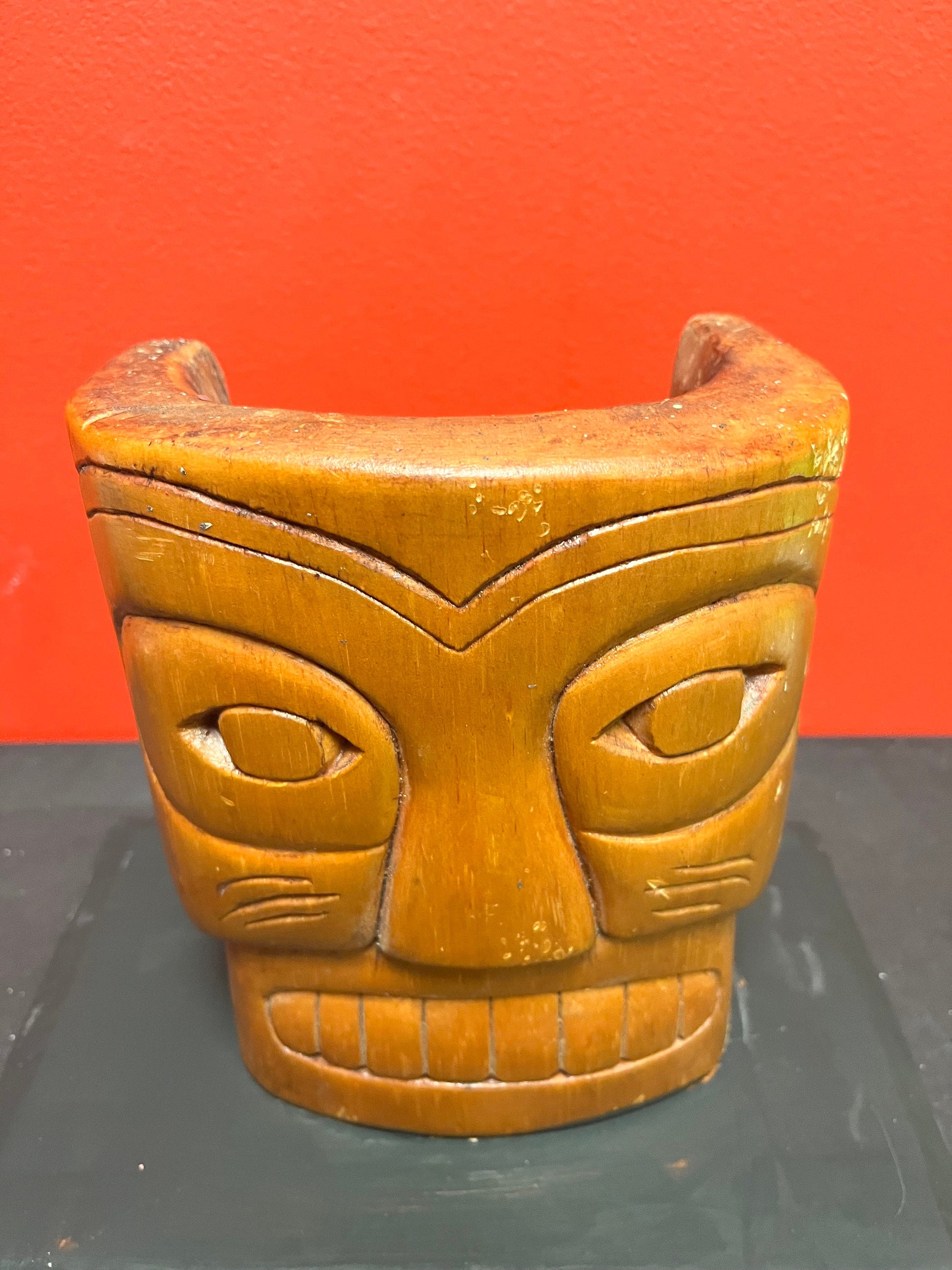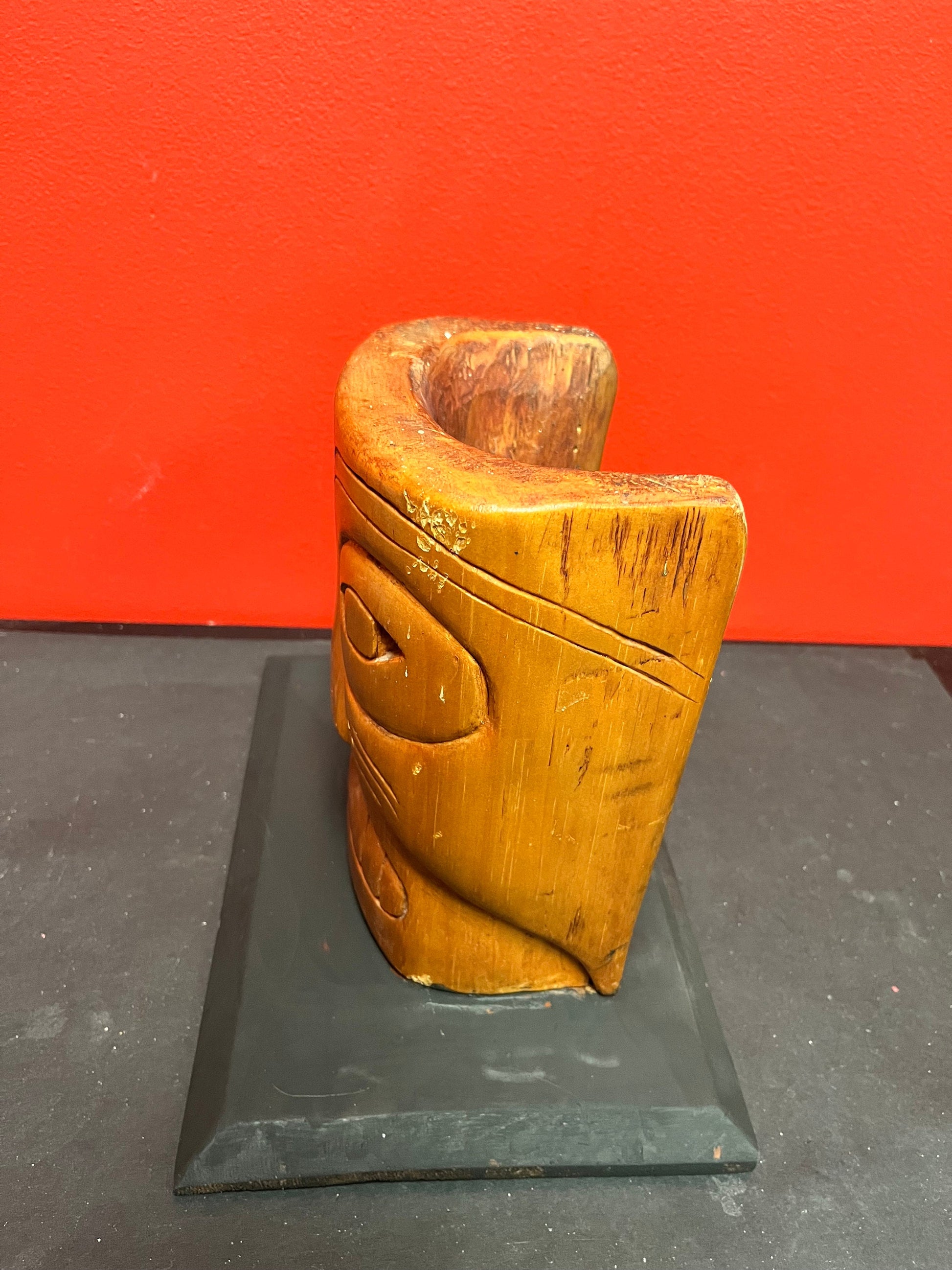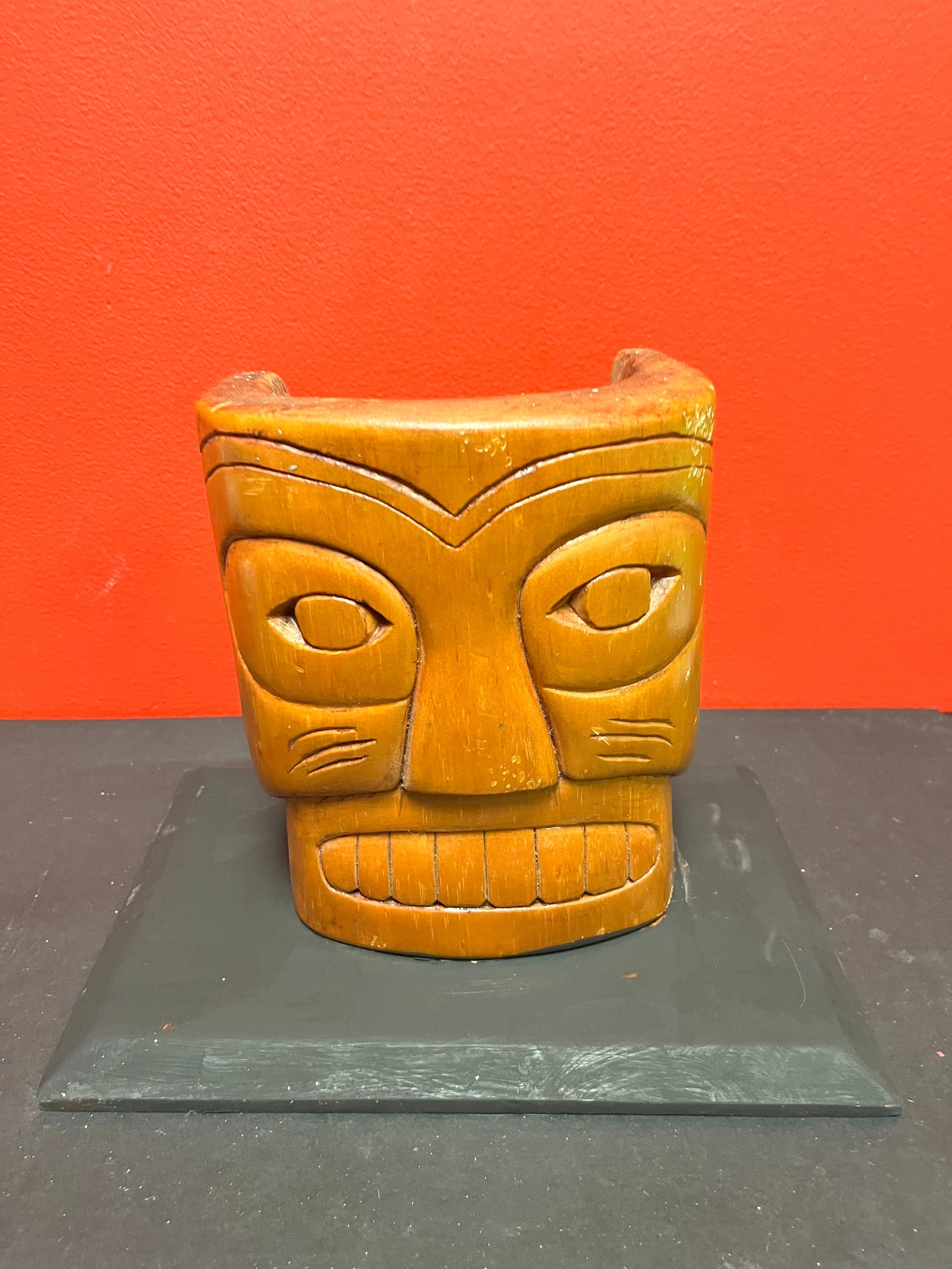 Beautiful old 9 inch high Simon John Signed mask on painted stand Indigenous first nations Northwest coast mask
