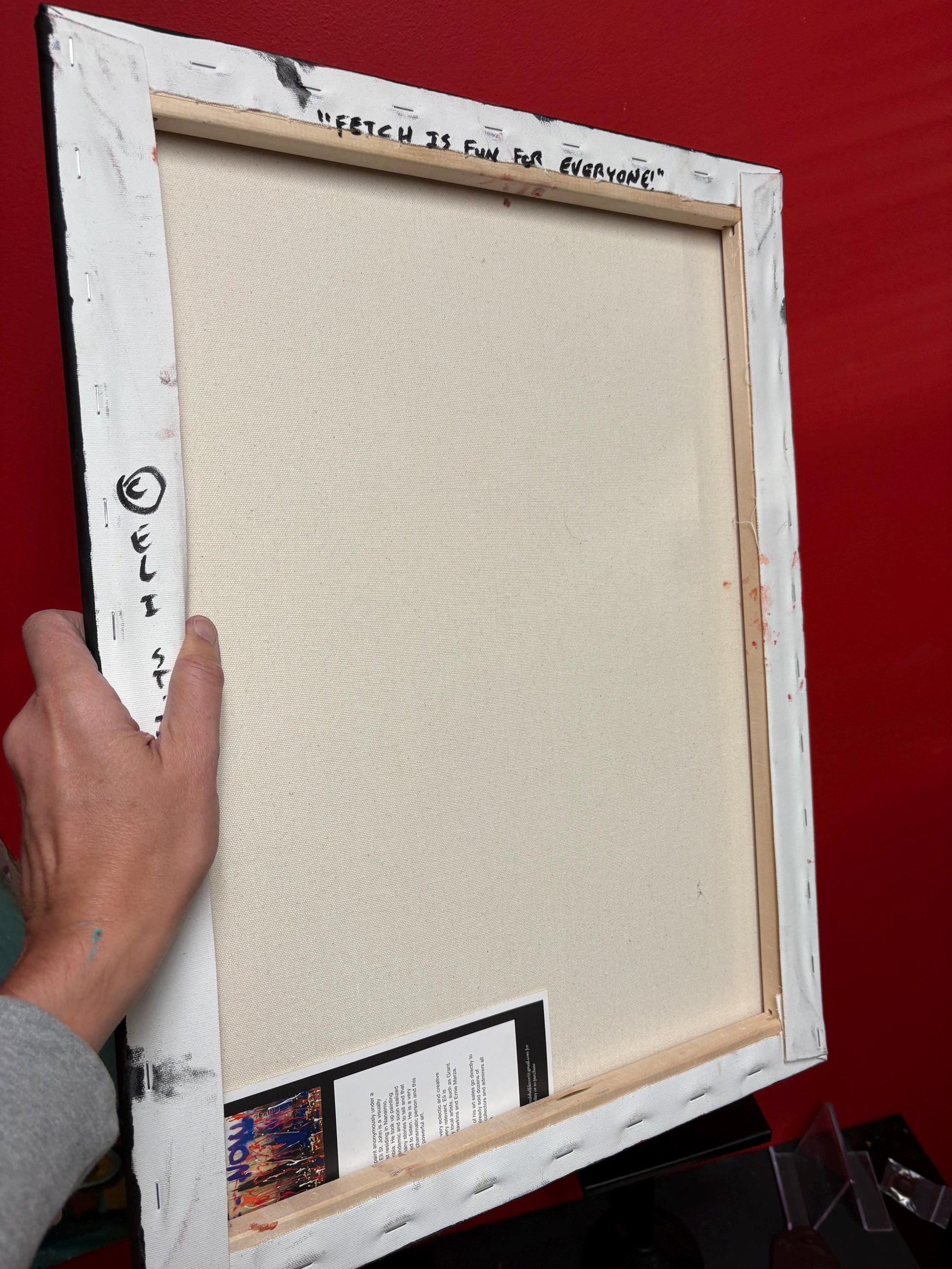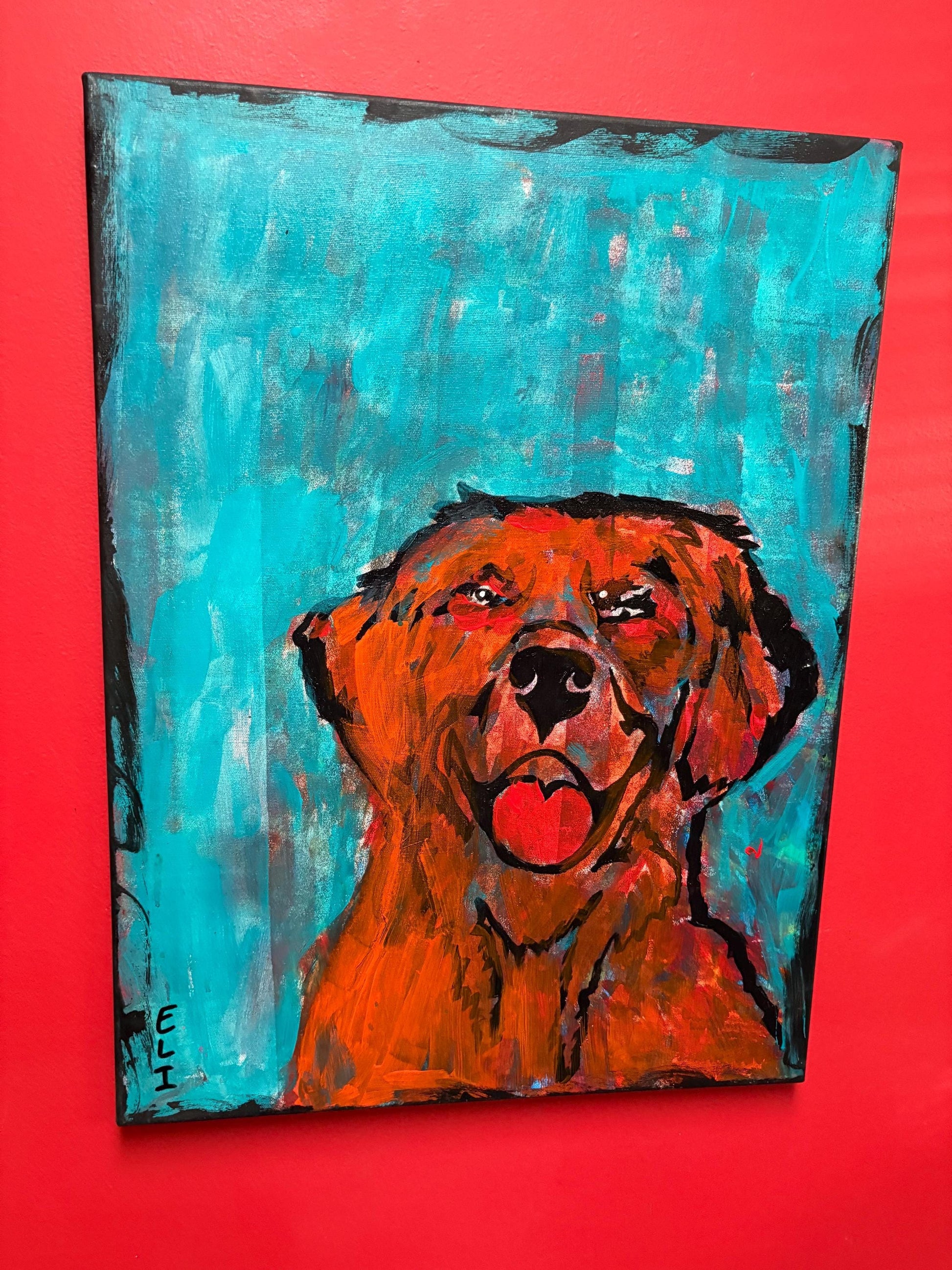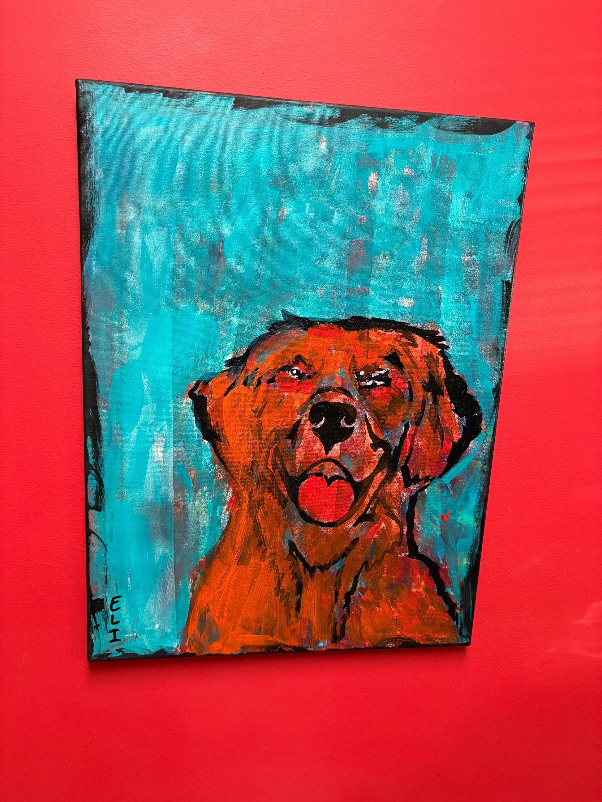 Beautiful original mixed media acrylic painting by visually impaired Canadian artist Eli St. John doggy - 24 x 18 inches - wow
