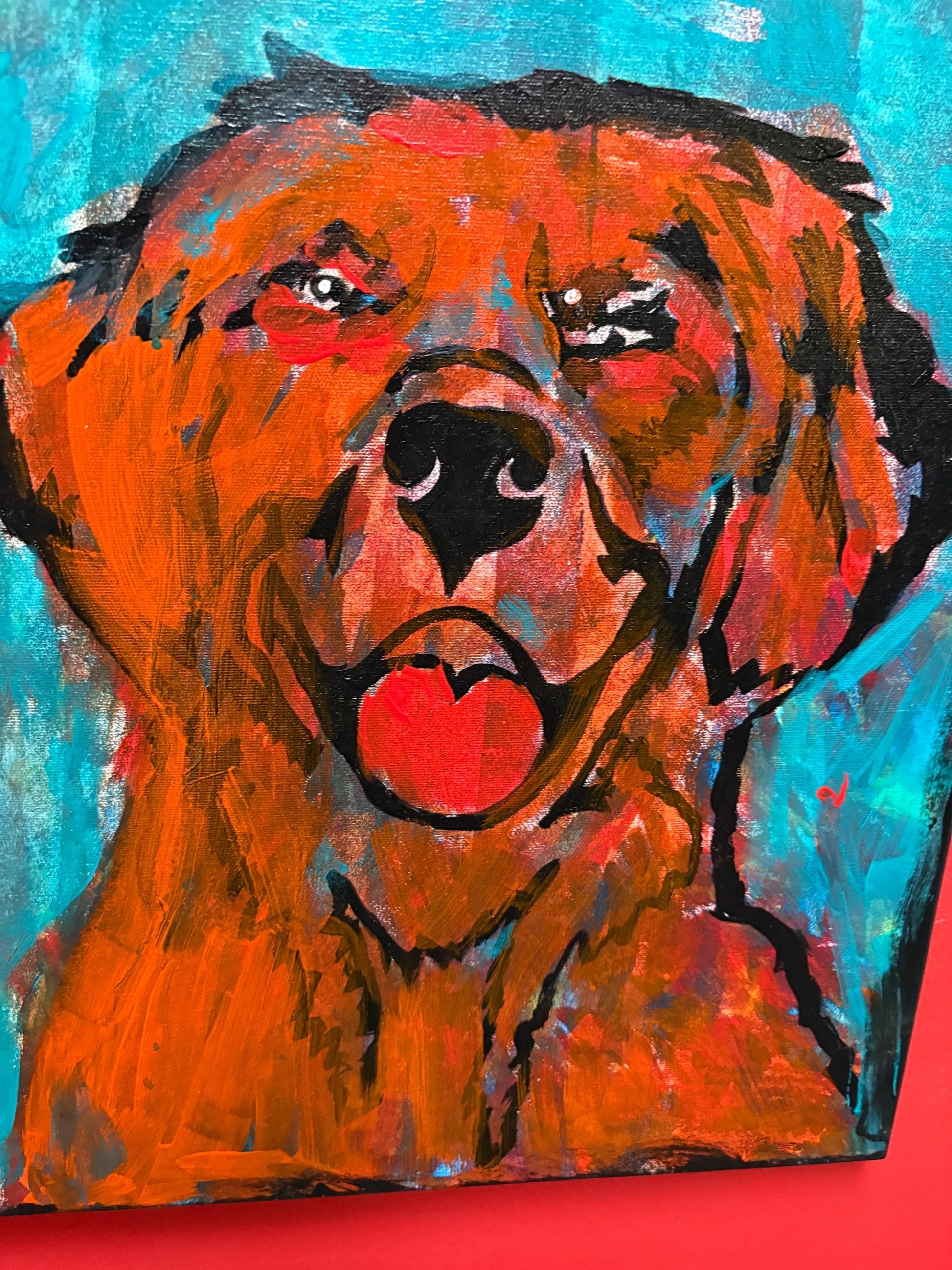 Beautiful original mixed media acrylic painting by visually impaired Canadian artist Eli St. John — doggy - 24 x 18 inches - wow