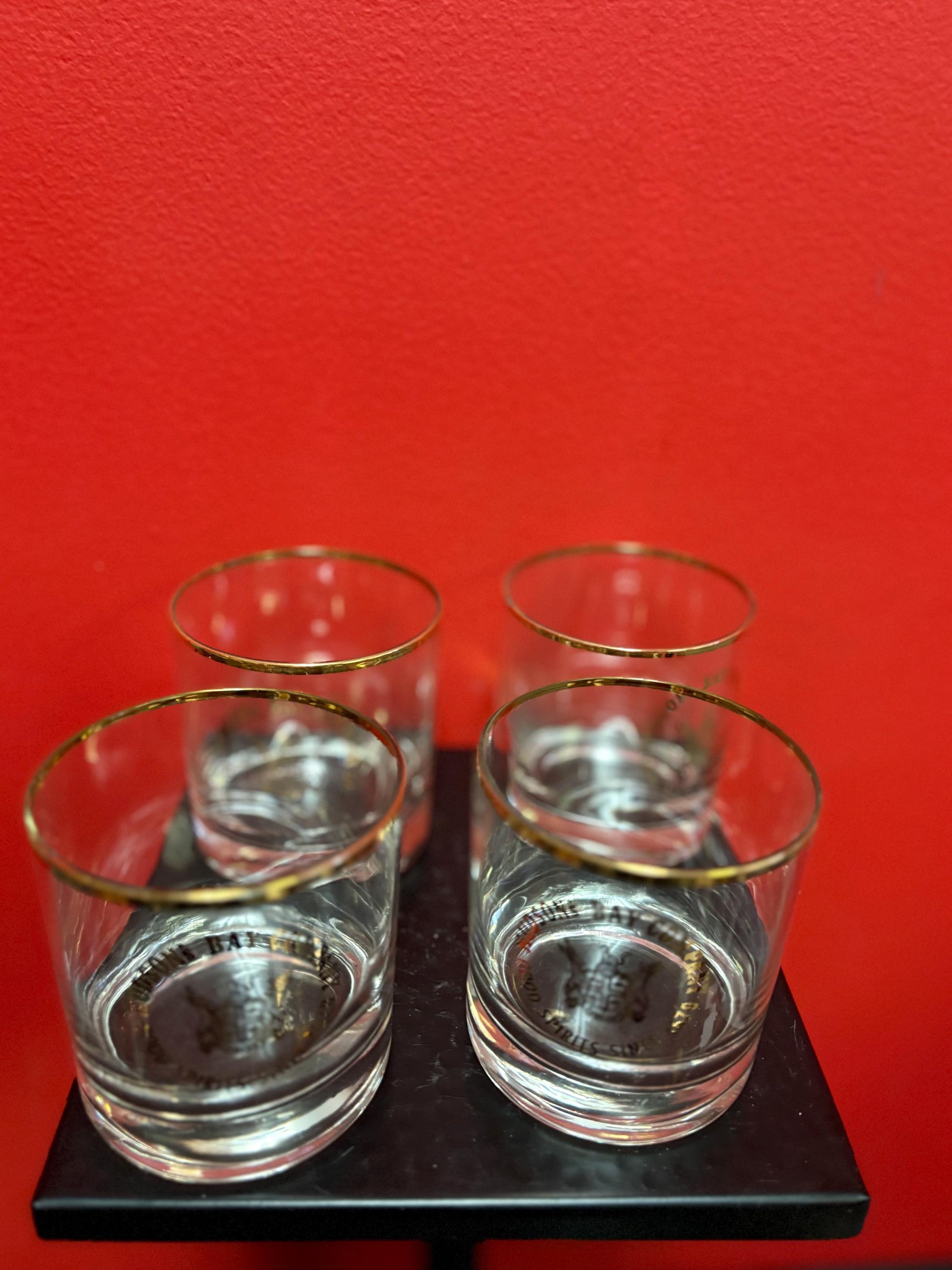 Beautiful set of four 3 1/2 inch high Hudson Bay Company scotch whiskey glasses HBC Canadian history good condition