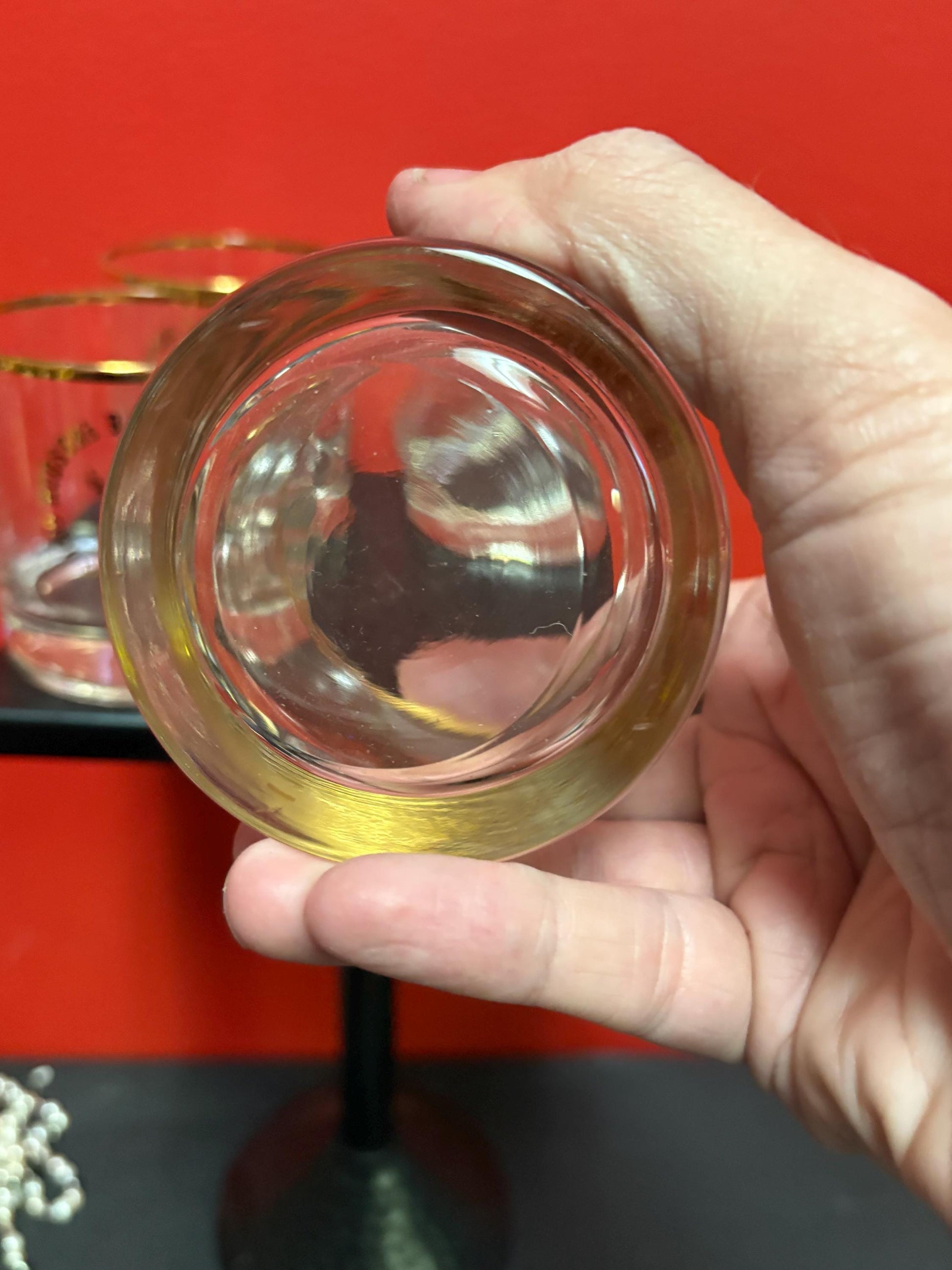 Beautiful set four 3 1/2 inch high Hudson Bay Company scotch whiskey glasses HBC Canadian history good condition