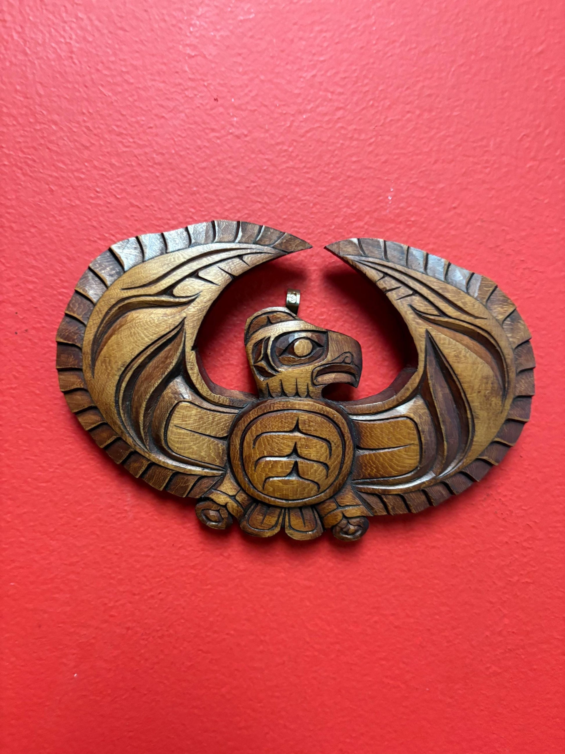 Beautiful signed 7 x 5 inch high Indigenous First Nations cedar eagle plaque — great detail — highly detailed and ready to hang