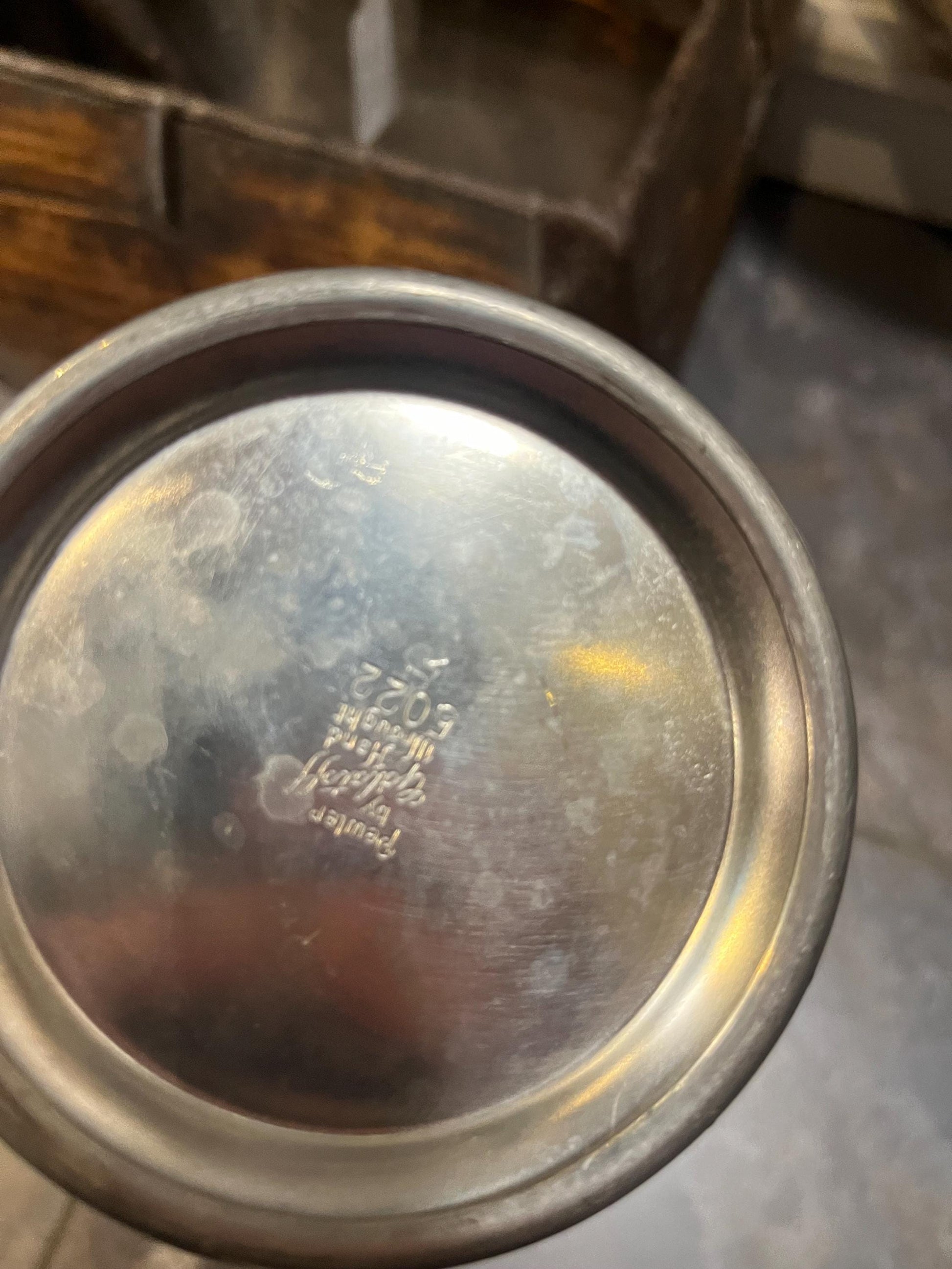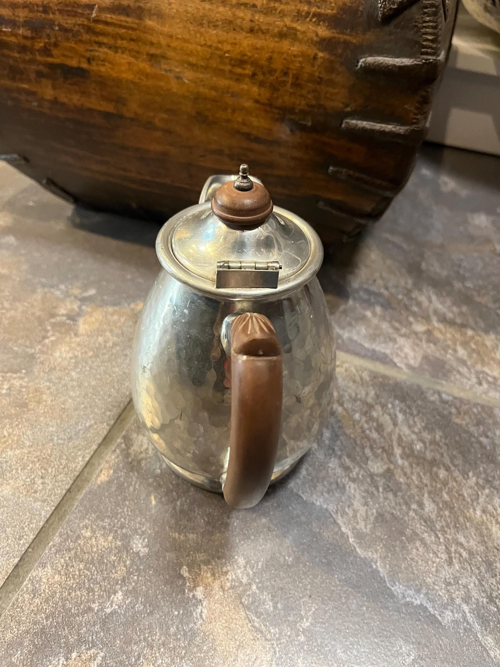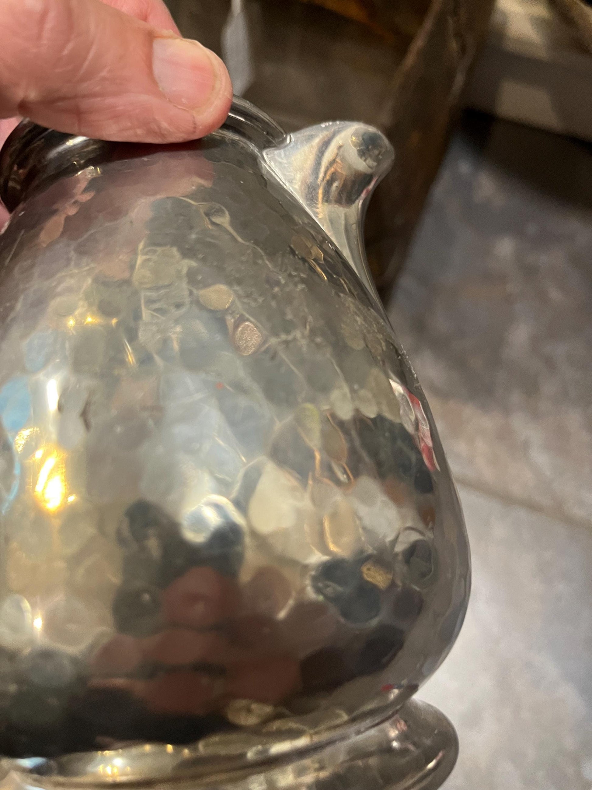 Beautiful signed English hammer pewter hot water jug good value - 8 inches tall