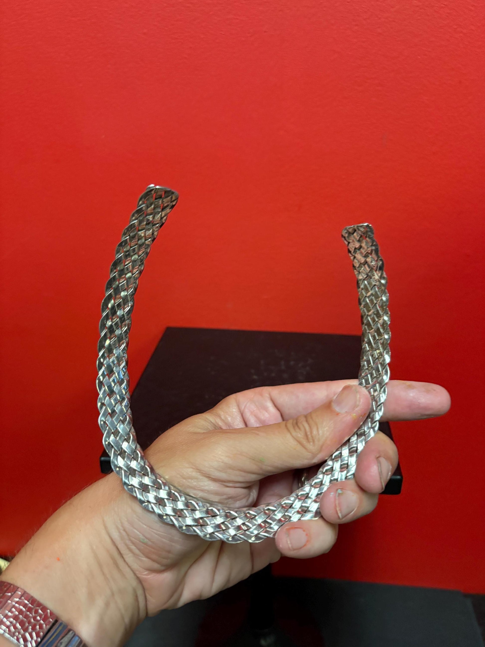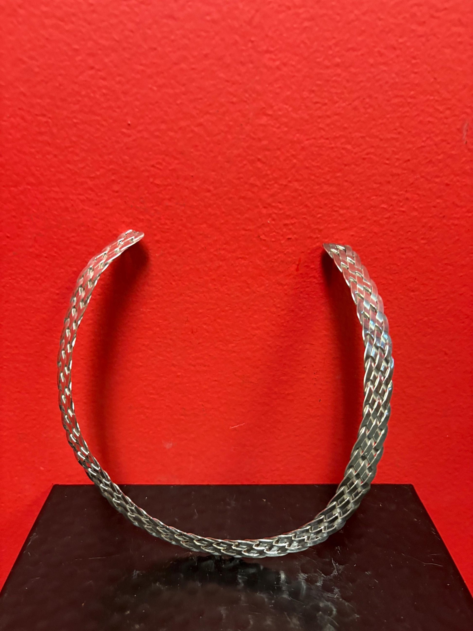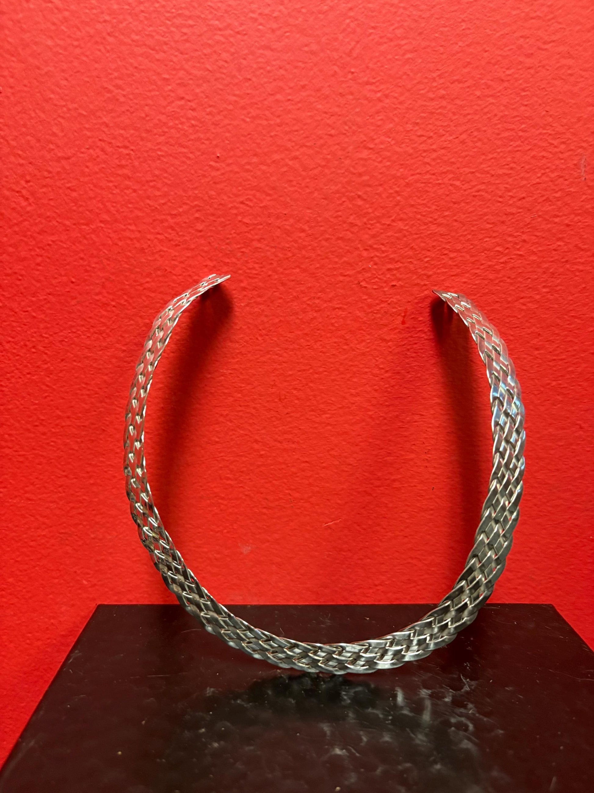 Beautiful silver plated choker style necklace unusual and cool and approximately 15 inches around of silver