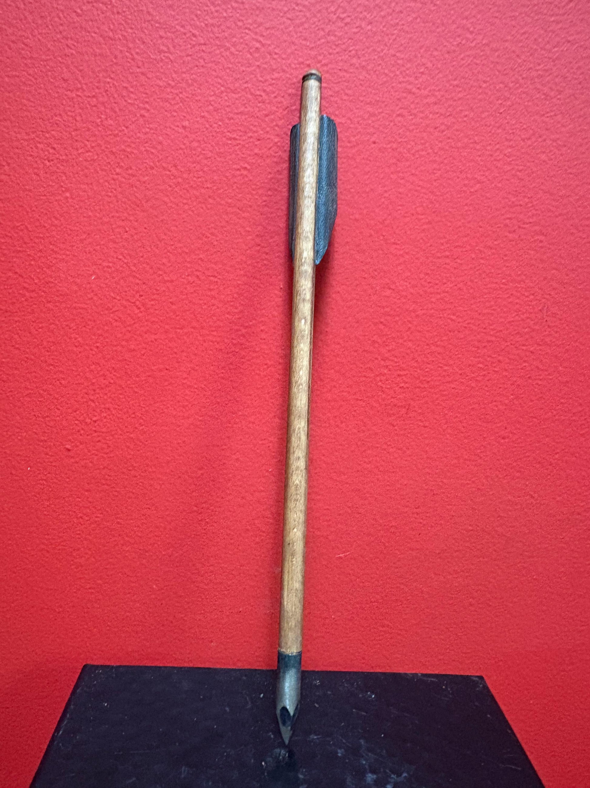Beautiful small model antique indigenous first nations wood leather and metal spear — unique and fabulous