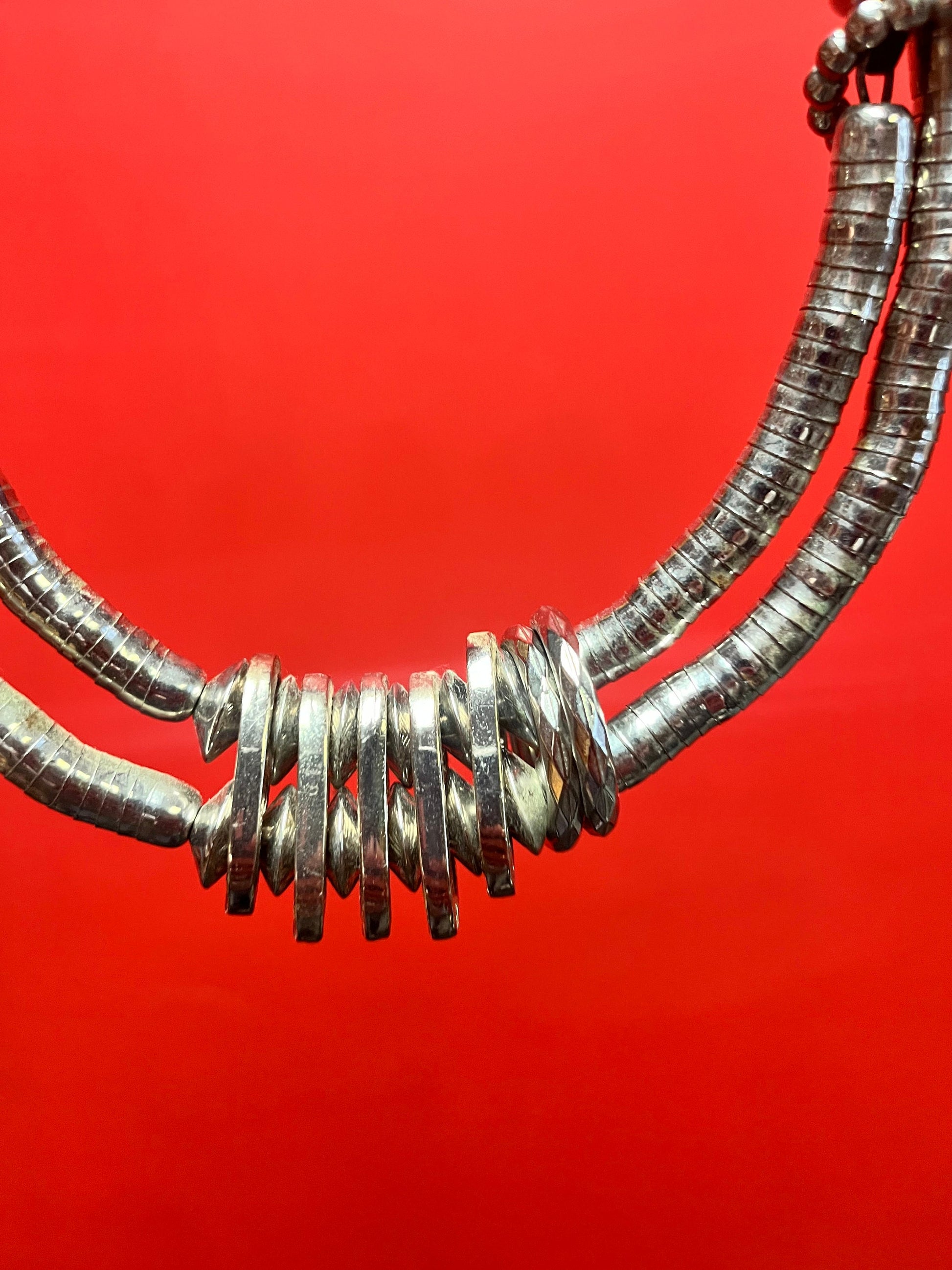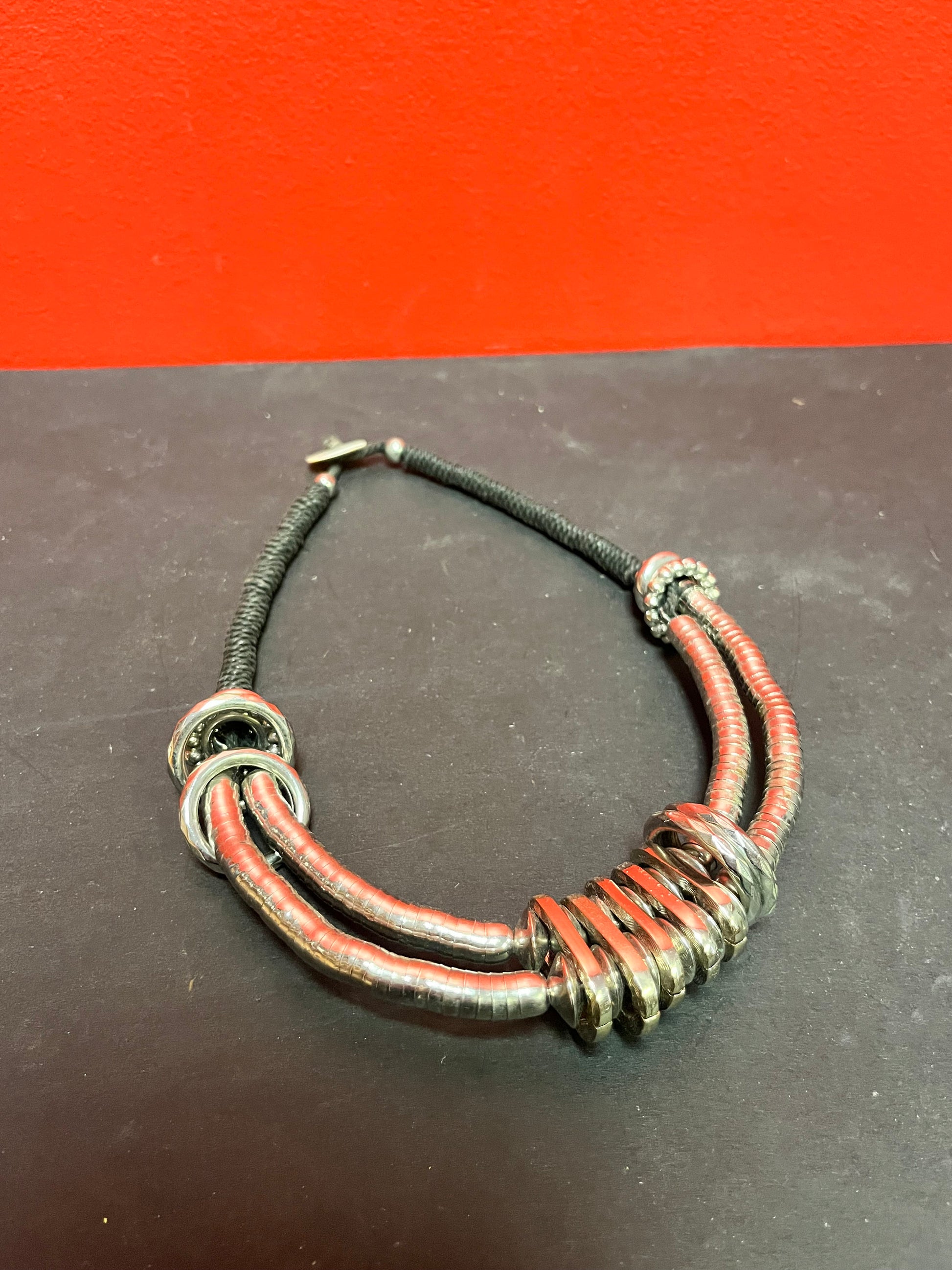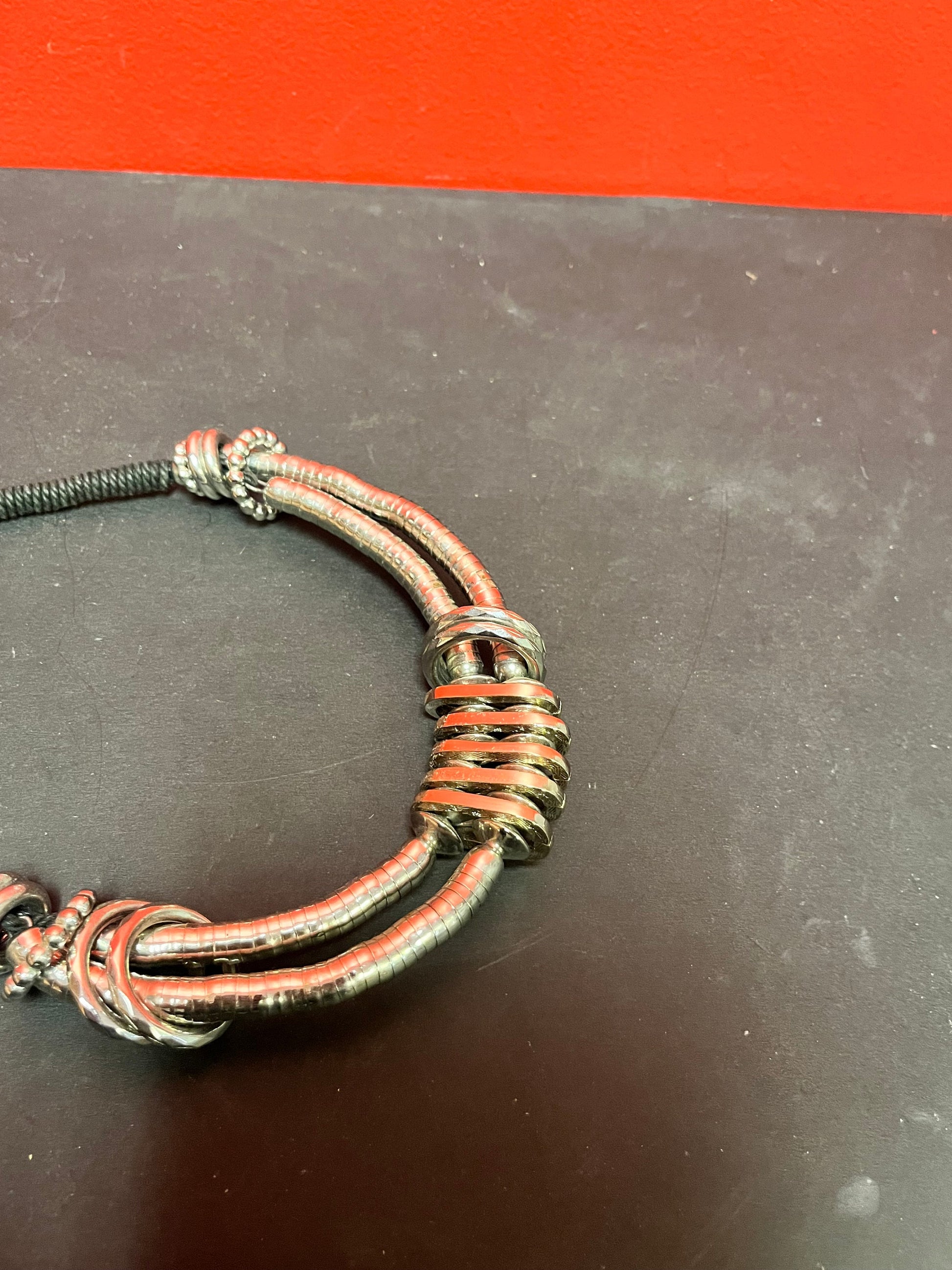Beautiful untested silver necklace with rope and abalone clasp Unusual choker style great value