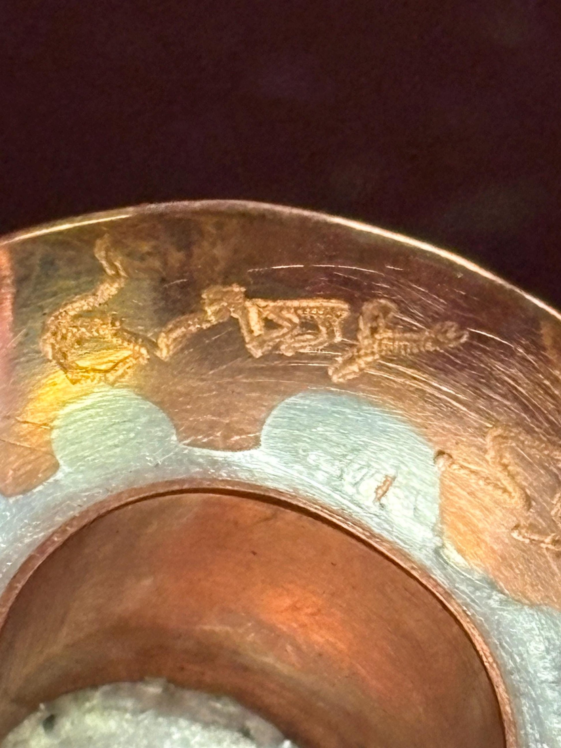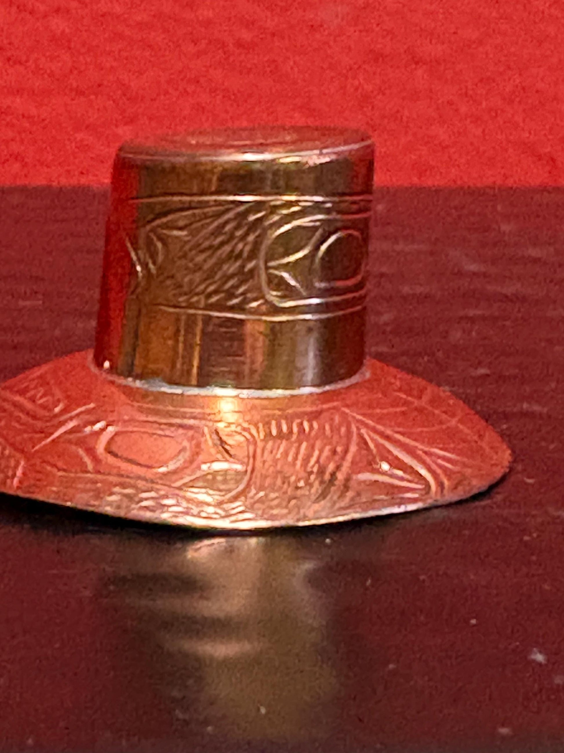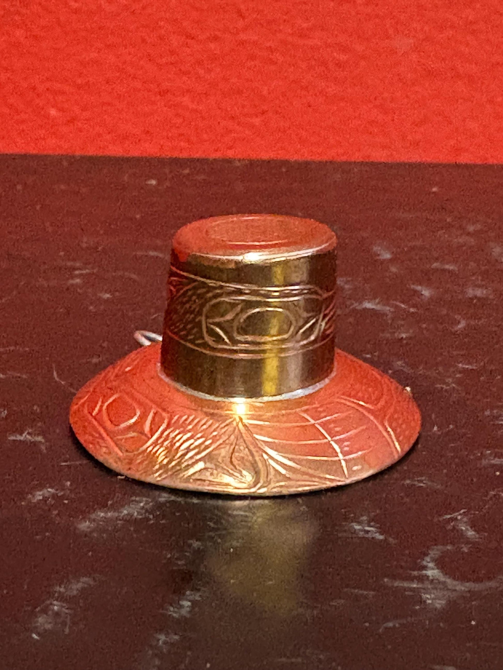 Beautiful Unusual indigenous first nations, pacific West Coast signed copper pendant in shape of a hat 1.5 inch wide by 1 inch high - wow
