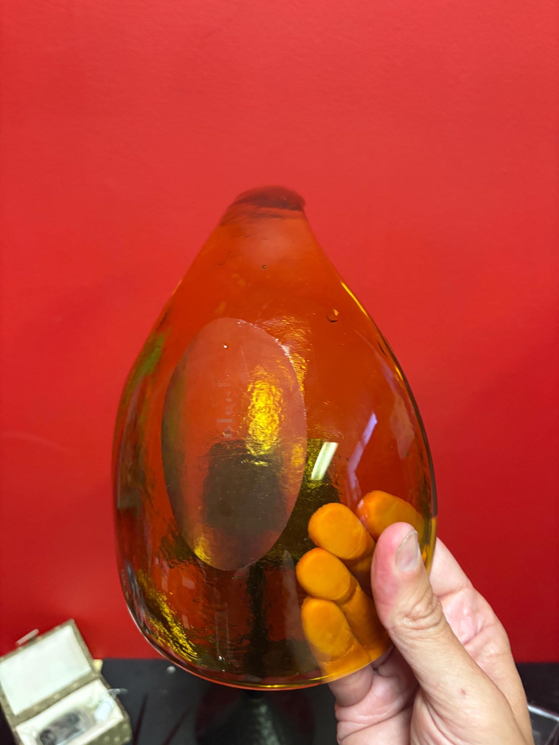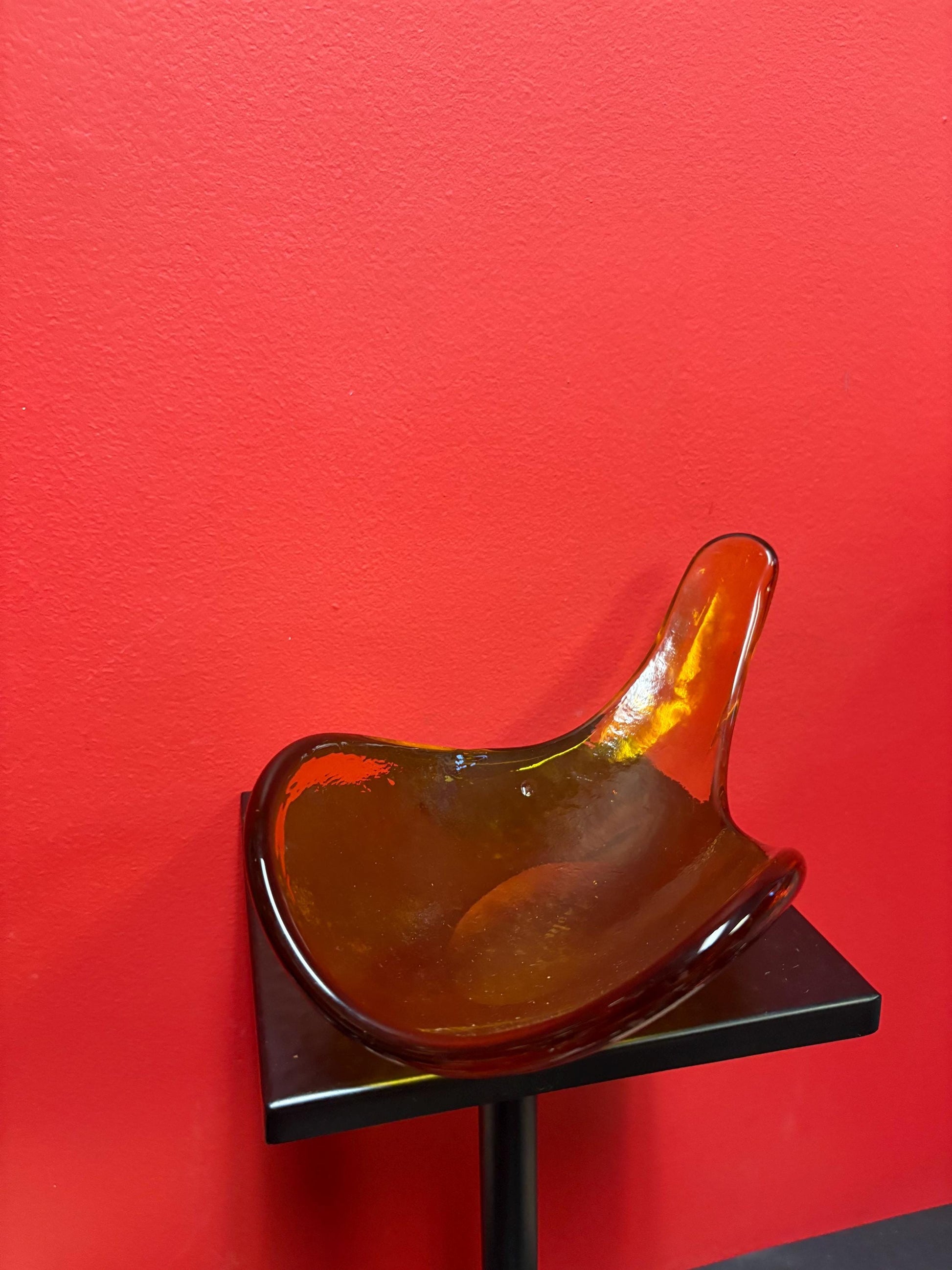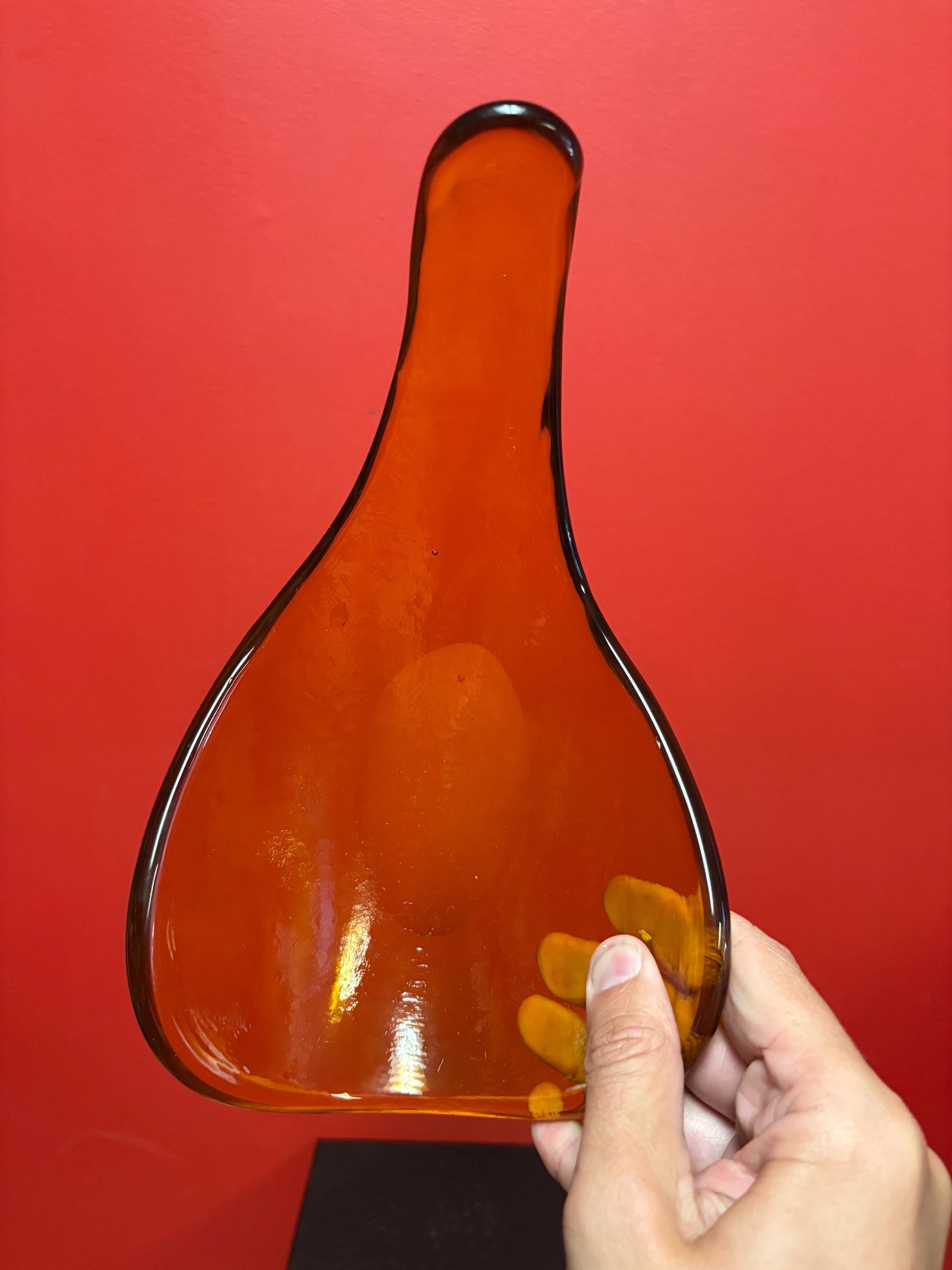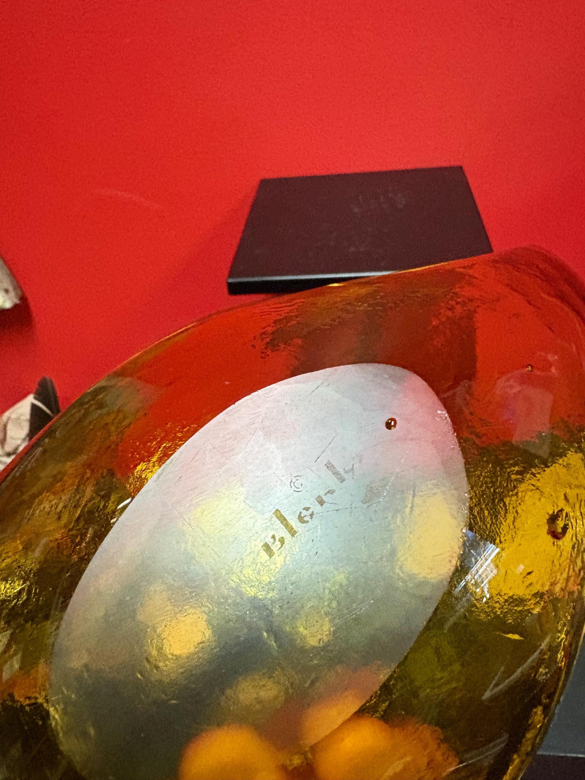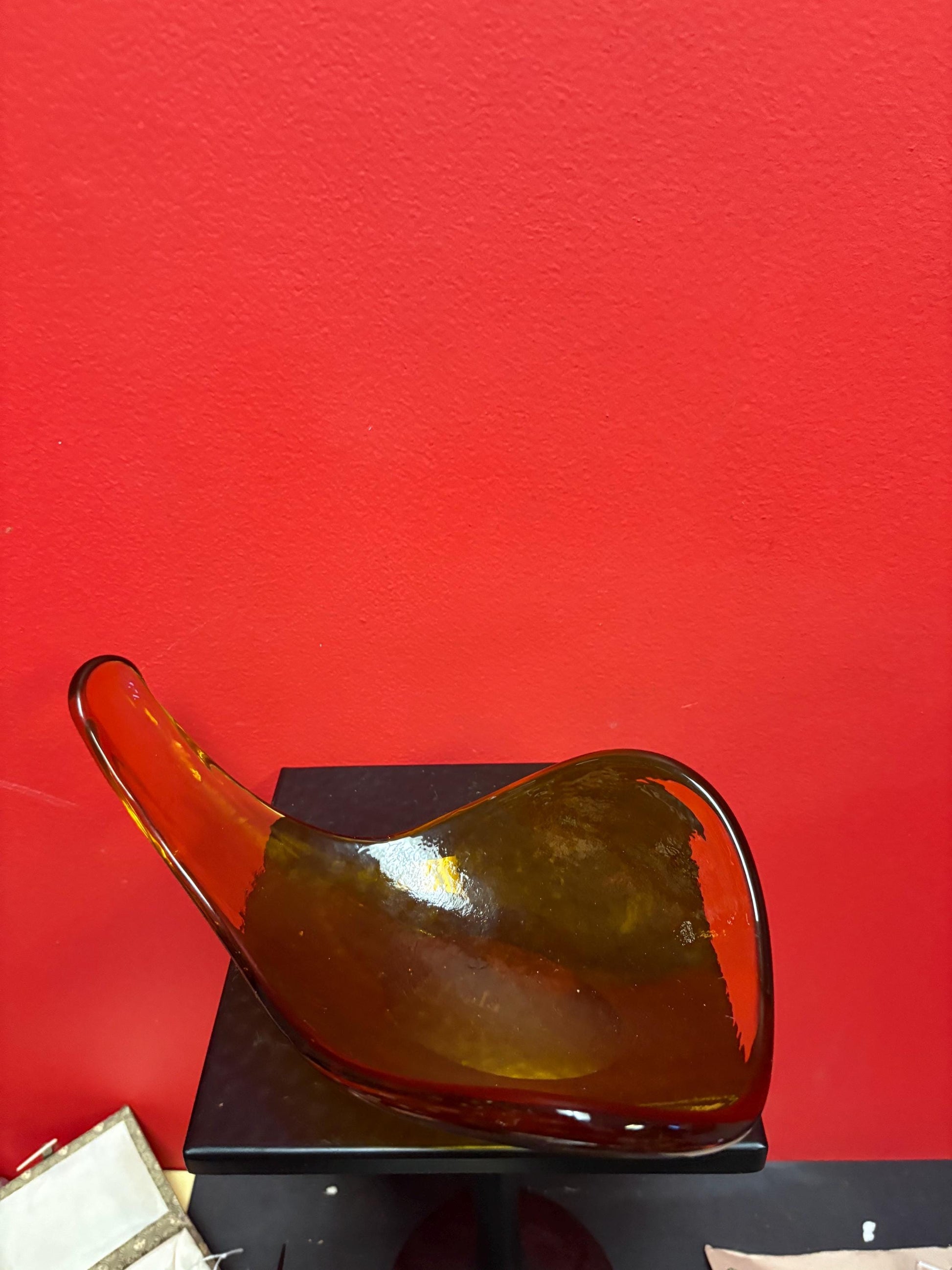 Beautiful vintage 11 inch long blenko glass dish amber colours mint condition signed - wow
