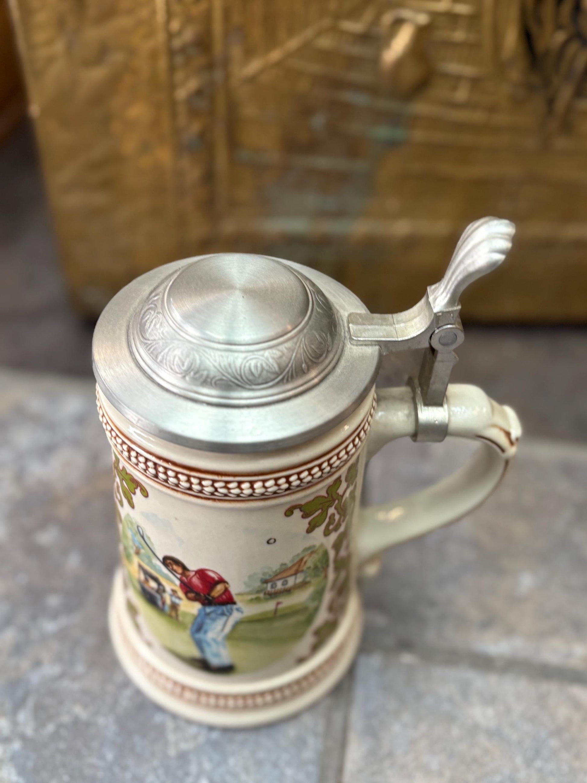 Beautiful vintage European 8 inch tall golfing stein great condition ready to use or gift