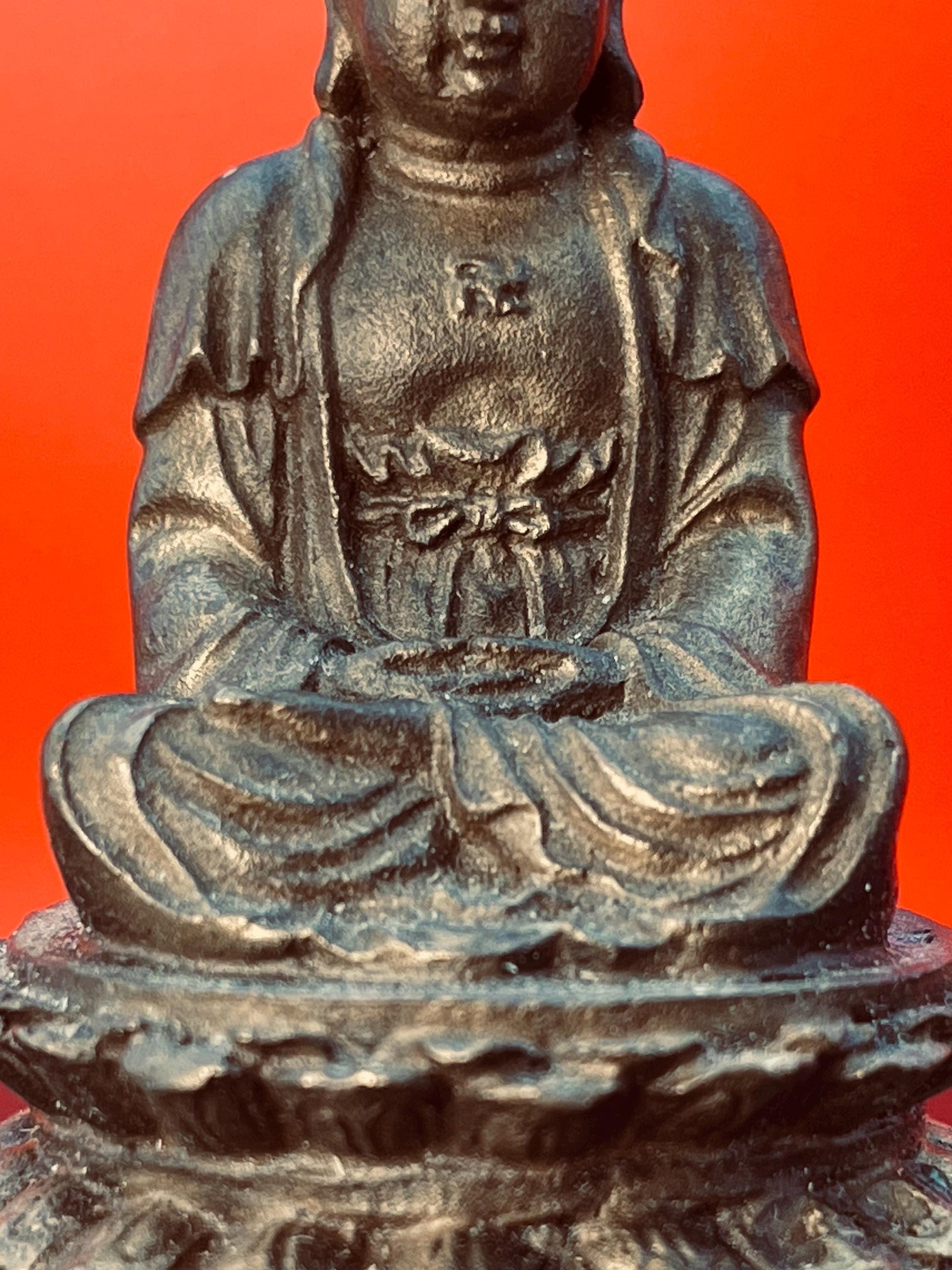 This is a beautifully crafted bronze Buddha statue, standing approximately 2.5 inches tall and weighing 137 grams.