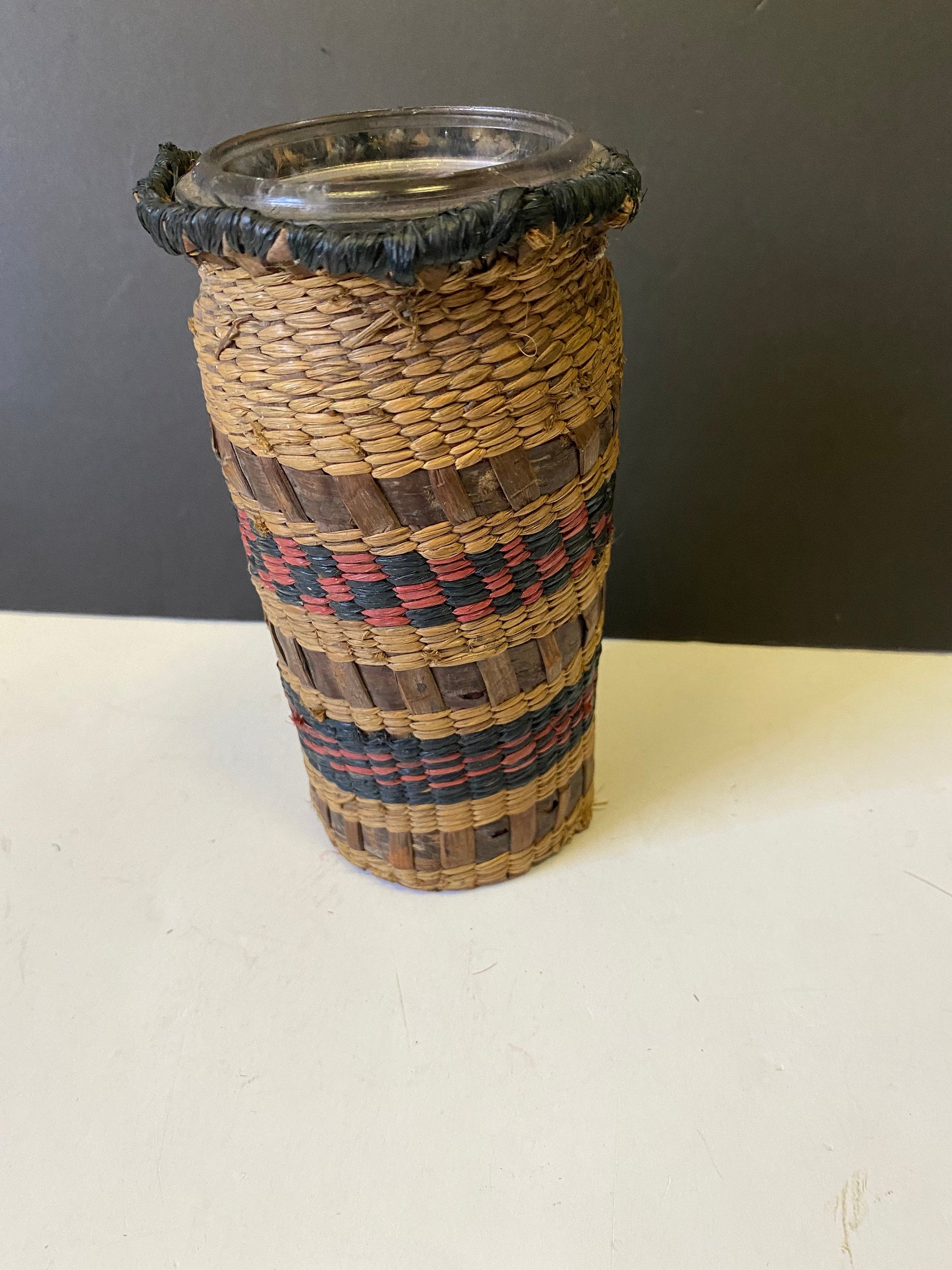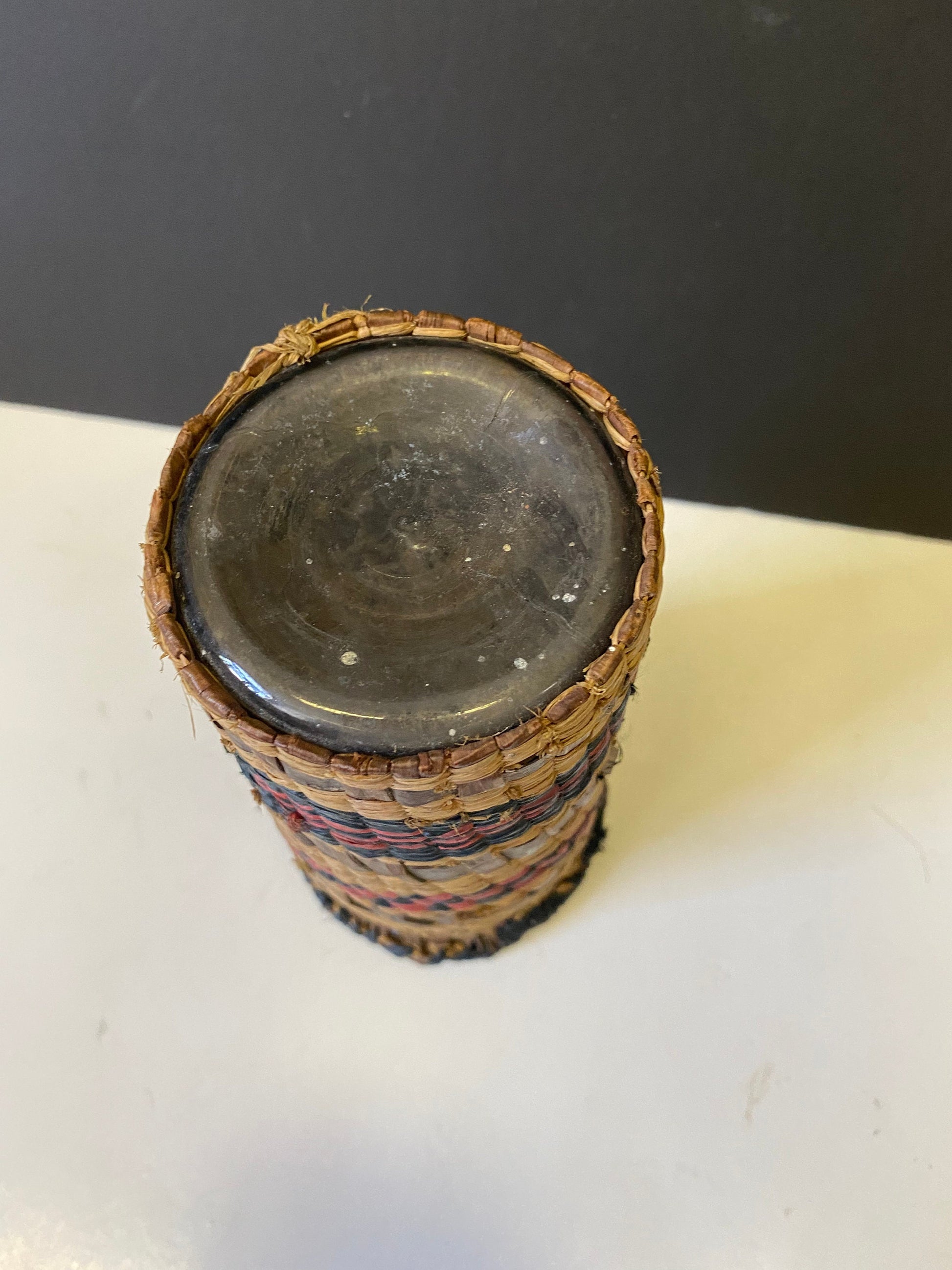 best of the best 6 by 3 inch Indigenous cedar bark wrapped glass vase First Nations art wow Museum quality wow