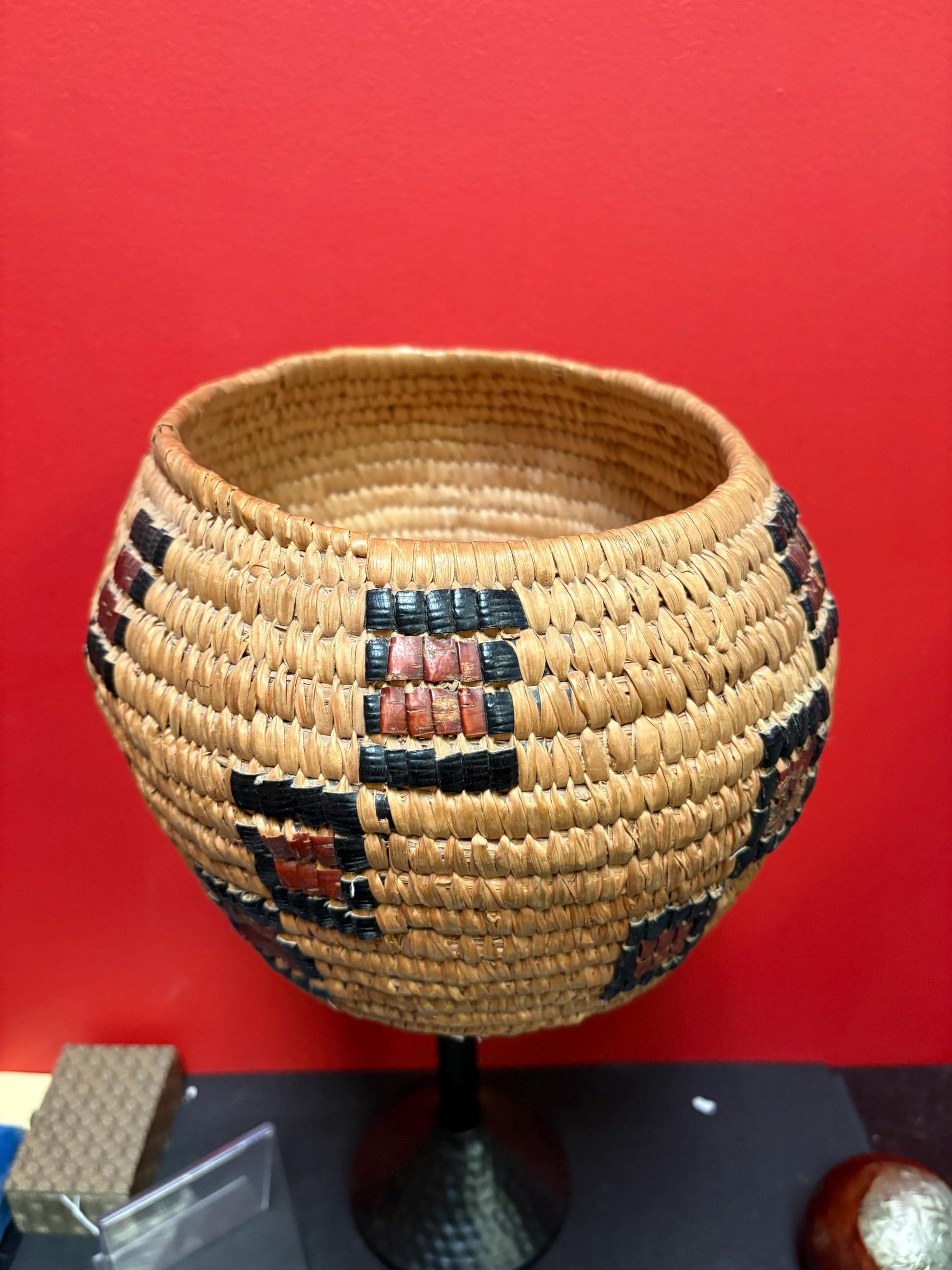 Big Canadian indigenous first nations Thompson River woven antique basket 12 x 7 high wow great value